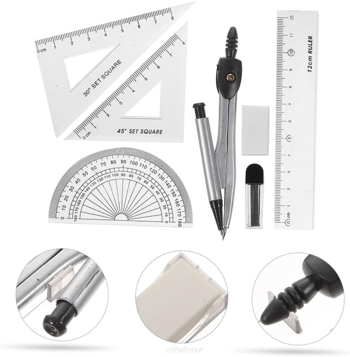 Set completo di disegno e misurazione: questo set include una bussola, un goniometro e vari righelli, fornendo tutti gli strumenti essenziali per disegni e misurazioni accurati, kit di disegno, righello di matematica geometrica Gomma incorporata: con una gomma incorporata, questo set semplifica la correzione di eventuali errori, garantendo che i tuoi disegni siano sempre puliti e precisi, strumenti di disegno, compasso geometrico Ampia di usi: adatto per una varietà di, comprese attività d'ufficio, progetti scolastici e uso domestico, questo set soddisfa tutte le tue esigenze di disegno e misurazione, goniometro per la lavorazione del legno, matematica della bussola Ampia applicazione: adatto a una varietà di ambienti, tra cui scuole, uffici e progetti domestici, questo set soddisfa tutte le tue esigenze di disegno matematico e architettonico, geometria della bussola, righelli Utilizzo conveniente: garantisce un'esperienza di disegno ed efficiente, eliminando la necessità di una bussola matematica costante per la geometria, bussola per la geometria