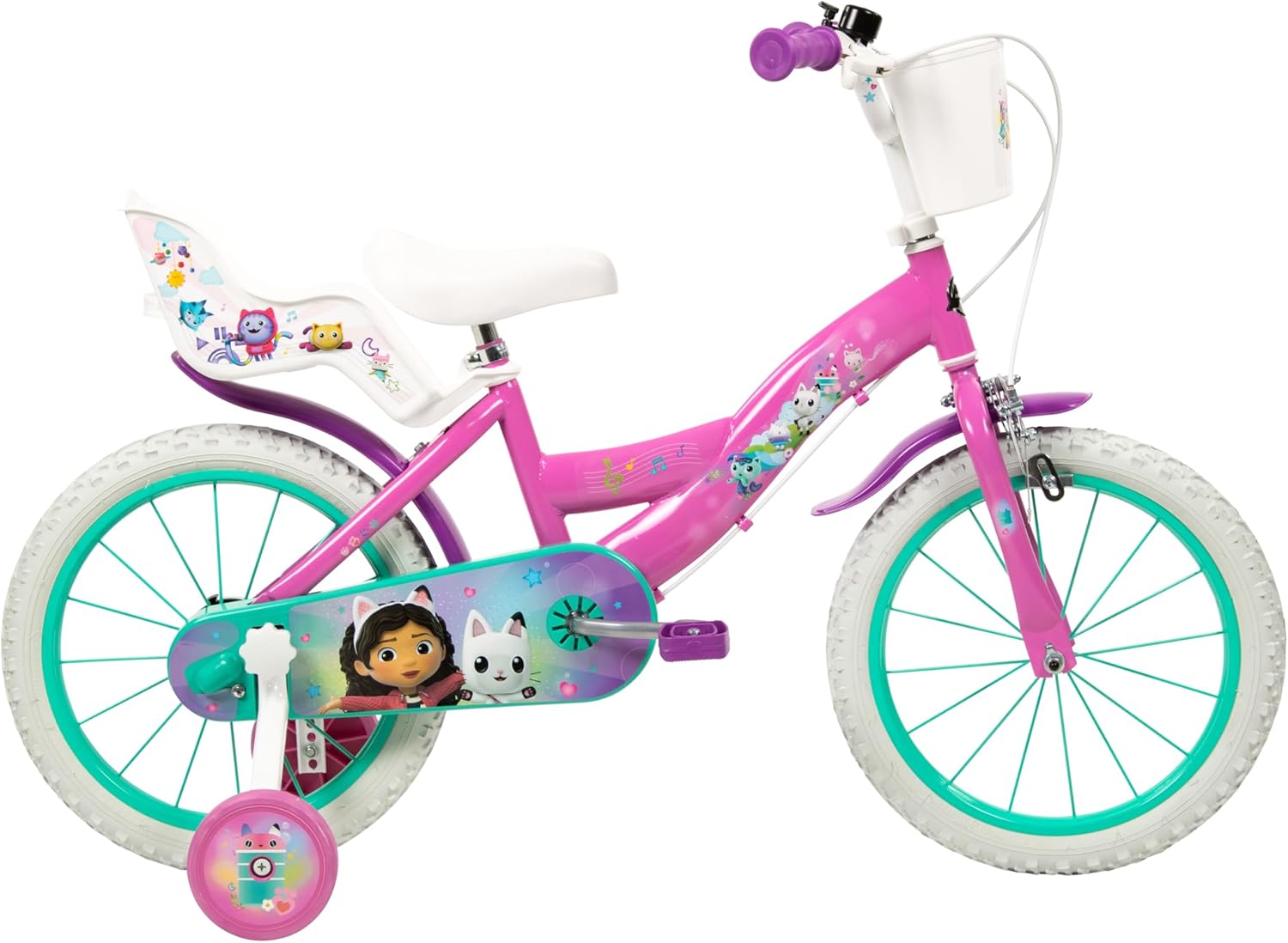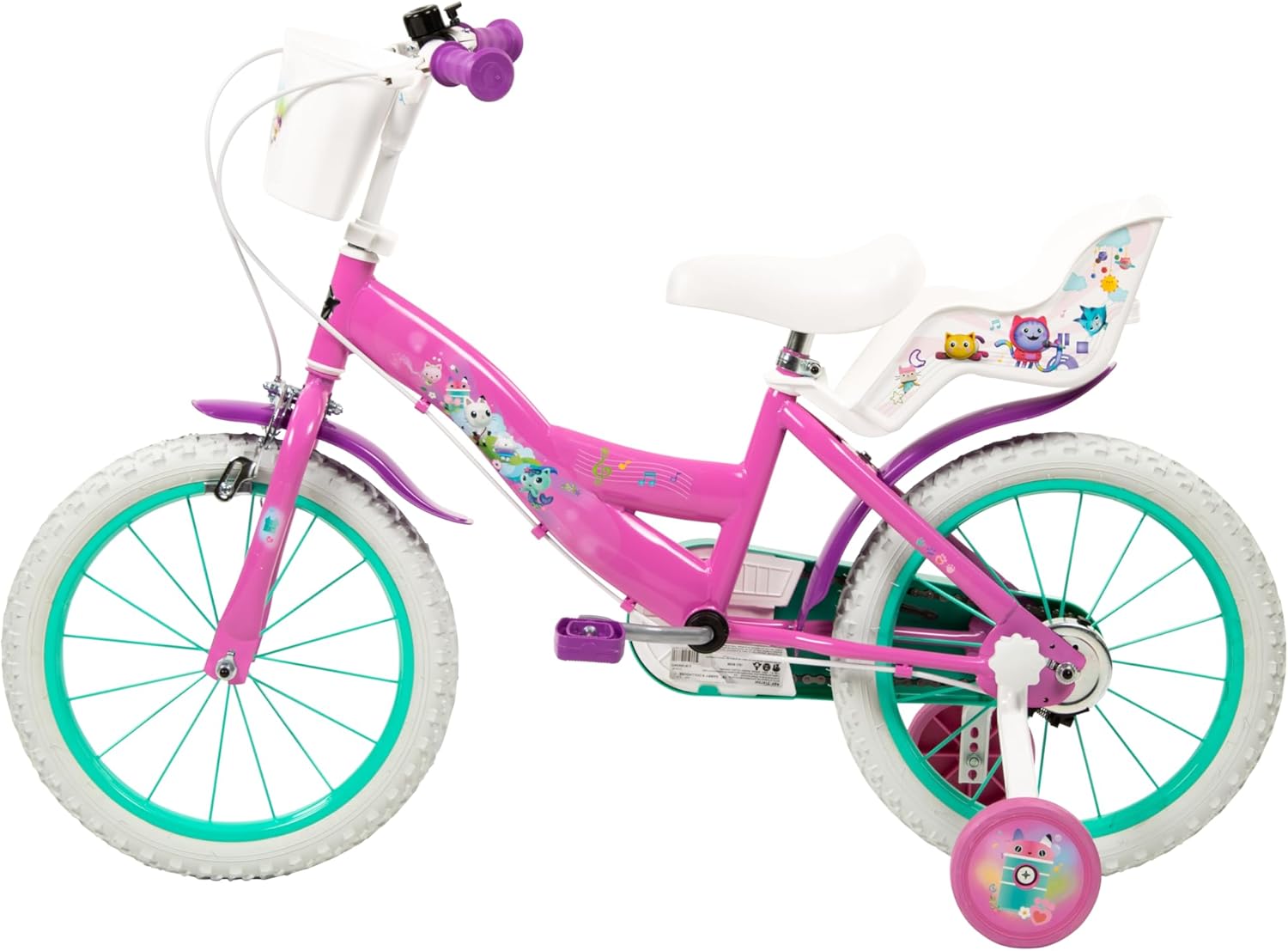 Bicicletta da 16” di Gabby per bambini: questa bicicletta è perfetta per i ciclisti più giovani che amano Gabby! Il bel design e le caratteristiche divertenti la rendono un'ottima scelta per il tuo bambino. Accessori: il cestino da manubrio con design coordinato permette alla tua giovane motociclista di portare con sé i suoi giocattoli preferiti, mentre le sue amate bambole possono stare nel marsupio sul retro! Sicurezza: questa bicicletta è dotata di ottime caratteristiche di sicurezza che rassicurano i genitori: il freno a mano anteriore permette di mantenere il controllo, mentre i parafanghi anteriore e posteriore e il copricatena completamente chiuso proteggono mani e piedi. Stabilità: gli stabilizzatori rimovibili danno sicurezza al tuo giovane ciclista mentre impara ad andare in bicicletta Dimensioni: le biciclette da 16” sono adatte a bambini di età compresa tra i 5 e i 7 anni con un'altezza compresa tra 107 e 122 cm.