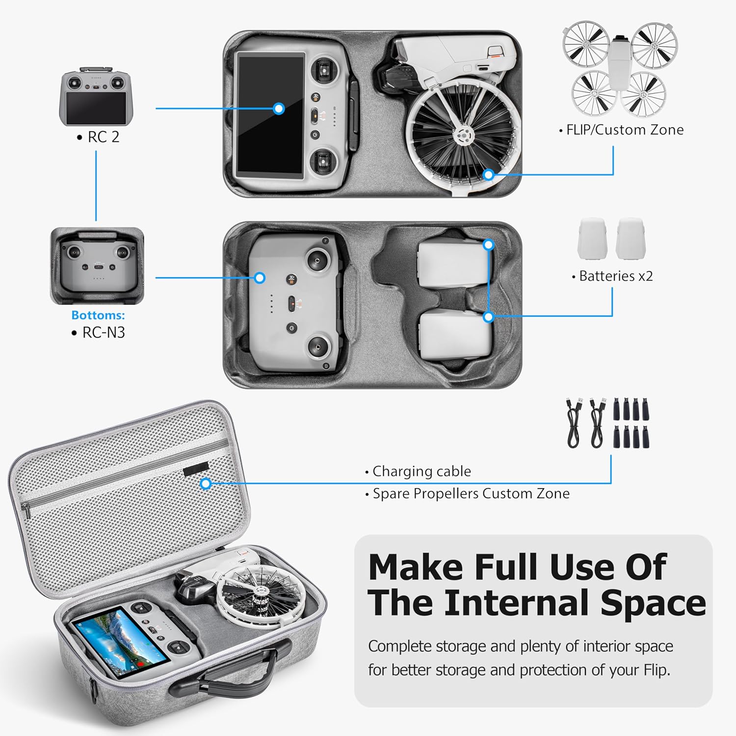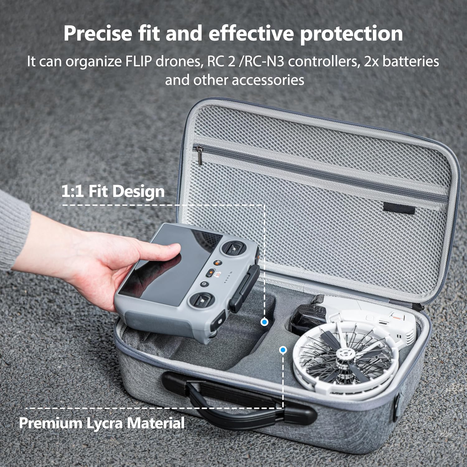 Design personalizzato:Questa custodia è stata realizzata esclusivamente per DJI Flip Drone, le sue batterie di volo intelligenti e gli accessori associati. Caratterizzata da una struttura modellata in un unico pezzo, offre una vestibilità precisa che garantisce una protezione completa per DJI Flip Drone e tutti i suoi accessori durante il trasporto e lo stoccaggio Protezione completa:Questa custodia morbida e compatta offre una robusta protezione antipolvere, antiusura e antigraffio specifica per DJI Flip. È la scelta perfetta per i viaggiatori, gli escursionisti, i campeggiatori o per chi semplicemente ripone il proprio Flip a casa, assicurando che il dispositivo rimanga sempre al sicuro Spazio ottimizzato: progettata per ospitare il Flip Drone e 2 batterie di volo intelligenti, questa custodia include anche una tasca interna con cerniera perfetta per riporre gli accessori più piccoli come i cavi Type-C, la testa di ricarica, i cacciaviti, le eliche e molto altro ancora Compatto e leggero:Dotato di un ingombro ridotto e di un peso minimo, questo astuccio portatile è dotato di una maniglia antiscivolo e di una tracolla regolabile per una maggiore comodità a mani libere. Progettata per un facile trasporto, si adatta perfettamente agli zaini o ai bagagli, permettendovi di portarla con voi ovunque andiate Lista di imballaggio: 1 x Flip custodia, 1 x tracolla (NOTA: solo la custodia, il drone e altri accessori non sono inclusi)