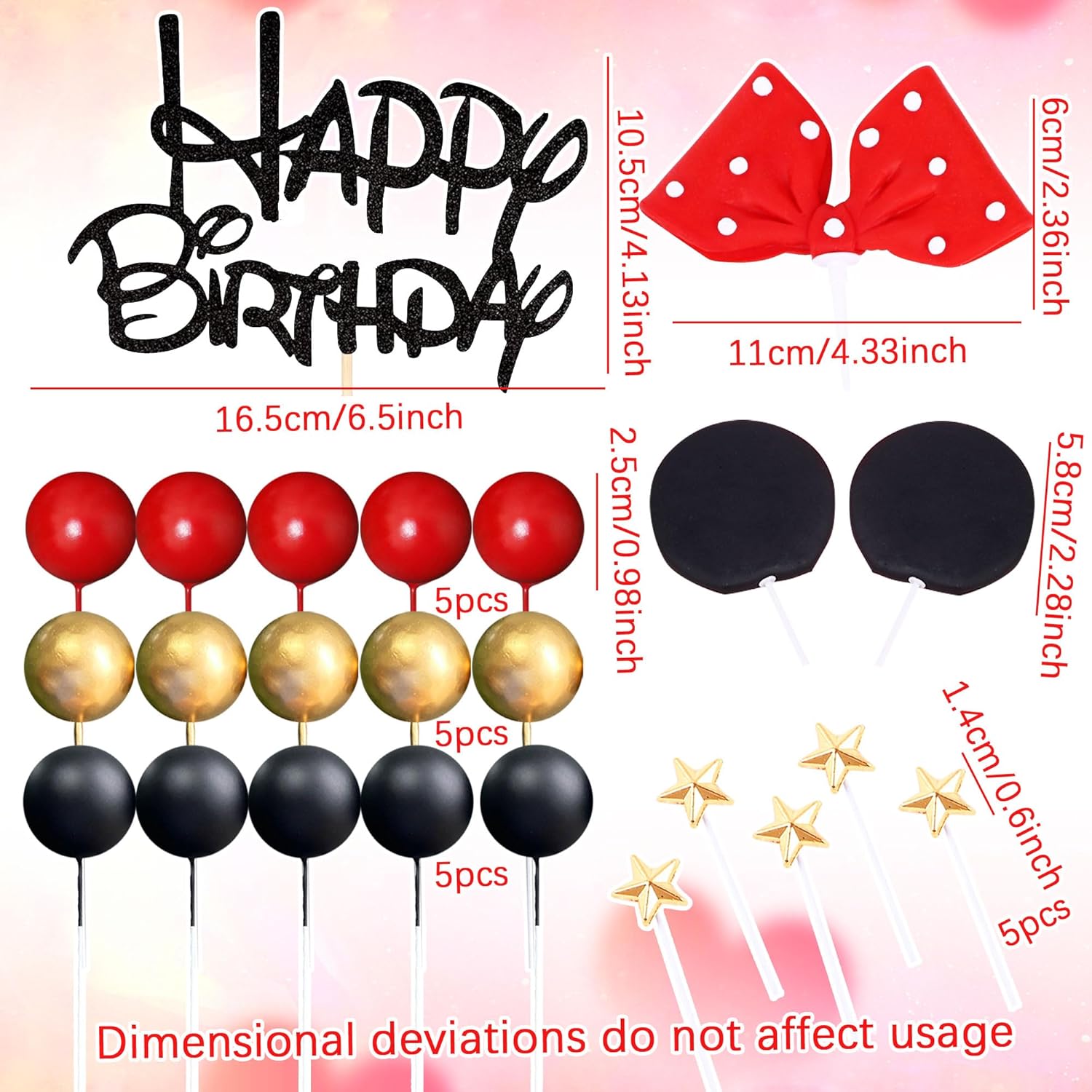 La confezione include: 1 topper per torta "Happy Birthday", 2 decorazioni per torta con orecchie di topo, 5 stelle, 15 palline (5 rosse, 5 dorate, 5 nere) Questi topper per torta Oh Twodles sono progettati come divertenti combinazioni innovative e giocose, dando creatività, aggiungendo divertimento alla tua festa Il nostro topper per torta a forma di topo aggiungerà gioia e creerà bei momenti alla tua famiglia e agli amici, i colori vivaci e i disegni adorabili cattureranno l'attenzione degli ospiti alla festa Facile da usare: crea la tua torta con queste decorazioni per torte con orecchie a fiocco in base alle tue preferenze, ti divertirai molto nel processo di decorazione della tua torta Le decorazioni per torte non sono commestibili e sono destinate solo alla decorazione, si prega di non metterle in forno e microonde