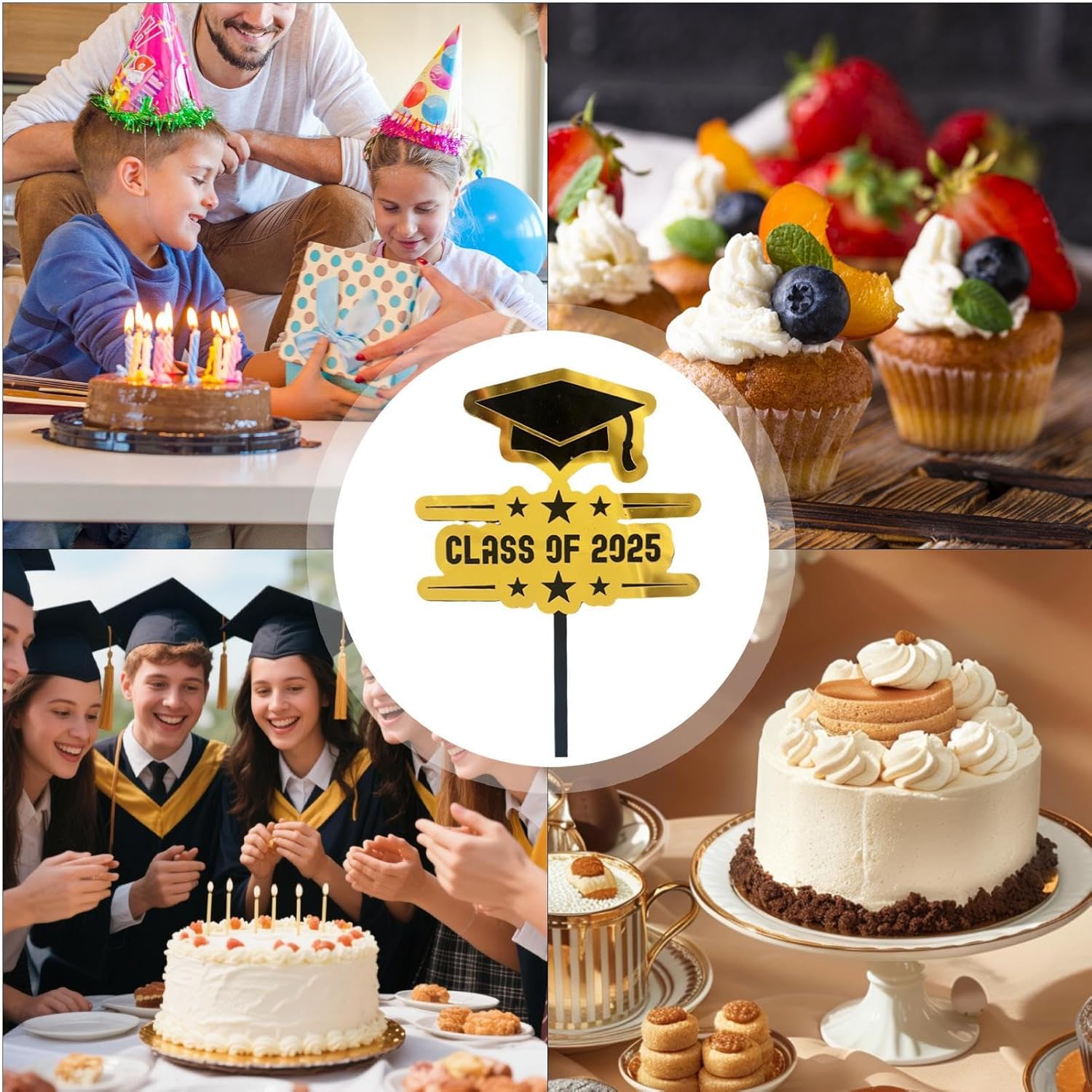 Soluzione efficiente in termini di tempo: semplifica la decorazione con toppers per cupcake leggeri e pronti all'uso che non richiedono una gestione complessa e fanno risparmiare tempo prezioso. Decorazioni accattivanti per le feste: elaborati motivi di laurea, colori vivaci e auguri stampati di "Buona Laurea" rendono questi toppers affascinanti e accattivanti. Arricchiscono perfettamente le occasioni speciali con eleganti decorazioni per la tavola. Motivi di laurea unici: aggiungi uno scintillio speciale alla tua festa di laurea 2025 con questi toppers per torta. Motivi unici e inserti acrilici di alta qualità garantiscono celebrazioni esclusive con un design ben congegnato. Usi multipli: aggiorna i tavoli da dessert con decorazioni per cupcake di laurea. Ideale per celebrazioni e decorazioni regalo speciali. Aggiunge un tocco memorabile a qualsiasi celebrazione con una facile applicazione. & inodore: le caratteristiche distintive sono l'elevata trasparenza e la superficie liscia. Questi toppers per cupcake di laurea sono durevoli, sicuri, riutilizzabili e rispettosi dell'ambiente. Evidenzia in modo efficace le presentazioni festive dei dolci