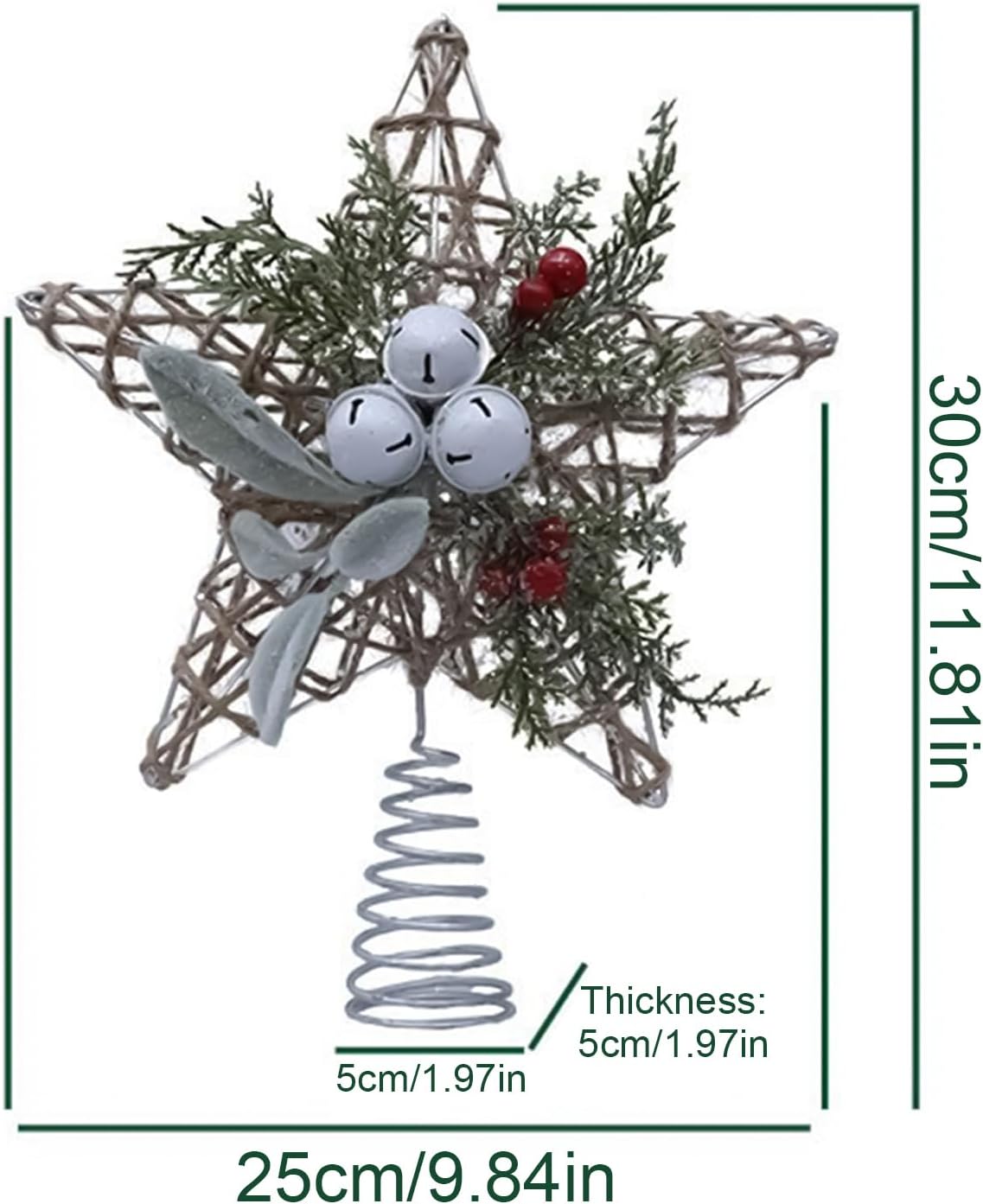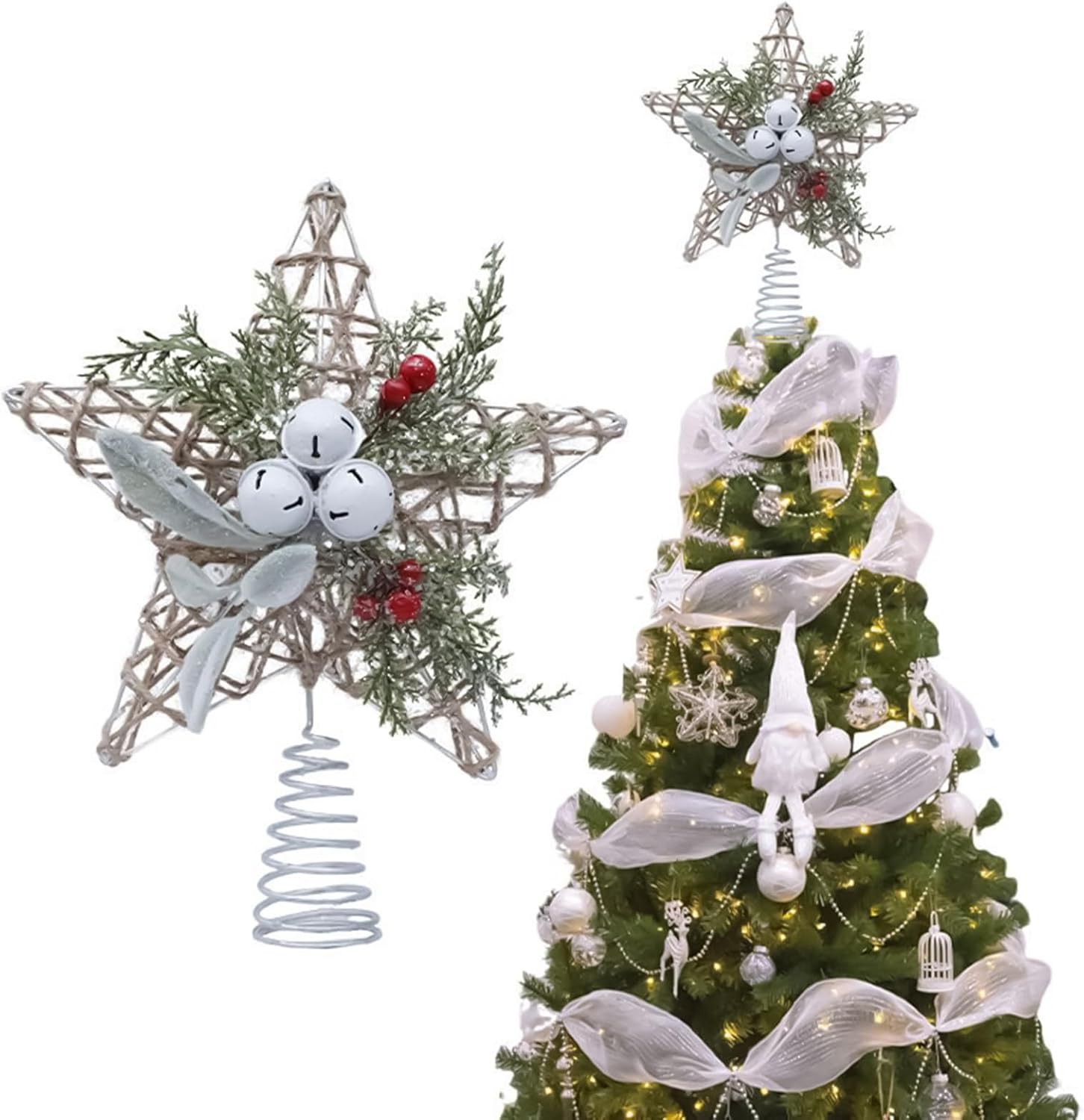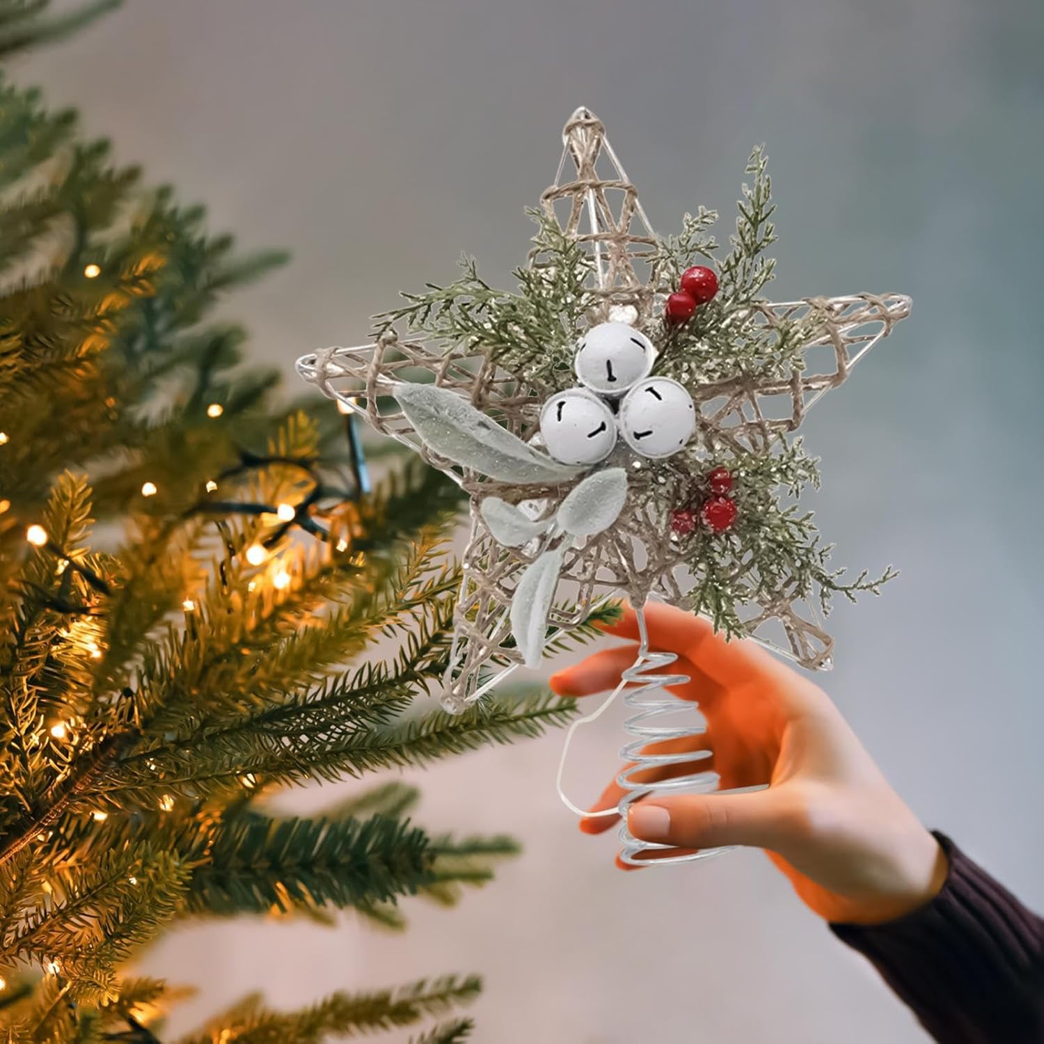 Metal Bell: Artigianale Metal Bell Artisandithought definisce questo topper, migliorando la sua decorazione di luce morbida e le sue caratteristiche di illuminazione ambientale garantendo che integri sia gli alberi di Natale che le mostre di alberi con design illuminato Materiale robusto: combina versatilità interna-esterna e artigianato di tessitura della corda in acciaio, questo topper garantisce una durata stagionale Senza sforzo da installare: combina praticità e praticità da utilizzare in vari parametri, consentendo un montaggio rapido e un posizionamento sicuro sugli alberi di Natale con un design che enfatizza la facilità di gestione, ampia compatibilità Prevenzione dei danni: progettato sapientemente con materiali rinforzati per garantire che il tuo altoparlante dell'albero di Natale sia intatto durante la spedizione e la manipolazione, fornendo una tenuta resistente all'umidità per una protezione aggiuntiva Molteplici applicazioni: combinando adattabilità per ambienti commerciali e domestici, garantisce un uso immediato dopo il disimballaggio, semplifica la configurazione con funzionalità di implementazione rapida e design alimentato a batteria