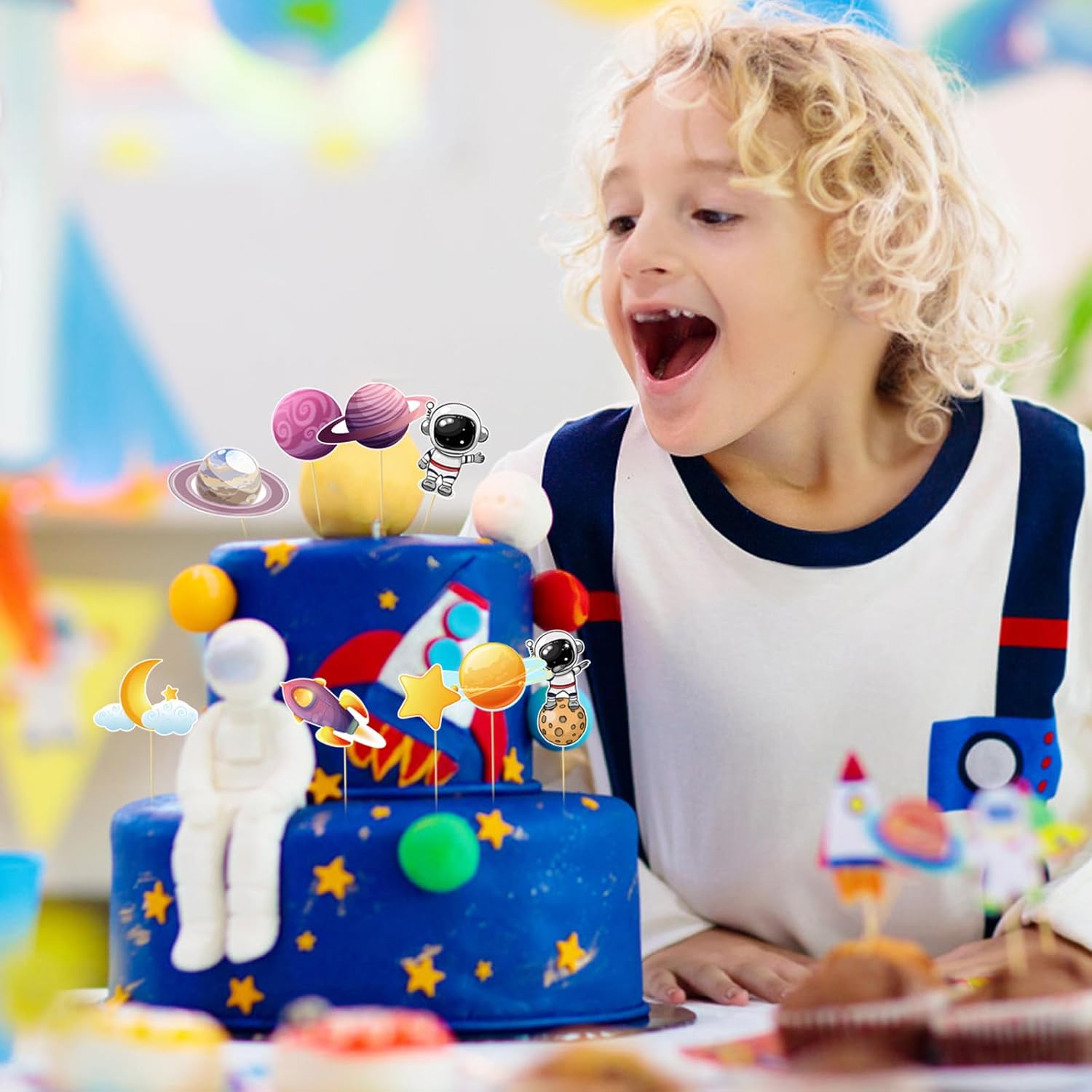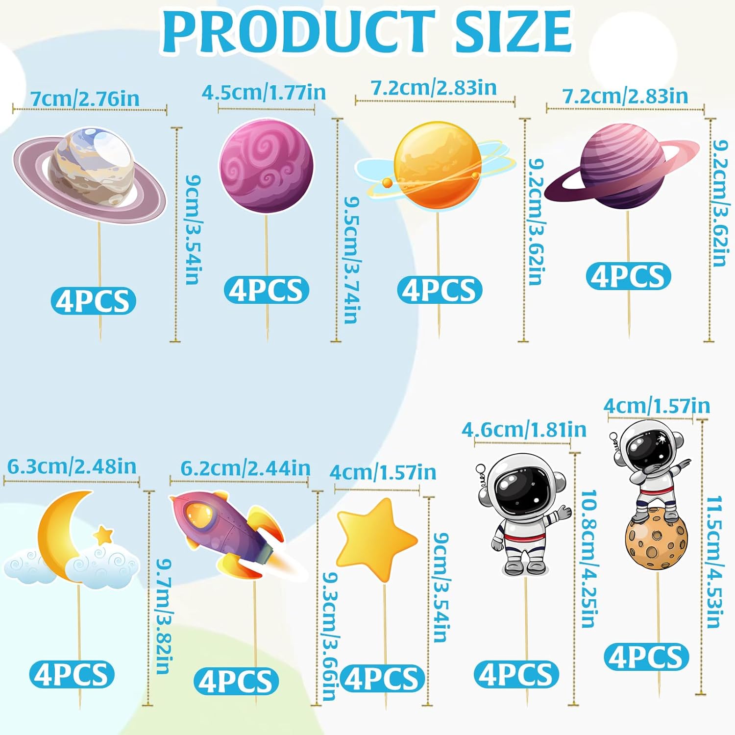 【Materiali di alta qualità】 Il topper per torta spaziale è realizzato con carta spessa di alta qualità e stuzzicadenti a contatto con gli alimenti. Il materiale è ecologico e privo di inquinamento. Il motivo è luminoso e non sbiadisce facilmente. Il topper per torta dell'astronauta viene tagliato finemente durante il processo di produzione per garantire che le tue mani non vengano ferite e il suo utilizzo sia più sicuro e affidabile. 【Installazione semplice】 L'installazione dei toppers cupcake spaziali è molto semplice. Puoi semplicemente rimuoverlo e inserirlo nella torta per la decorazione senza ulteriori complicate operazioni. Ciò non solo ti fa risparmiare tempo, ma crea anche rapidamente la scena decorativa che desideri. Il design è basato sul tema degli astronauti, che è carino e interessante e può arricchire il tema dell'evento. Molteplici funzioni: le decorazioni di compleanno degli astronauti sono particolarmente adatte per attività come feste di compleanno per bambini a tema spaziale, scambi spaziali e feste a tema astronauti. Il simpatico motivo astronauta può migliorare notevolmente l'atmosfera dell'evento e rendere la tua festa più vivace e interessante. 【Ampia applicazione】 Le decorazioni per le feste degli astronauti contengono 36 decorazioni a tema spaziale, che sono in quantità sufficiente. Può essere utilizzato non solo per decorare cupcakes, ma anche altre torte. Inoltre, i toppers per cupcake possono anche essere attaccati direttamente alla parete come decorazione. Una varietà di metodi di applicazione soddisfano le vostre diverse esigenze e danno pieno sfogo alla vostra creatività. 【Cosa otterrai】 Riceverai 36 toppers per torta spaziali, per un totale di nove stili, 4 ciascuno. Si prega di fare riferimento alle immagini per le dimensioni dettagliate. Ci impegniamo a fornire un eccellente servizio clienti. Se non sei soddisfatto delle decorazioni dello spazio o del supporto ricevuto, faccelo sapere e risolveremo il problema il prima possibile.