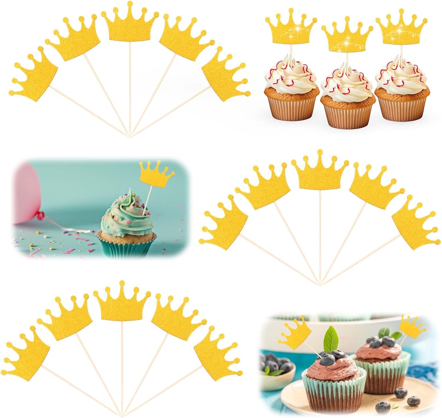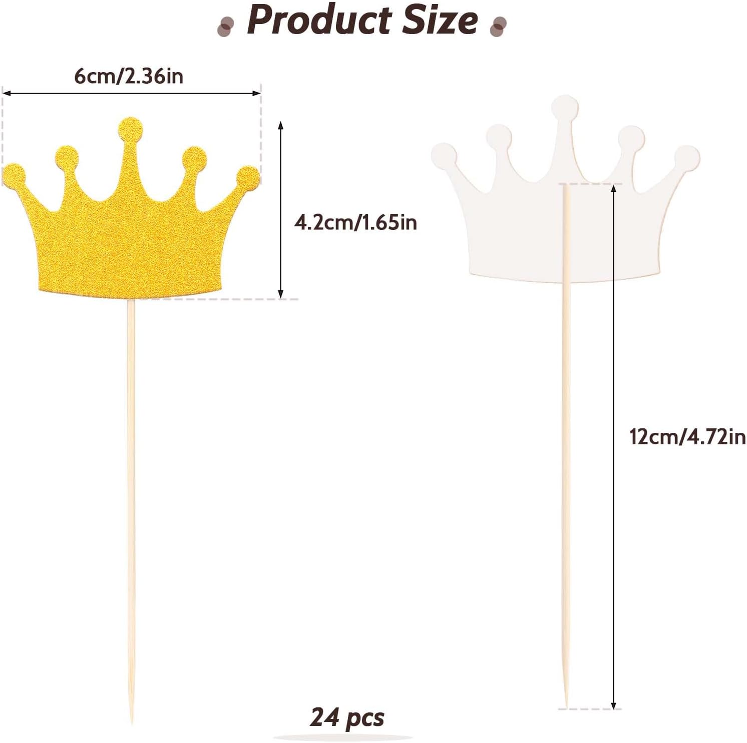 Il set di toppers per cupcake a corona da 24 pezzi include 24 set di toppers per torta dorati, sufficienti per le diverse esigenze di decorazione. Facile da montare: questi toppers per cupcake principessa sono facili da realizzare, devi solo attaccare direttamente il bastoncino di legno. Glitter dorati: questo topper per torta a corona è realizzato in spessa carta glitterata dorata con elevata durezza, che è carina, scintillante e resistente. Dimensioni: la lunghezza del bastoncino di legno è di 11 cm, la dimensione dei toppers cupcake dorati è di circa 6x4 cm. Ampia applicazione: questo topper per torta a corona è ampiamente utilizzato per decorare torte, crostate, ciotole di frutta, muffin per feste di compleanno, matrimoni, addio al nubilato, feste a tema principessa, baby shower, feste per bambini, anniversari o celebrazioni.