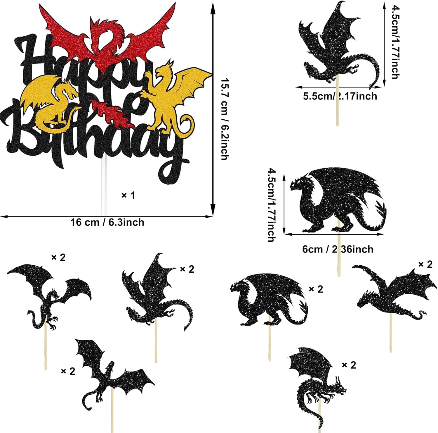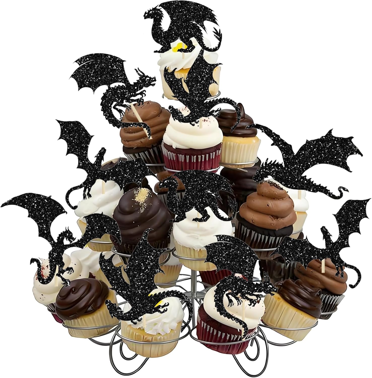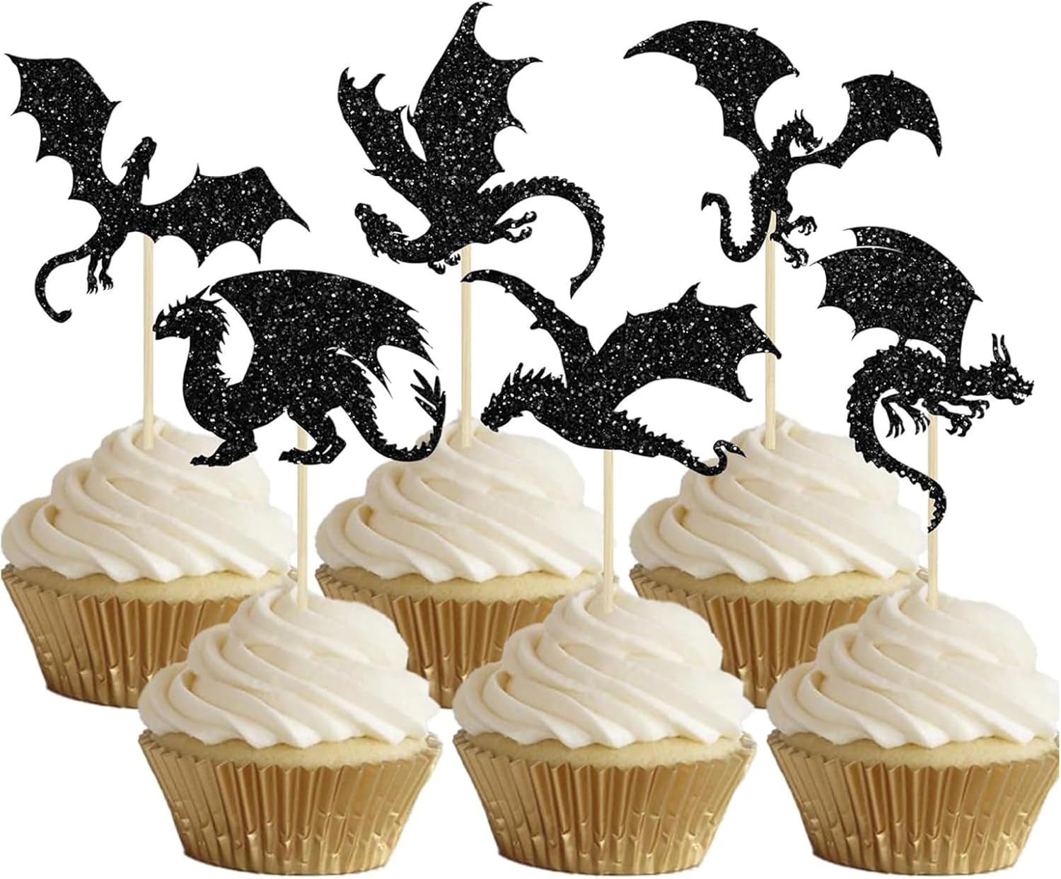 Topper per torta con drago: 13 cupcakes con drago - Questi cupcakes con drago sono sufficienti per te - Perfetto per feste a tema drago medievale. Forniture per feste Drago: il topper cupcake in carta Drago è ideale per feste di compleanno a tema drago, baby shower, feste di compleanno per bambini. Rendi la tua festa divertente e lascia che i tuoi ospiti la adorino. 7 stili di draghi: questo topper per cupcake con design a drago ha 6 diverse immagini di draghi, un topper per torta di compleanno scintillante che rende la tua torta un buon sfondo elettrico per baby shower o festa di compleanno. Materiale: questi toppers per torta drago sono realizzati in cartone di alta qualità e bastoncini di legno e non sono facili da strappare e sbiadire. Questi toppers per cupcake Drago ti faranno risparmiare tempo e potrai facilmente decorare le tue torte con il tema del tuo compleanno. Ampie applicazioni: il vassoio per cupcake lucido del drago è adatto per feste a tema drago, feste di compleanno, feste fantasy e può anche essere utilizzato per decorare dessert, gelati, biscotti, frutta, antipasti, ecc.