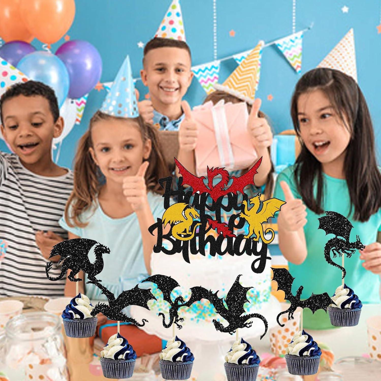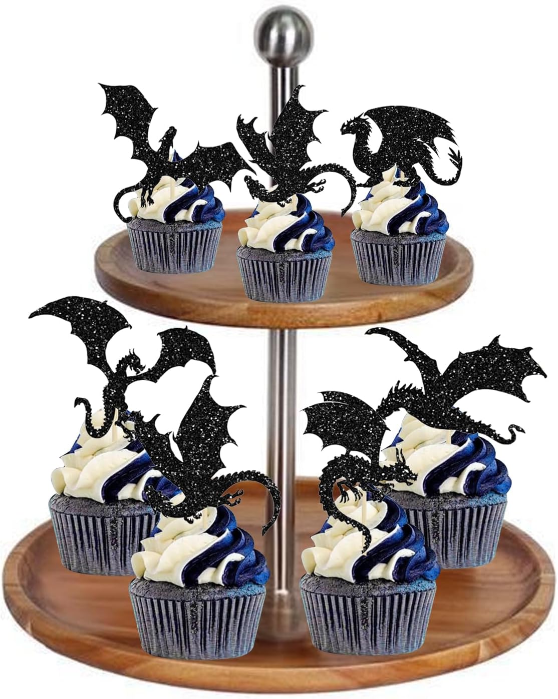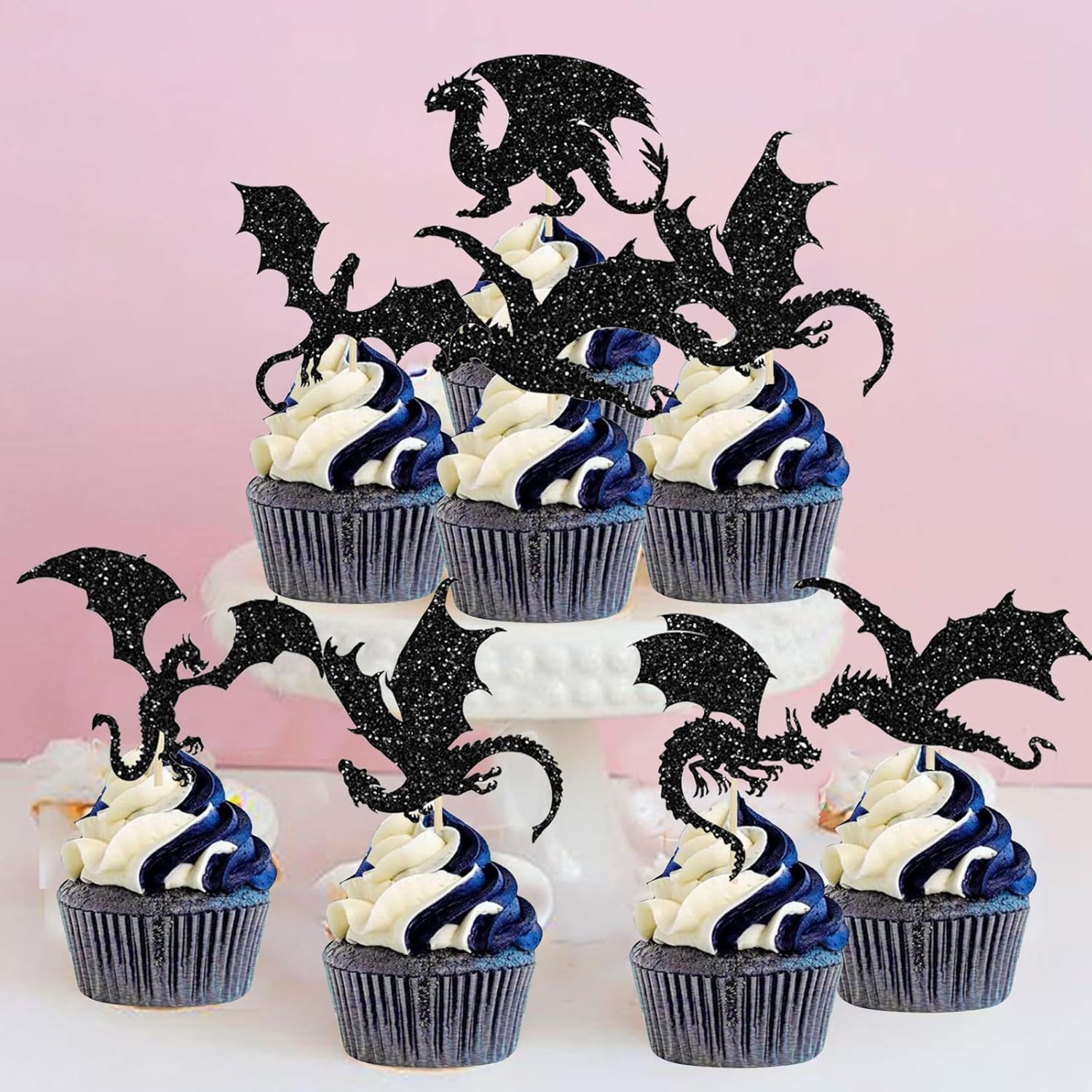 Topper per torta con drago: 13 cupcakes con drago - Questi cupcakes con drago sono sufficienti per te - Perfetto per feste a tema drago medievale. Forniture per feste Drago: il topper cupcake in carta Drago è ideale per feste di compleanno a tema drago, baby shower, feste di compleanno per bambini. Rendi la tua festa divertente e lascia che i tuoi ospiti la adorino. 7 stili di draghi: questo topper per cupcake con design a drago ha 6 diverse immagini di draghi, un topper per torta di compleanno scintillante che rende la tua torta un buon sfondo elettrico per baby shower o festa di compleanno. Materiale: questi toppers per torta drago sono realizzati in cartone di alta qualità e bastoncini di legno e non sono facili da strappare e sbiadire. Questi toppers per cupcake Drago ti faranno risparmiare tempo e potrai facilmente decorare le tue torte con il tema del tuo compleanno. Ampie applicazioni: il vassoio per cupcake lucido del drago è adatto per feste a tema drago, feste di compleanno, feste fantasy e può anche essere utilizzato per decorare dessert, gelati, biscotti, frutta, antipasti, ecc.