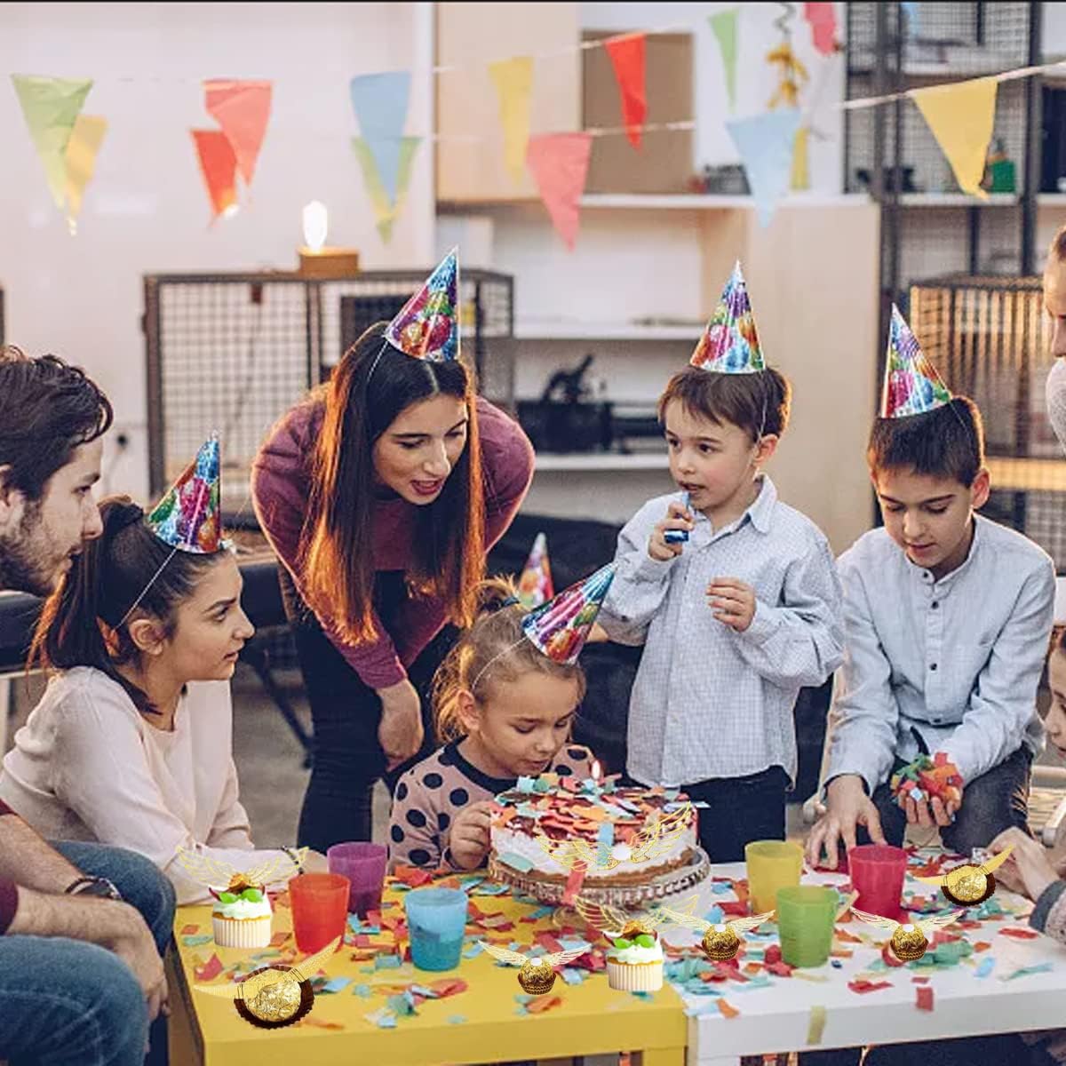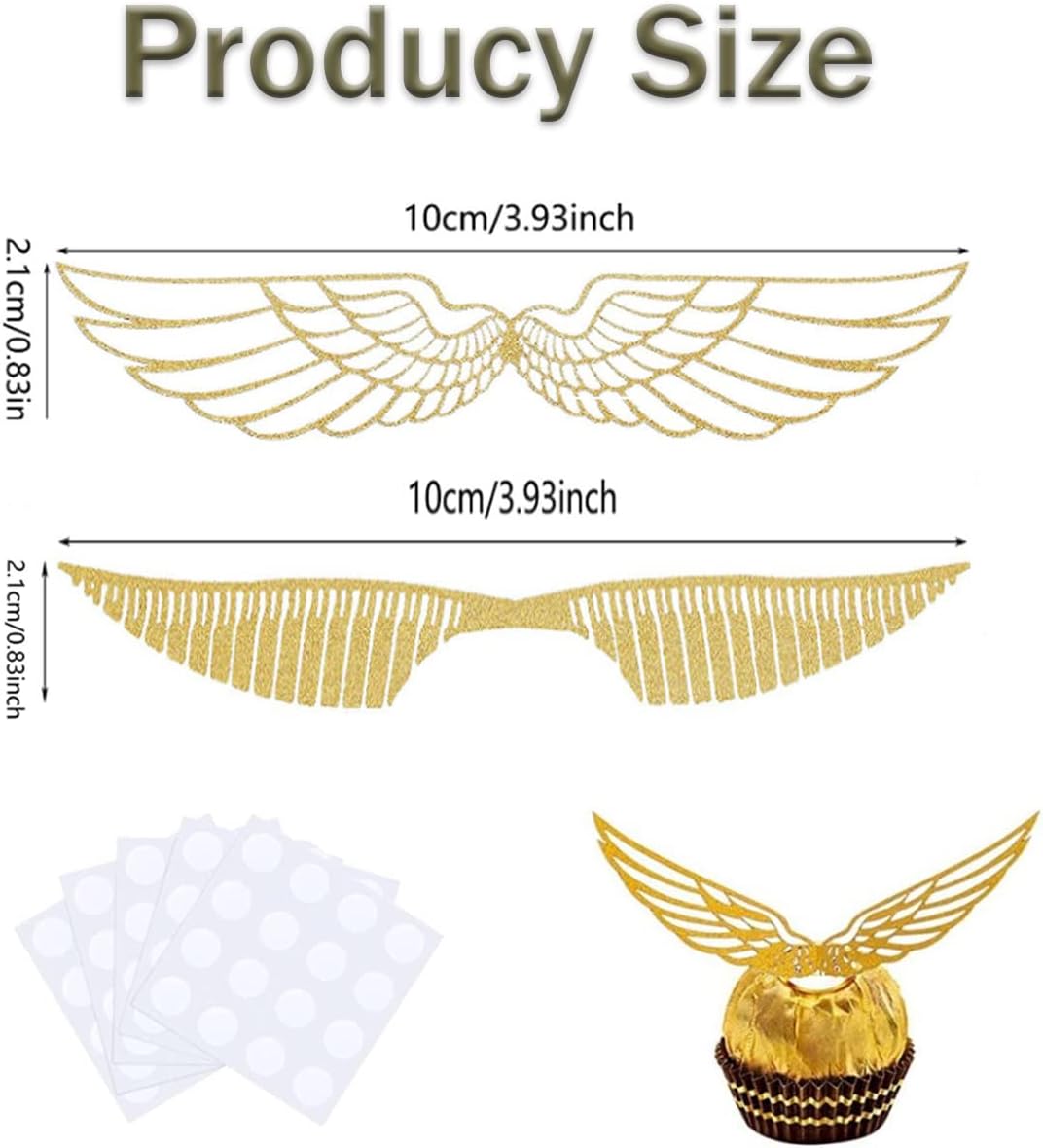 Il pacchetto include: riceverai 100 toppers per torta Harry (divisi in 2 stili) e 100 punti adesivi biadesivi Magician Party per le tue esigenze di decorazione della festa. 【Materiale】: la decorazione topper cupcake del mago del cioccolato è realizzata in cartone ecologico di alta qualità, che non è facile da piegare, rompere o strappare, quindi puoi conservarlo per riutilizzarlo dopo l'uso. Perfetto per decorare cupcakes e cioccolatini. Le dimensioni sono 4 pollici. 【Facile da usare】: basta attaccare un lato dei punti adesivi biadesivi sul retro delle ali e l'altro lato sugli alimenti che desideri decorare, come cupcake, cioccolatini, ecc., puoi facilmente creare una meravigliosa atmosfera di festa a tema mago. 【Design creativo】: queste ali delicate aggiungono un colore dorato abbagliante. I toppers cupcake dorati fronte-retro brillano e affascinano la magia delle ali del Boccino d'Oro. Aggiunge fascino a una festa, soprattutto per gli appassionati di storie magiche. 【Occasione applicabile】: queste decorazioni per torte con ali d'angelo sono particolarmente adatte per la decorazione di torte di varie feste a tema. Ideale anche per torte di compleanno, torte di fidanzamento, torte nuziali, baby shower e cupcakes. Può anche essere decorato ovunque su pareti, piante, ecc.