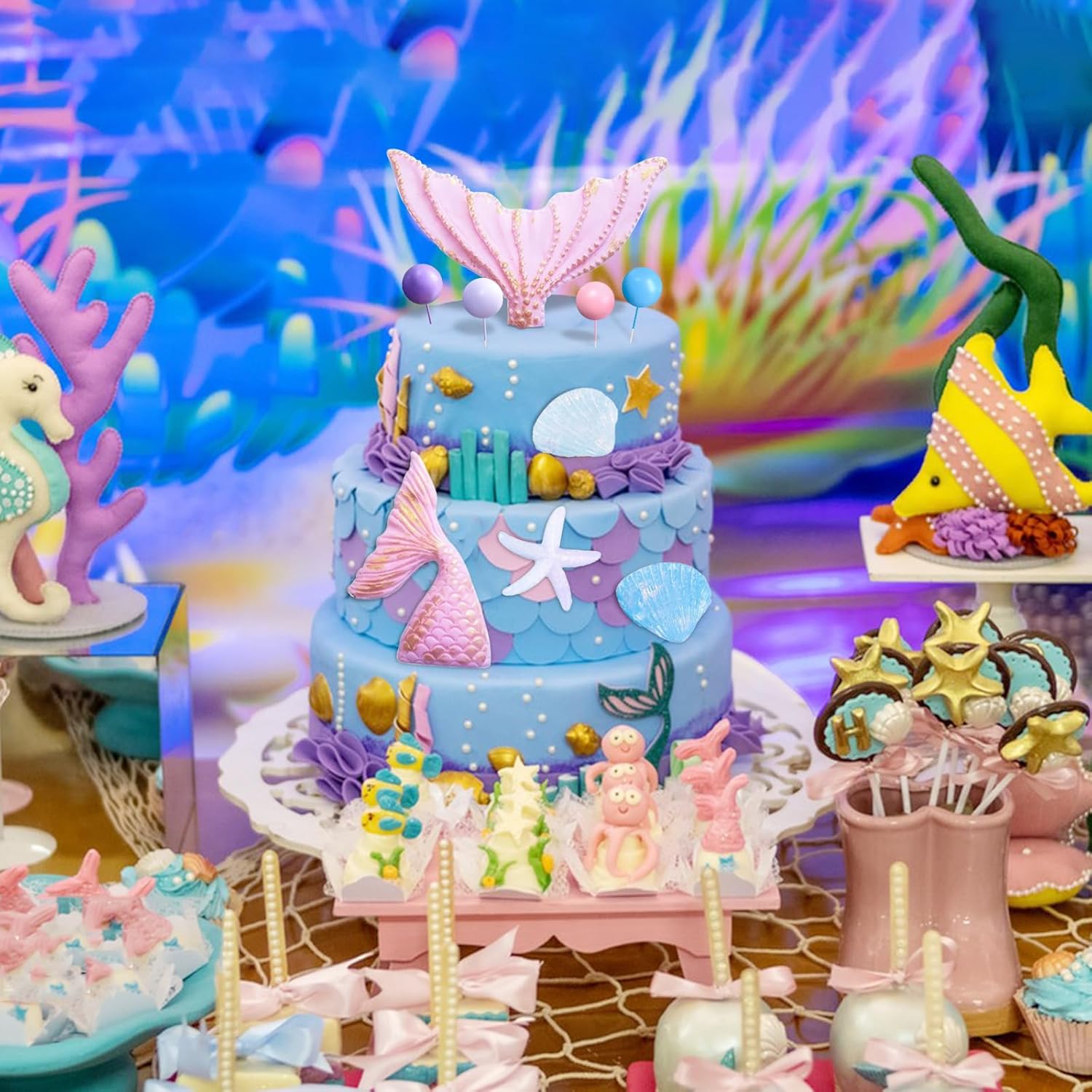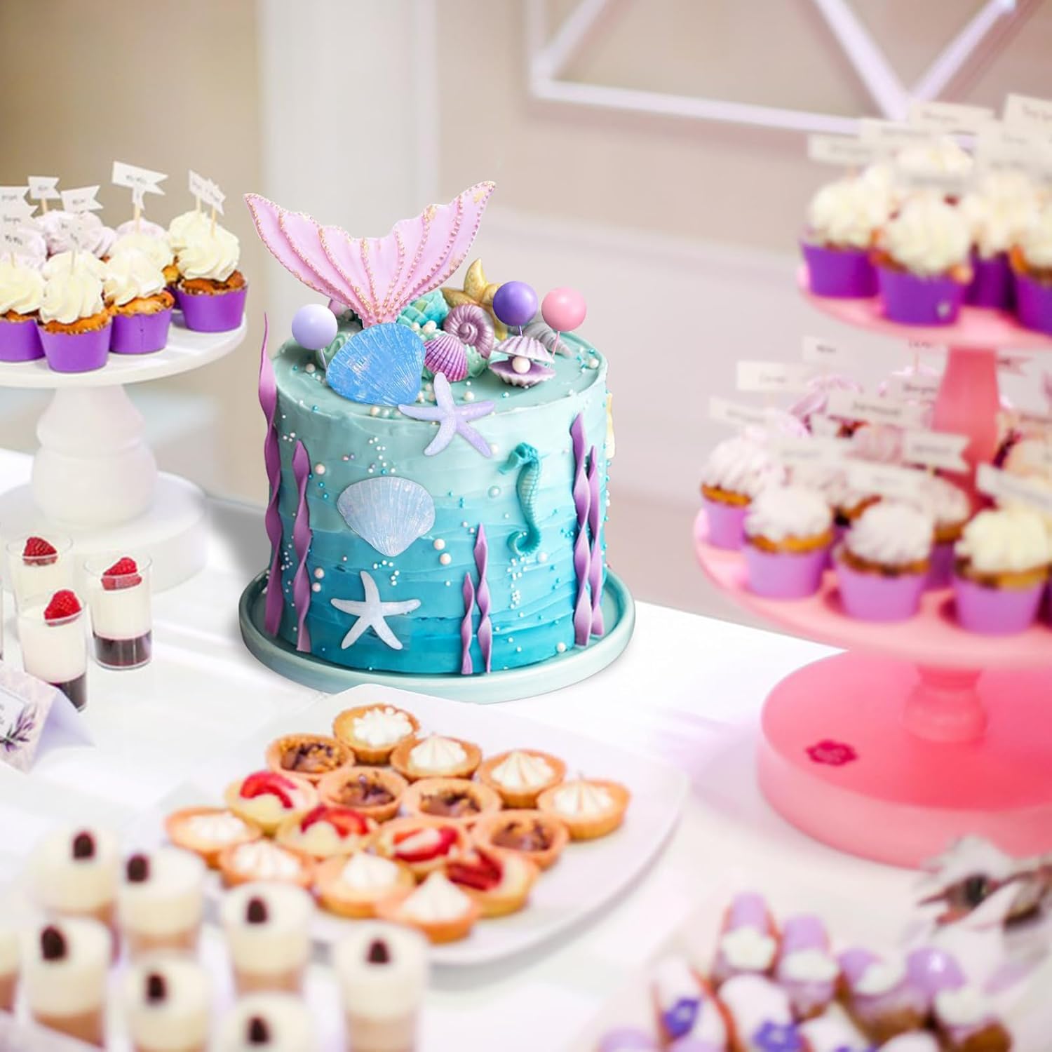 Topper per torta a sirena: la confezione include 2 code di sirena rosa, 2 conchiglie, 2 stelle marine, 2 code di sirena da 1 pollice, 5 palline rosa, 5 palline viola chiaro, 5 palline blu, 5 palline viola scuro. Design a sirena da cartone animato: decorazioni per torte a forma di sirena dalla forma carina e dal design raffinato, amate dai bambini, rendono la tua torta più accattivante e portano gioia incomparabile alla tua famiglia e ai tuoi amici. Materiali per uso alimentare: i nostri toppers per torta a sirena sono realizzati con materiali ecologici di alta qualità, sicuri e inodore, possono essere riutilizzati. Puoi liberare la tua creatività e usarla in una varietà di luoghi. Festeggia in fondo al mare: dai il tono a qualsiasi festa di compleanno della Sirenetta, da quella semplice e sofisticata a quella squisita e decorata! Perfetto per decorazioni per baby shower a forma di sirena per ragazze, forniture per feste di compleanno a forma di sirena, piatti, tazze e tovaglioli a forma di sirena per tutti i giorni, decorazioni a forma di sirena per il compleanno, ultime decorazioni per addio al nubilato e altro ancora. Festa di compleanno con sirena: i toppers per torta con sirena sono decorativi e non commestibili, puoi anche usarli per decorare altre case ed è il miglior regalo per i bambini. Se avete domande, non esitate a contattarci.
