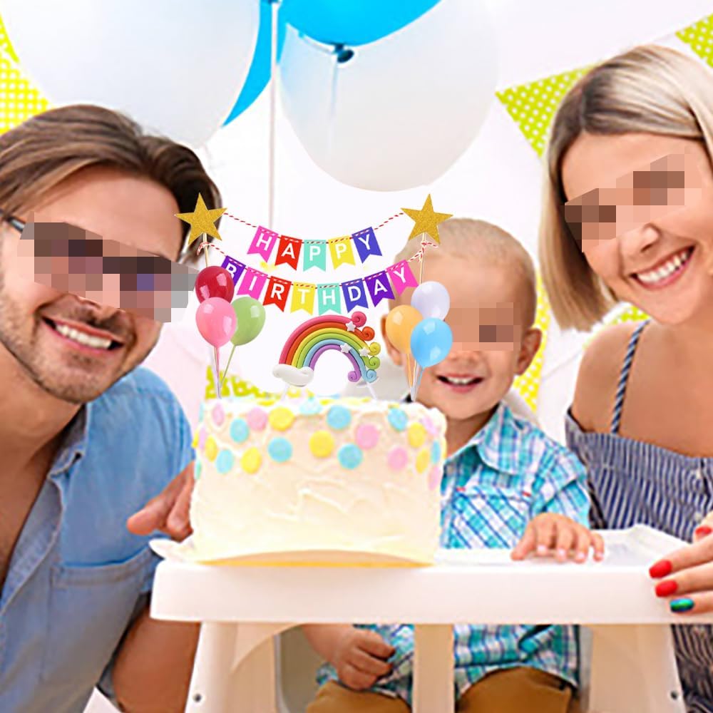 Confezione: il kit di decorazioni per il compleanno include la stamina Happy Birthday, l'arcobaleno, la nuvola, la stella, i palloncini colorati e la candela numerica in gruppi. 【Materiale】: il banner e la nuvola di buon compleanno sono fatti di carta. L'arcobaleno è fatto di argilla morbida. I palloncini sono fatti di schiuma. La candela numerica è realizzata in cera di paraffina. Facile da usare: dopo aver pulito i cappucci decorativi, inseriscili direttamente nella torta e disponili in bellissime forme secondo le tue preferenze. Molteplici usi: il kit di decorazione può fungere da delicato accessorio per torte, cupcake, dessert, formaggio, gelato, frutta o altri piatti che desideri decorare, molto adatto per l'atmosfera di festa. Bellissima decorazione: aiuta a creare un'atmosfera felice, calda e dolce per il compleanno. Ottimo per feste di compleanno, baby shower, feste di rivelazione di genere, feste a tema carnevale, anniversari o altri eventi.