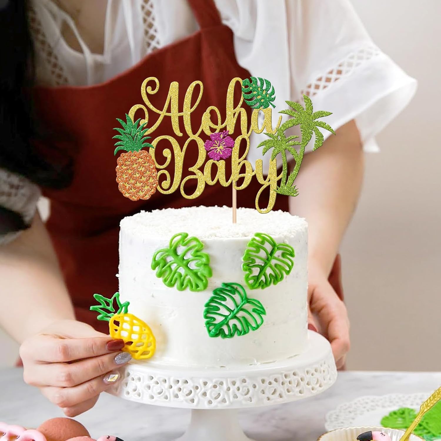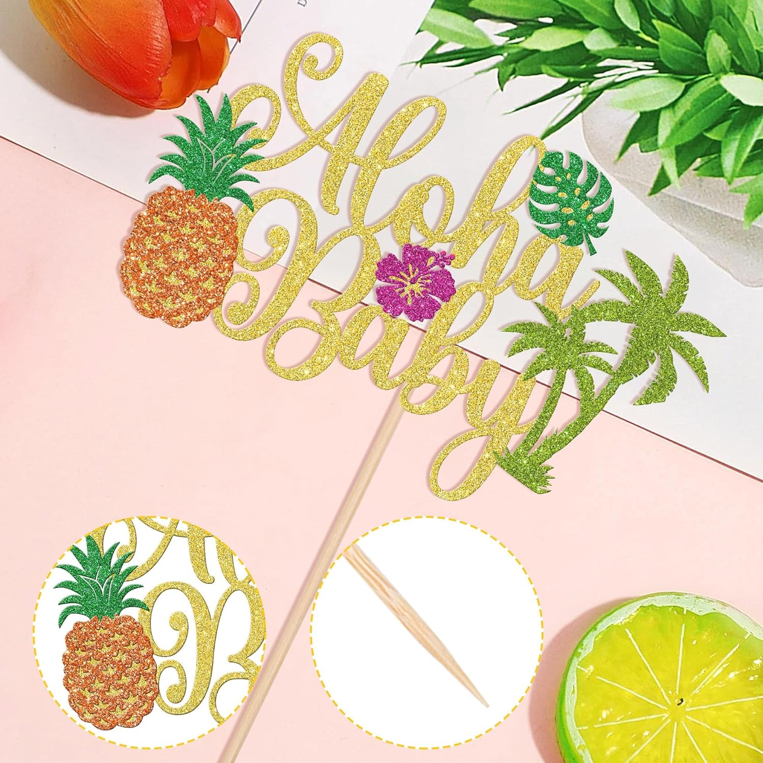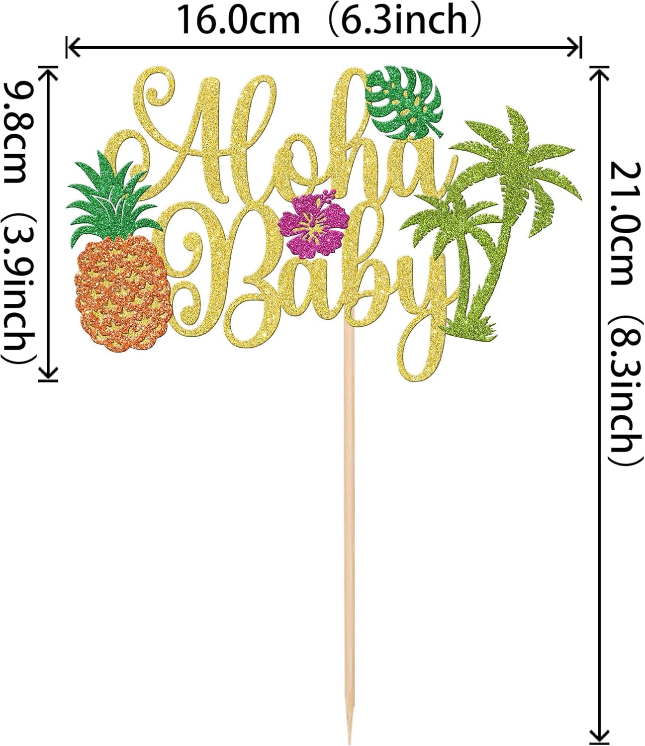 🌺 La confezione include --- Include 1 pezzo di topper per cupcake hawaiano, splendidamente progettato in colori vivaci. Possono essere abbinati a diversi tipi di cupcakes per rendere la vostra torta più invitante. 🌺 Materiale --- Realizzato con carta glitterata su un solo lato di alta qualità e bastoncini di bambù, sicuri e non tossici, non facilmente deformabili o sbiaditi. Brillano alla luce, migliorano l'atmosfera della festa e attirano l'attenzione della gente. 🌺 Dimensioni --- La dimensione del topper per torta è L 8,3 pollici x L 6,3 pollici/L 21 cm x L 16 cm (incluso il bastoncino). Adatto per cupcake, biscotti, torte, frutta, gelati e altri dessert. 🌺 Squisiti disegni hawaiani --- I toppers per torta presentano squisiti disegni tropicali come ananas, foglie di palma, fiori di ibisco, ecc. Con il loro aspetto scintillante, attirano l'attenzione e danno alla tua torta di compleanno un tocco estivo! Perfetto per le feste estive. 🌺 Ampiamente usato --- Queste decorazioni per torte hawaiane creano una forte atmosfera estiva attraverso l'uso di colori vivaci, perfette per feste hawaiane, feste di compleanno, feste in piscina sulla spiaggia, feste estive, feste nella giungla, baby shower, tè pomeridiano e altro ancora.