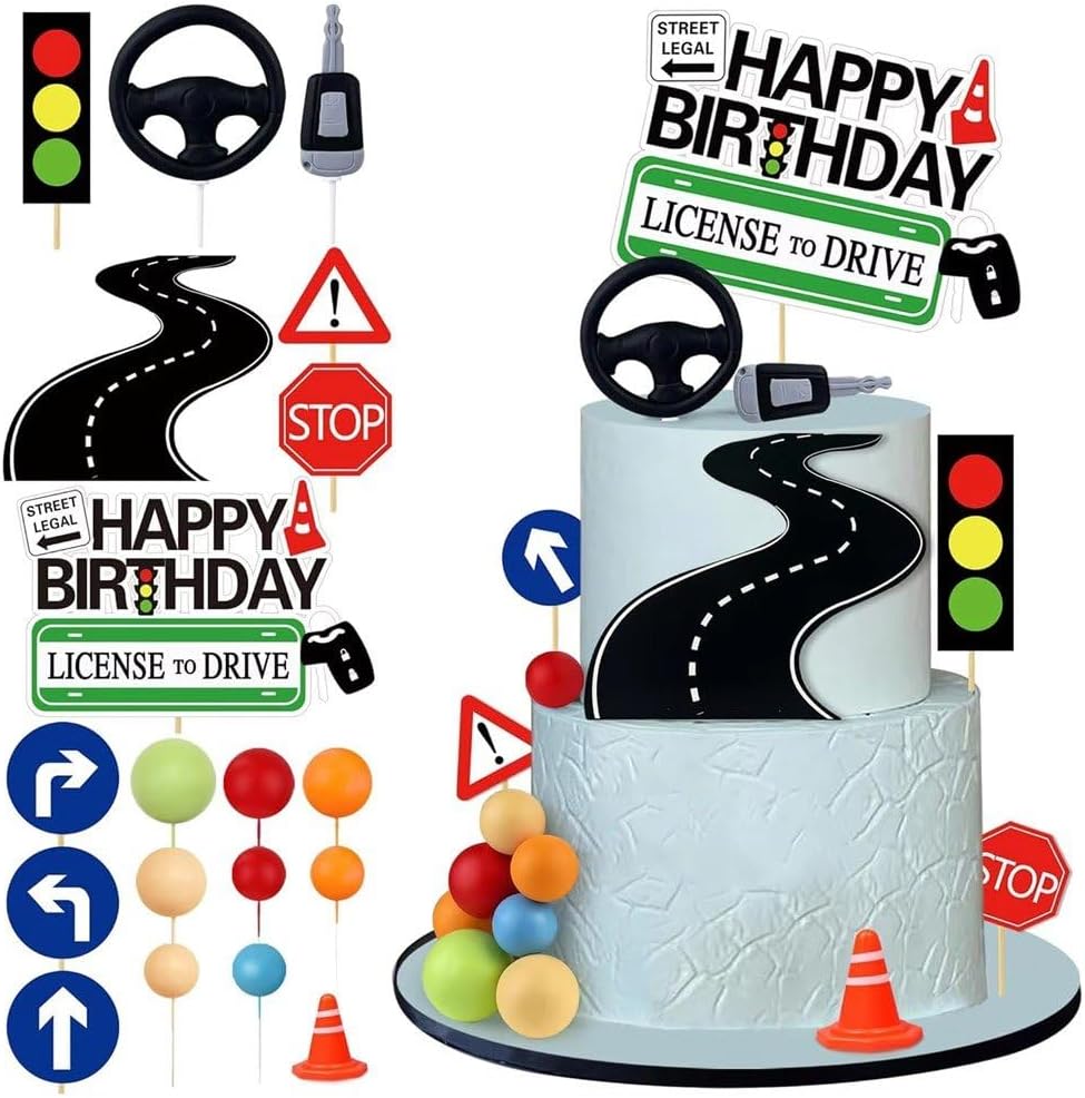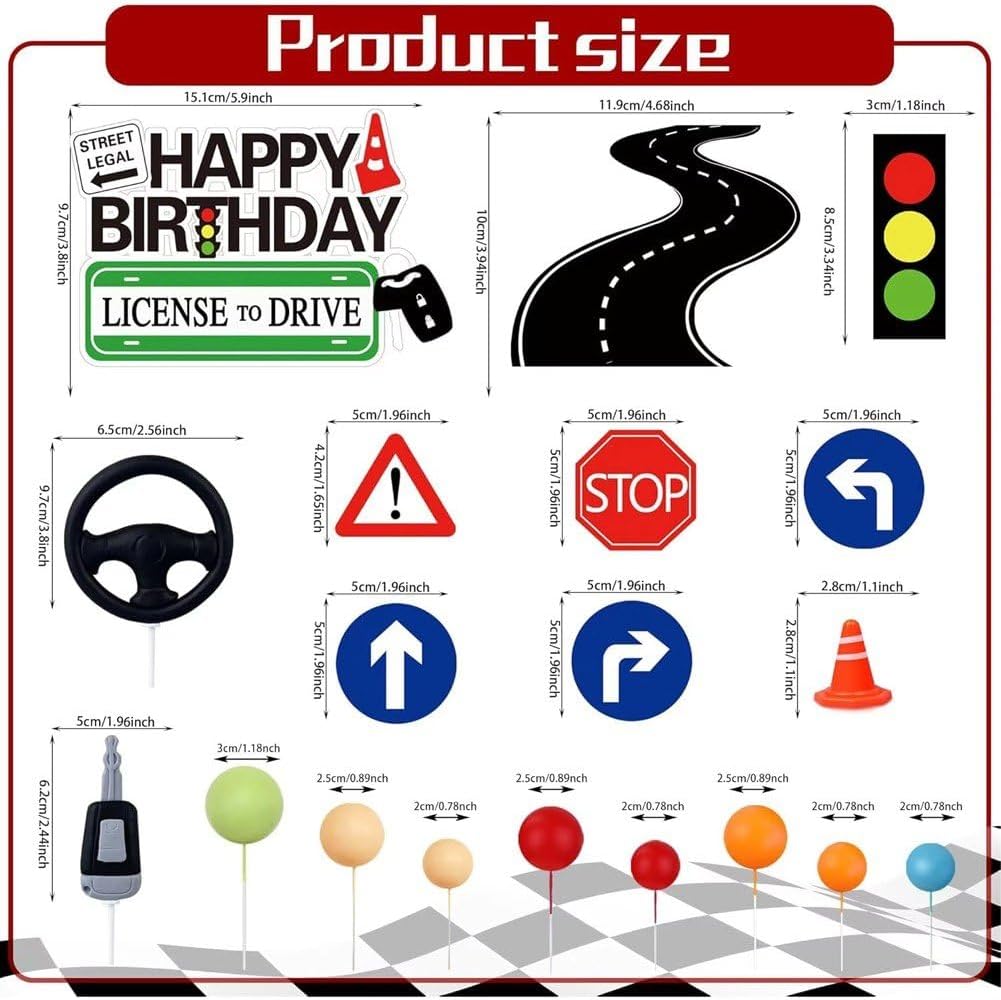 AMPIA APPLICAZIONE: Questi nuovi toppers per torta a tema pilota aggiungeranno un bel tocco alla tua torta e ti aiuteranno a decorare una festa affascinante. DESIGN: Realizzati con squisita attenzione ai dettagli, questi toppers per torta presentano un design affascinante che sicuramente impressionerà i tuoi ospiti. CONFEZIONE: La confezione contiene 1 set di toppers per torta con patente di guida, incluso 1 volante, 1 chiave, 9 toppers per torta nuovo conducente, 8 toppers per torta con palline colorate. FACILI DA DECORARE: Che tu preferisca uno stile classico, moderno o a tema, i nostri toppers per torta completeranno magnificamente qualsiasi torta. ASPETTO BELLO: i segnali stradali delle auto sono così reali che ti fanno sentire come se stessi guidando, un regalo perfetto per i conducenti nuovi e giovani.