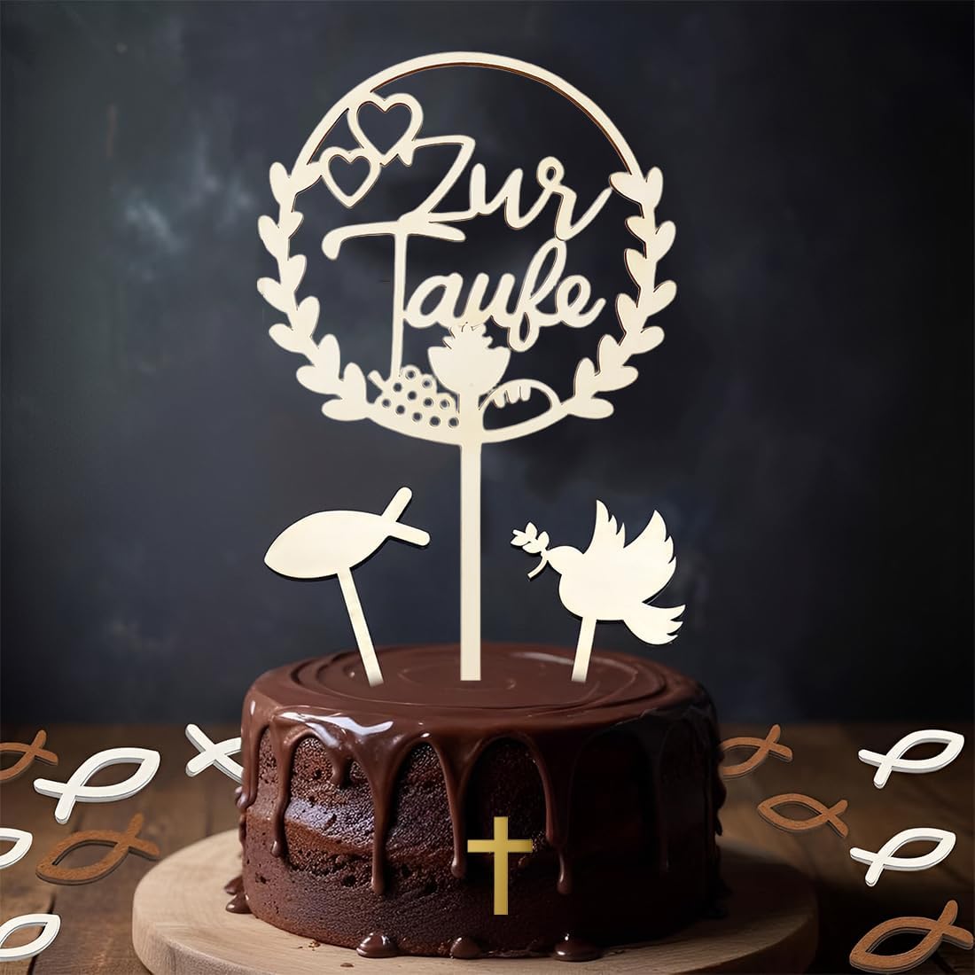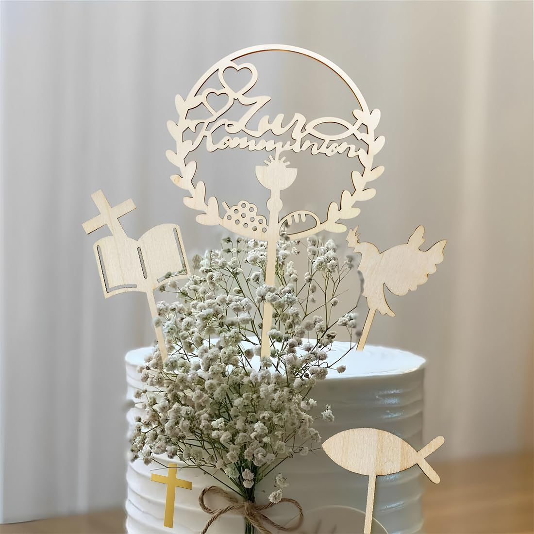 Decorazioni religiose significative: simboli come croci, colombe, libri sacri, perfetti per battesimi e comunioni. Aggiungi un tocco sacro e personale alle torte e celebra le ricorrenze religiose. Materiale in legno naturale: realizzato in legno di alta qualità ed ecologico. Bordi lisci, struttura robusta: sicuri per l'uso sulle torte e conferiscono un fascino caldo e rustico alle esposizioni dei dessert. Facile da montare e utilizzare: basta inserire le decorazioni nelle torte o nei cupcake. Nessun assemblaggio complicato: crea rapidamente un tavolo dei dolci armonioso e a tema religioso per battesimi, comunioni o cresime. Ricordi riutilizzabili: il legno resistente può essere riutilizzato per futuri eventi religiosi o come decorazione per la casa. Da esporre dopo la festa come ricordo di un giorno speciale. Versatile per i dessert: si adatta a torte di diverse dimensioni, cupcake o anche come decorazione per piatti da dessert. Ideale per aggiungere un elemento spirituale e decorativo a qualsiasi evento religioso.
