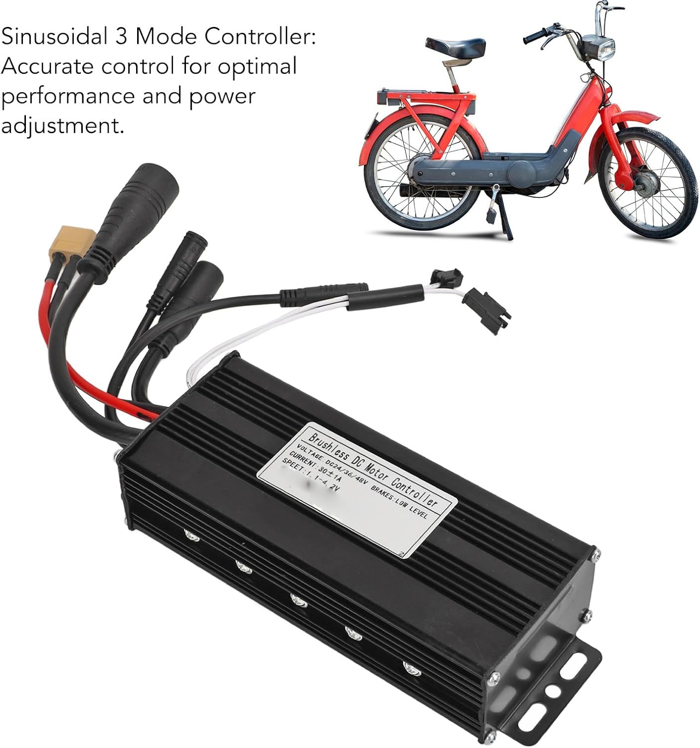 PRESTAZIONI MIGLIORATE: il nostro controller a onda sinusoidale a 3 modalità progettato con precisione è compatibile con i motori brushless Hall e Hallless, rendendolo la scelta perfetta per motori elettrici come 36V750W, 36V1000W, 48V750W e 48V1000W. Con la sua funzione di autoapprendimento, si adatta in modo intelligente alla fase, garantendo prestazioni ottimizzate. COSTRUZIONE PREMIUM: Il guscio in lega di alluminio del controller non solo ne migliora la durata, ma presenta anche scanalature per un'eccellente dissipazione del calore. Questo design protegge i cavi da eventuali danni e previene il surriscaldamento, garantendo una maggiore durata del controller. ELEVATA CAPACITÀ DI CORRENTE: con una capacità massima di gestione della corrente di 30 A per brevi periodi, il nostro controller dà priorità alla sicurezza. Interrompe automaticamente l'alimentazione alle alte temperature, proteggendo l'intero sistema da potenziali pericoli CONNETTORE IMPERMEABILE: Progettato con un connettore impermeabile, il nostro controller garantisce una connessione sicura e affidabile anche in condizioni umide. Che tu stia affrontando la pioggia o attraversando pozzanghere, puoi contare sul nostro controller per fornire prestazioni continue e ininterrotte. FACILE INSTALLAZIONE: Comprendiamo il valore del tuo tempo, ecco perché il nostro controller viene fornito con un manuale di facile utilizzo. Con istruzioni chiare e una facile installazione, puoi tornare rapidamente in viaggio con il minimo sforzo e la massima comodità.