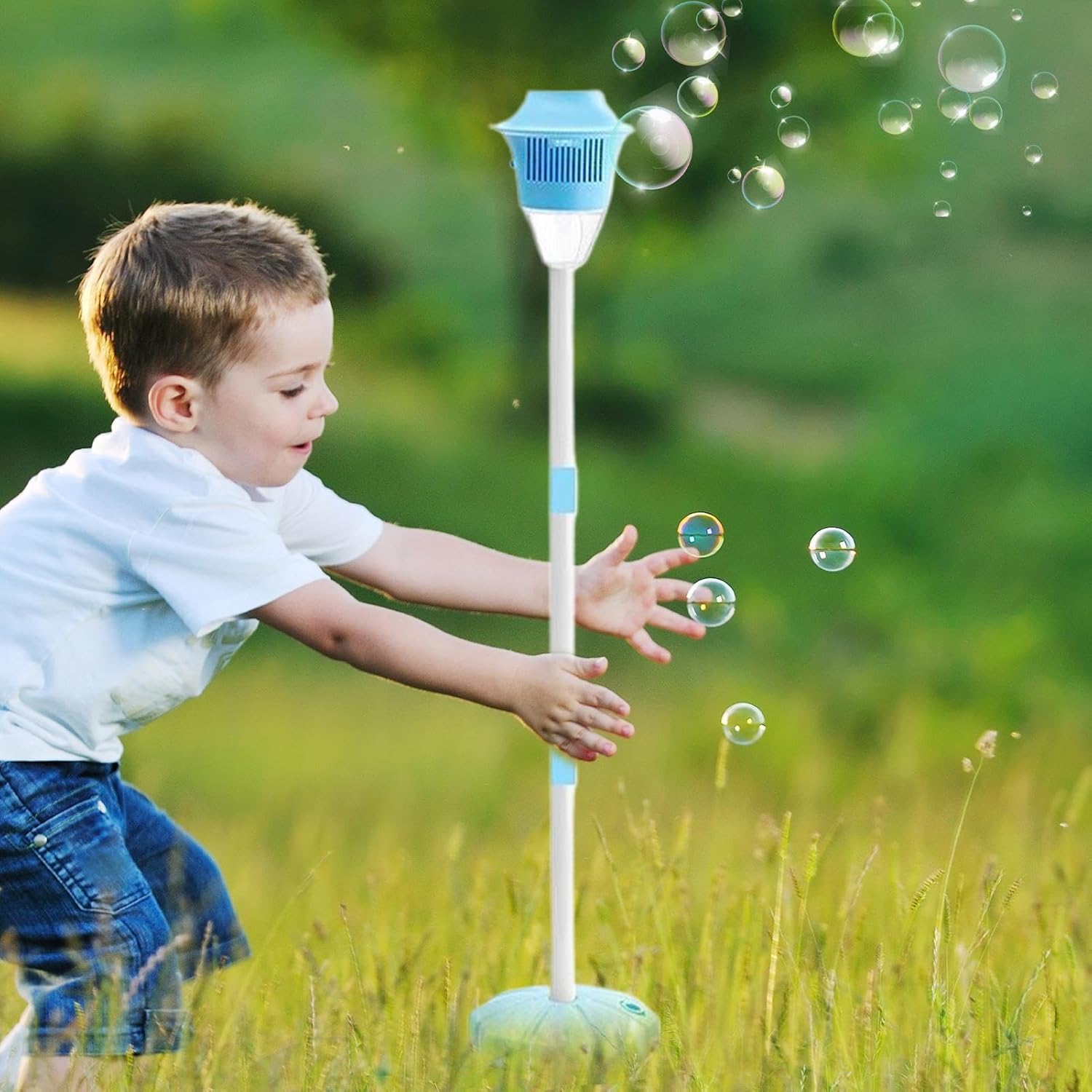 Creatore di atmosfere stravaganti: migliora il tuo arredamento esterno con questa innovativa torcia a bolle che unisce un'illuminazione pratica con un incantevole intrattenimento con le bolle. La sua silhouette ispirata al lampione stradale aggiunge raffinatezza. Fascino a bolle regolabile: con illuminazione dinamica, musica e altezza regolabile, questa torcia a bolle si adatta a qualsiasi scena. Tre modalità di velocità ti consentono di creare intensità di bolle, rendendola adatta per matrimoni, feste di compleanno o serate rilassanti Base stabile riempita d'acqua: la base riempita d'acqua fornisce stabilità affidabile per questa torcia a bolle, a condizione che rimanga in posizione verticale anche in condizioni di vento. La sua struttura solida e affidabile lo rendono una scelta affidabile per i prodotti a bolle continue. Luce a bolle portatile: questa torcia a bolle portatile funge sia da luce ambientale che da centro di intrattenimento, alimentata da una batteria ricaricabile a lunga durata. L'uso senza fili consente un posizionamento flessibile su prati, cortili o eventi all'aperto. Ampia gamma di applicazioni: molto adatta per picnic, riunioni in piedi, feste di compleanno e matrimoni, questa torcia a bolle offre di più con le sue bolle vibranti. La sua adattabilità lo rende una scelta per vari eventi, dalle riunioni di famiglia ai festival all'aperto