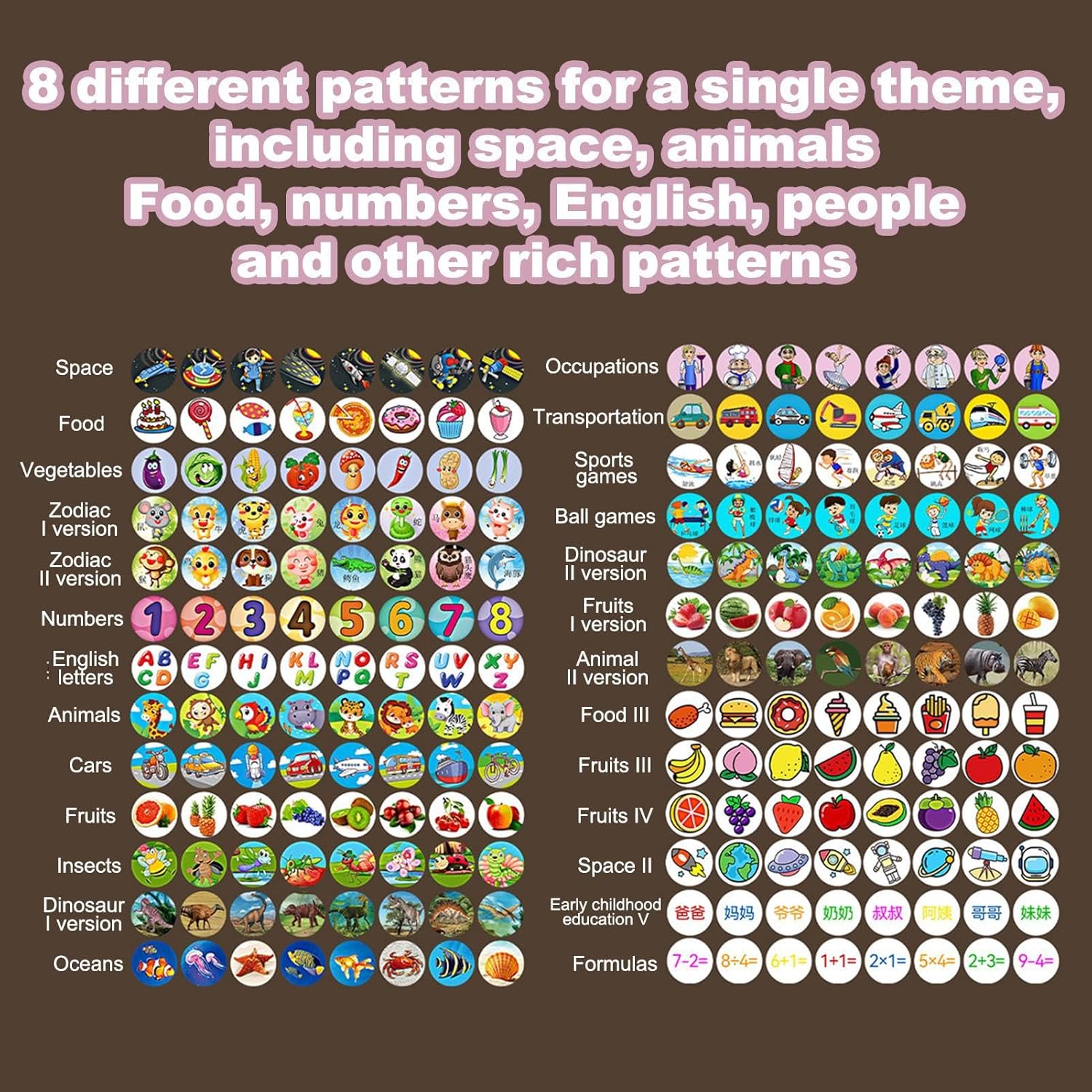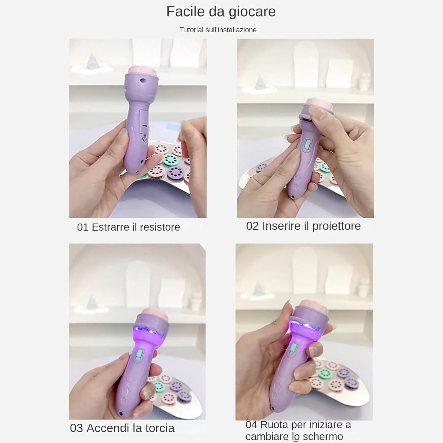 Ruotando il proiettore della torcia, i bambini possono scegliere tra 120 modelli di cartoni animati vivaci e diversi. Ogni modello ha un colore unico: incoraggia il bambino a esplorare e creare con questo entusiasmante strumento che stimola la creatività e l'immaginazione Ogni pellicola contiene più modelli e può essere facilmente modificata; inserisci la pellicola nella torcia per l'inserimento istantaneo della pellicola e inizia a proiettare per vivere un'esperienza di proiezione diversa ai tuoi bambini la libertà di cambiare facilmente i modelli di proiezione utilizzando questo leggero proiettore a torcia. Il design divertente e facile da usare consente ai bambini di ruotare delicatamente il cast ed esplorare una serie di modelli divertenti, aprendo un mondo di divertimento fantasioso e avventure Progettato pensando ai bambini, il nostro proiettore torcia protegge i loro occhi proiettando immagini divertenti ed emozionanti in qualsiasi ambiente buio. La luce soffusa crea un'atmosfera accogliente per una tranquilla routine della buonanotte Non solo è un giocattolo divertente, ma aiuta anche i bambini a conoscere e imparare, rendendolo una scelta ideale per i bambini e una scelta sicura per i genitori, adatta per compleanni, festival e altre occasioni