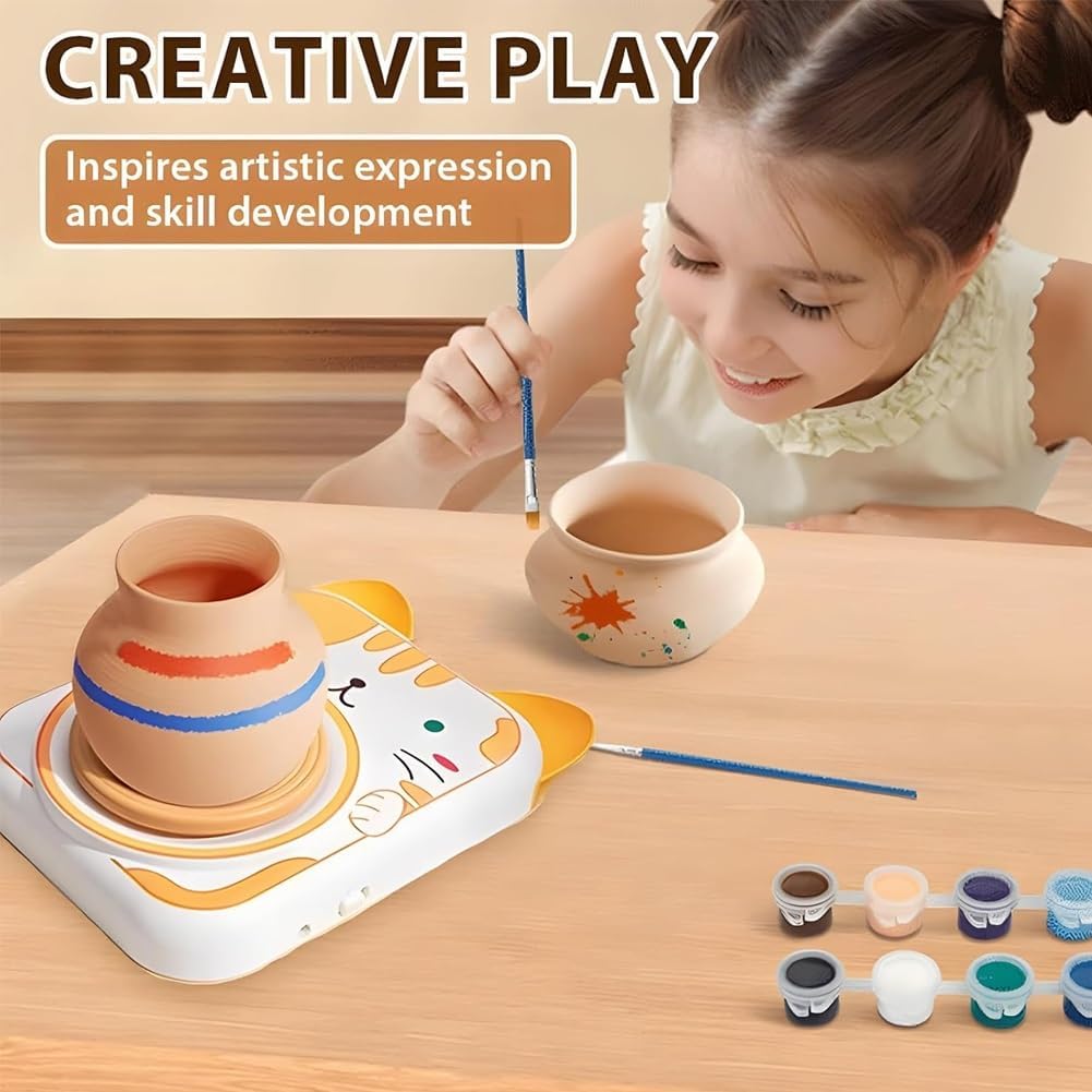 Stimola la creatività e lo sviluppo delle abilità: questo set di torni da vasaio è progettato per stimolare l'immaginazione dei bambini, migliorando al contempo le capacità motorie fini attraverso un gioco creativo e pratico. L'ambiente pratico consente ai bambini di modellare, modellare e decorare la propria ceramica, trasformando idee astratte in creazioni tangibili, il tutto sviluppando destrezza e concentrazione che favoriscono lo sviluppo precoce. Adorabili temi di animali che i bambini adorano: con graziosi stili di animali come gatti, coniglietti, cuccioli e mucche, il set aggiunge un tocco giocoso e apprezzato dai bambini ai progetti di ceramica. Questi graziosi design ispirano entusiasmo e coinvolgimento, rendendo più facile per i bambini rimanere coinvolti nelle loro creazioni ed essere orgogliosi dei loro pezzi finiti. Design intuitivo: con un'installazione semplice e intuitiva, il set è pronto per giocare fin da subito, senza bisogno di assemblaggi complicati o istruzioni. Realizzato in plastica ABS di alta qualità, è abbastanza resistente da sopportare il gioco attivo dei bambini, mentre l'argilla ecologica inclusa (morbida e facile da modellare) e le vernici vivaci e lavabili garantiscono un'esperienza senza problemi e senza stress sia per i bambini che per i genitori. Perfetto per il gioco individuale e di gruppo: che i bambini creino da soli o con gli amici, questo set favorisce la versatilità: supporta il gioco individuale per una creatività tranquilla e concentrata e il gioco di gruppo che incoraggia il lavoro di squadra, la comunicazione e l'amicizia. Condividere la gioia della ceramica aiuta i bambini a sviluppare abilità sociali, creando ricordi duraturi con fratelli, compagni di classe o compagni di gioco. Creare legami attraverso il gioco: un modo meraviglioso per genitori e bambini di creare ricordi insieme! Incoraggia il lavoro di squadra, la comunicazione e l'amicizia tra piccoli artisti. Che si tratti di gioco individuale o di attività di gruppo, offre infinite ore di gioiosa creatività.