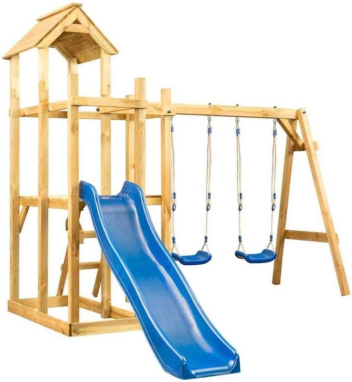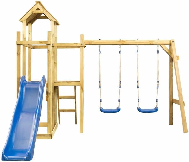 La torre da gioco in legno di pino impregnato a pressione trasforma il vostro giardino in un parco giochi sicuro per i bambini. Il legno massiccio naturale è estremamente stabile, resistente alle intemperie e resiste per anni di uso intensivo (dimensioni: 285 x 305 x 226,5 cm). Ideale per le famiglie che cercano dispositivi di gioco sostenibili all'aperto. Questo versatile set di attrezzi da gioco offre spazio per altalene, arrampicata e scatenarsi, perfetto per piccoli avventurieri di 3-12 anni. La generosa piattaforma (portata 50 kg) invita a giocare con gli amici. Una vera attrazione per giardini adatti ai bambini e oasi verdi. Design moderno con manici colorati si adatta armoniosamente ai paesaggi del giardino. I ganci in metallo intelligenti delle altalene combinano sicurezza e fascino visivo. Un giocattolo senza tempo per esterni che anticipa le tendenze della casa 2025. I fori parzialmente preforati facilitano il montaggio (è necessario un trapano). La robusta struttura con scala da arrampicata e telaio a dondolo convince grazie al design funzionale intelligente. Facile manutenzione: la superficie in legno naturale richiede solo un controllo occasionale. Perfetto come regalo per le giovani famiglie: fornito con istruzioni dettagliate conformi a GPSR. L'imballaggio sicuro protegge tutte le parti in legno durante il trasporto. Suggerimento: combinabile con altri dispositivi di gioco all'aperto per un divertimento ancora maggiore.