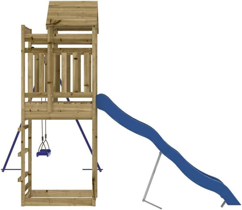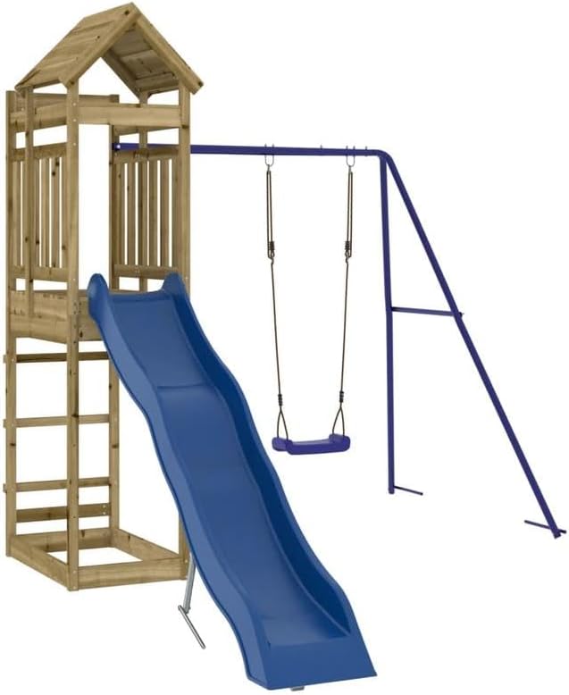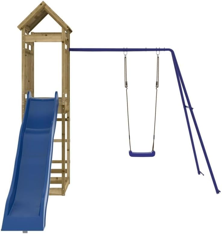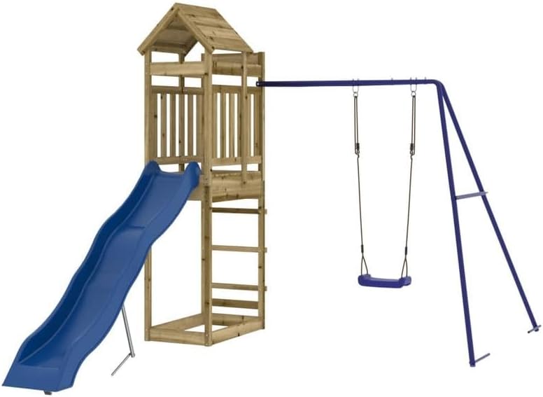 Questa torre da gioco in legno di pino impregnato in autoclave offre divertimento all'aperto duraturo per i bambini. Il legno di pino naturale con venature dritte e caratteristici rami conferisce un aspetto rustico. Grazie all'impregnazione in autoclave, il legno è particolarmente resistente alle intemperie e alla decomposizione, ideale per l'uso tutto l'anno in giardino. La torre di gioco con piattaforma alta 118 cm offre diverse possibilità di gioco per bambini di 3-8 anni. Include scivolo ondulato, altalena e sabbiera, la struttura da arrampicata invita a avventure fantasiose. Il telaio a forma di A dell'altalena garantisce una maggiore stabilità mentre gli amici possono giocare insieme. Il design sofisticato della torre di gioco unisce sicurezza ed estetica. Le ringhiere in legno circostanti proteggono i bambini durante il gioco, mentre il tetto in legno dà ombra nelle giornate calde. L'effetto legno naturale si adatta armoniosamente a qualsiasi giardino e corrisponde alle attuali tendenze della casa per i giocattoli da esterno. Il robusto telaio del ponteggio può essere facilmente ancorato al terreno con le ancore in dotazione (riduzione del rischio di ribaltamento). La struttura combinata a dondolo ondulata consente di risparmiare spazio e offre il massimo divertimento. La superficie può essere facilmente pulita con un panno umido se necessario. Il regalo perfetto per i piccoli esploratori: la torre da gioco completamente imballata viene fornita con tutte le parti necessarie e istruzioni dettagliate per il montaggio. Ideale per compleanni o come sorpresa per il tuo giardino. Il design adatto all'età (consigliato per 3-8 anni) garantisce ore di divertimento all'aperto.
