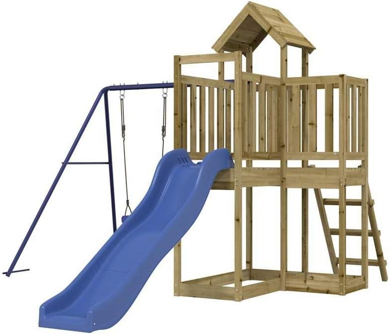 La torre da gioco è realizzata in legno di pino impregnato in autoclave, un robusto materiale naturale con venature caratteristiche per un'estrema resistenza agli agenti atmosferici. La speciale impregnazione protegge dalla putrefazione e dall'umidità, ideale per un giardino duraturo. L'effetto legno rustico si adatta naturalmente a qualsiasi ambiente. Il centro di gioco multifunzionale offre con piattaforma alta 90 cm, scivolo ondulato, scala, altalena e sabbiera abbastanza spazio per esploratori di 3-8 anni. Perfetto per feste in giardino o ore pomeridiane di gioco con gli amici. Le ringhiere perimetrali garantiscono sicurezza mentre il tetto dà ombra. Il design a forma di A unisce stabilità con un fascino intramontabile in legno, si adatta a giardini moderni e rurali. La struttura naturale del ramo conferisce alla torre di gioco un aspetto caldo e fatto a mano. Un colpo d'occhio che fa battere forte il cuore dei bambini Facile da montare grazie alle istruzioni illustrate (tempo di montaggio circa 4-6 ore). La base stabile resiste anche ai giochi più selvaggi. Suggerimento: per una maggiore sicurezza si consiglia di ancorare al terreno (ancore vendute separatamente). Il regalo perfetto per i piccoli avventurieri Confezionato in modo sicuro con tutte le parti necessarie. Ideale come sorpresa per il compleanno o l'inizio della stagione in giardino. Crea ricordi d'infanzia indimenticabili all'aria aperta.
