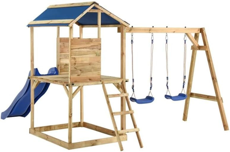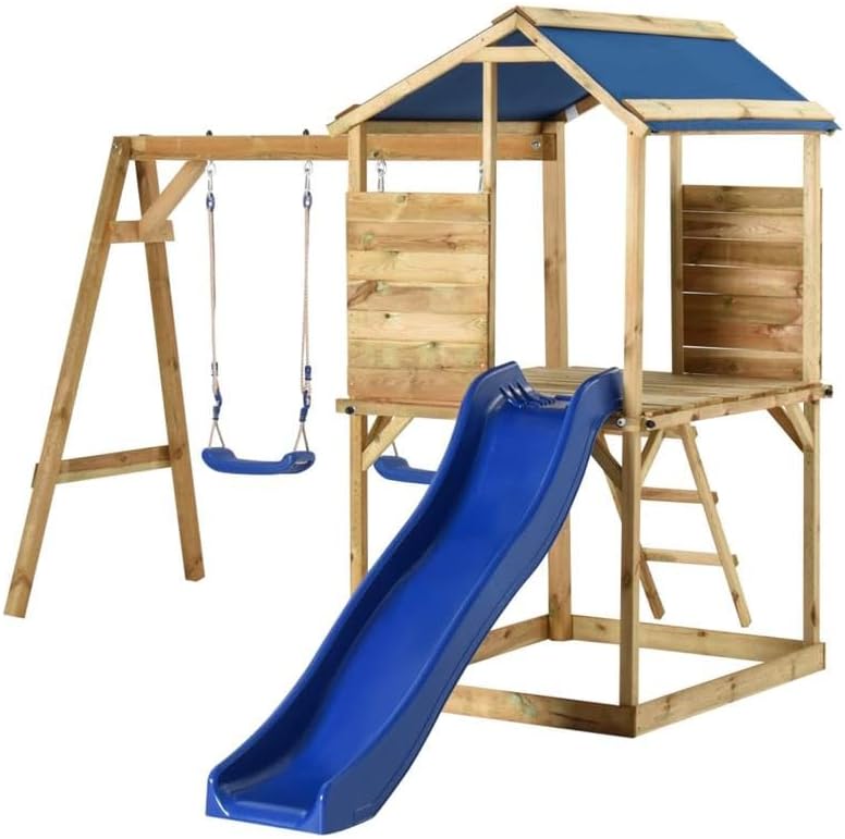 La torre da gioco è realizzata in legno di pino impregnato, un materiale robusto e resistente alle intemperie, che grazie al trattamento speciale protegge a lungo termine dalla decomposizione. Ideale per l'uso tutto l'anno in giardino (spessore del legno: 70 mm), convince per la compatibilità ecologica e la resistenza anche in caso di forte neve o luce solare. Questo set di attrezzi multifunzione trasforma piccoli giardini (da 15 m²) in un luogo di avventura con altalene, scala da arrampicata e scivolo. Perfetto per bambini dai 3 ai 10 anni: l'ampia piattaforma (90 x 120 cm) invita a nascondersi, mentre 2 altalene e pioli antiscivolo consentono di giocare con gli amici contemporaneamente. Design moderno con manici colorati e effetto legno naturale, si adatta armoniosamente a casette da giardino o terrazze. I dettagli laccati blu e rosso (colori certificati TÜV) danno un tocco alla moda – un punto forte per l'estetica del giardino a misura di bambino nello stile delle tendenze della casa 2025. Sistema facile da montare: fori preforati e componenti numerati consentono il montaggio in 6-8 ore (2 adulti). I ganci in metallo delle altalene sono resistenti alla corrosione, mentre la superficie liscia antiscivolo richiede solo una pulizia occasionale con un panno umido. Regalo popolare per compleanno o scuola materna. Disponibile in confezione protettiva riciclabile con custodia separata. Include istruzioni di montaggio in lingua tedesca con supporto hotline per domande (lun-fr. 9-18).