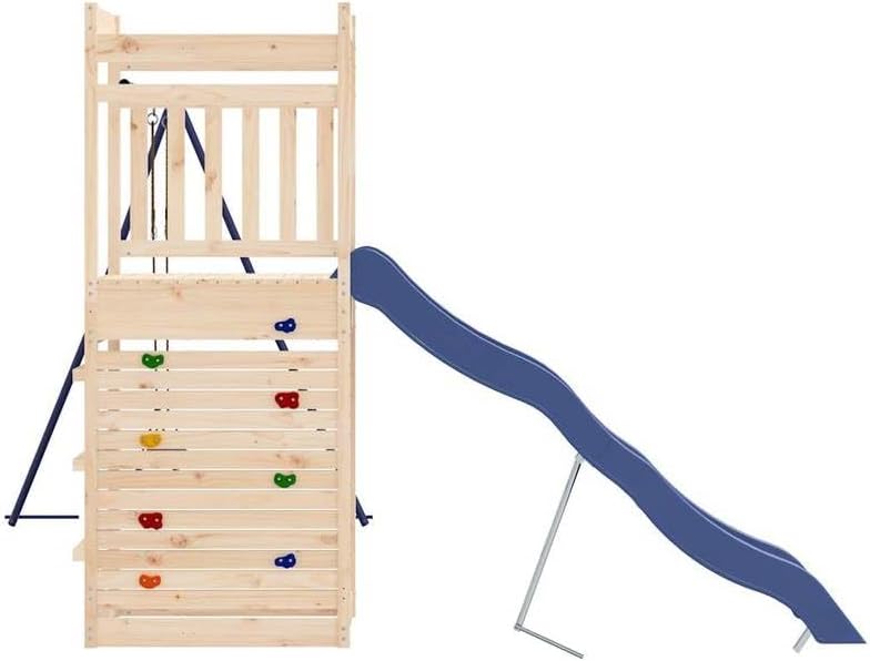 La torre di gioco in legno di pino massiccio è un giocattolo resistente e naturale per esterni. Il robusto legno di pino con venature dritte e caratteristici rami conferisce al parco giochi un aspetto rustico. Perfetto per avventure in giardino e anni di divertimento! Questa versatile torre da gioco offre 118 cm di altezza e molteplici possibilità di gioco: scivolo ondulato, parete da arrampicata, altalena e sabbiera. Ideale per bambini (3-8 anni) e i loro amici – un parco giochi completo per attività creative in giardino Design intelligente con ringhiere in legno per la massima sicurezza. La cornice a forma di "A" e l'effetto pino naturale si adattano perfettamente ai giardini moderni (tendenze abitative 2025). Combina divertimento ed estetica elegante! Facile da montare con ancoraggi inclusi per la stabilizzazione (protezione antiribaltamento). La struttura in legno di pino resistente alle intemperie richiede una manutenzione minima, ideale per l'uso all'aperto tutto l'anno Set regalo perfetto! Fornito in componenti imballati in modo sicuro con istruzioni per il montaggio. Consulenza personale disponibile: crea ricordi d'infanzia indimenticabili con questo set premium per parco giochi!