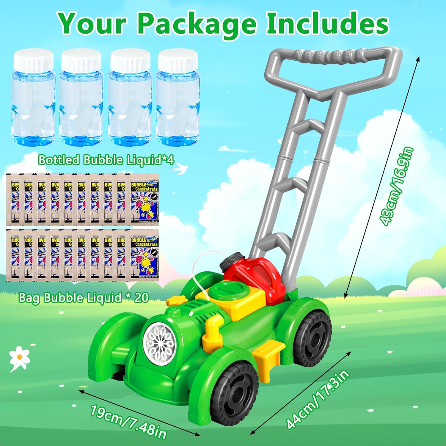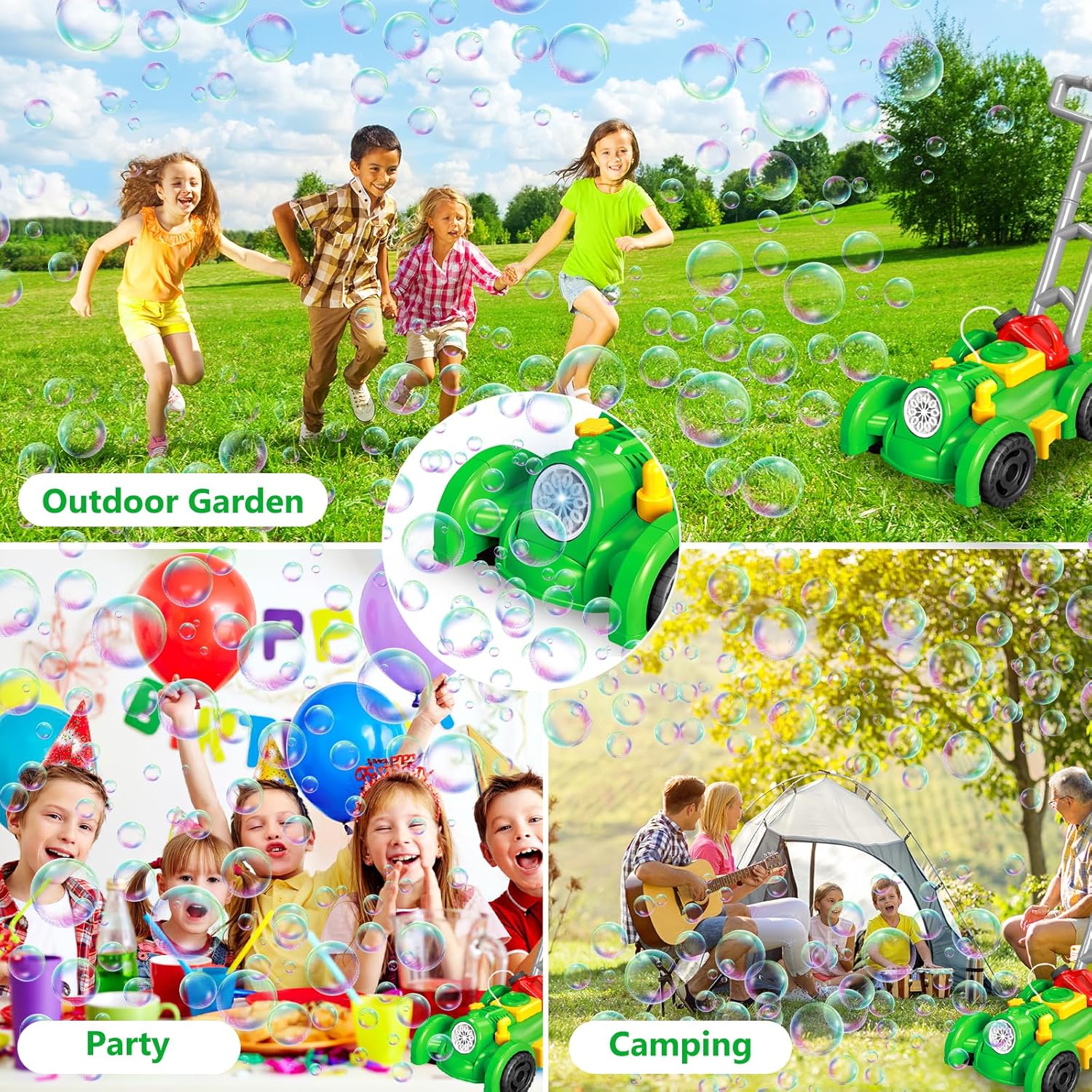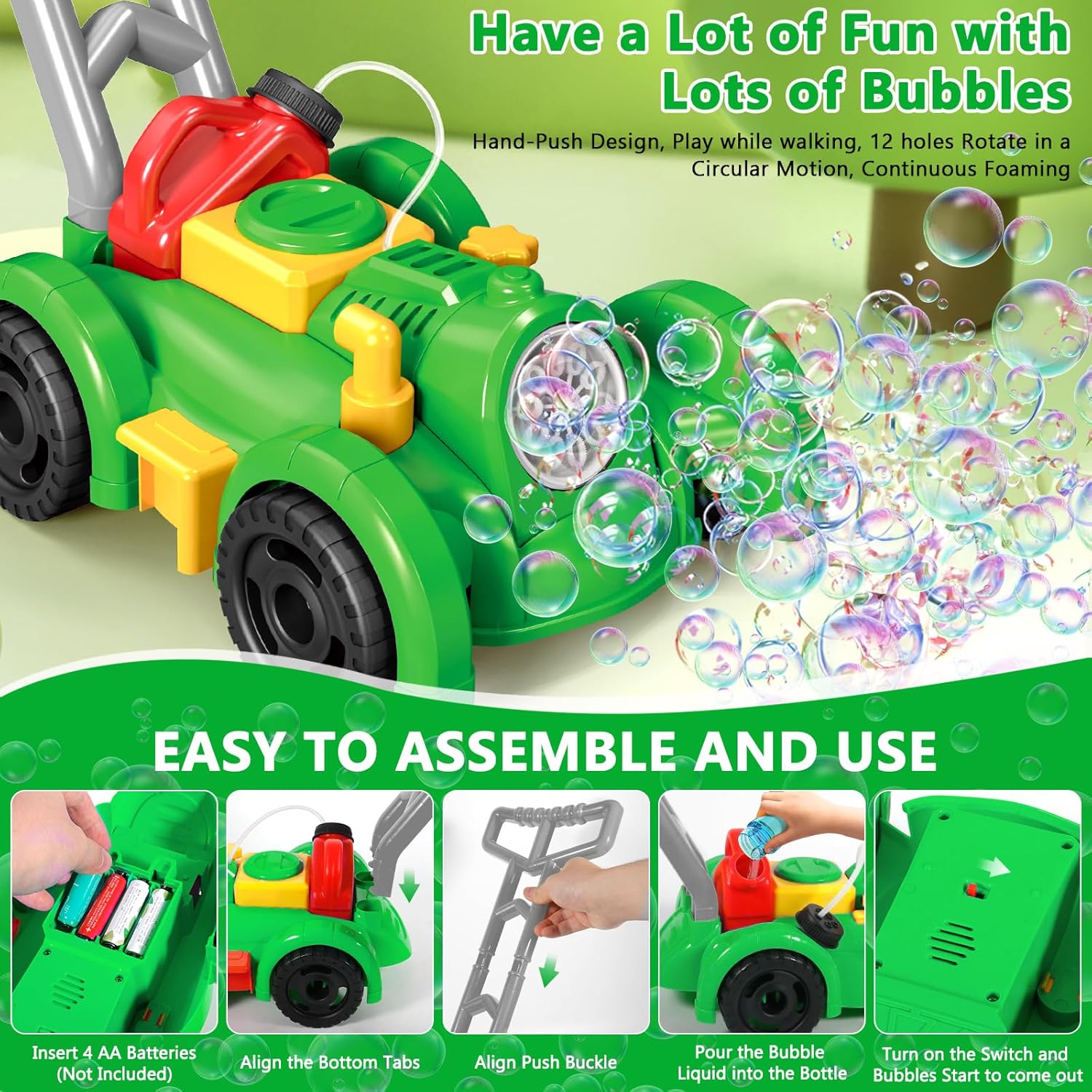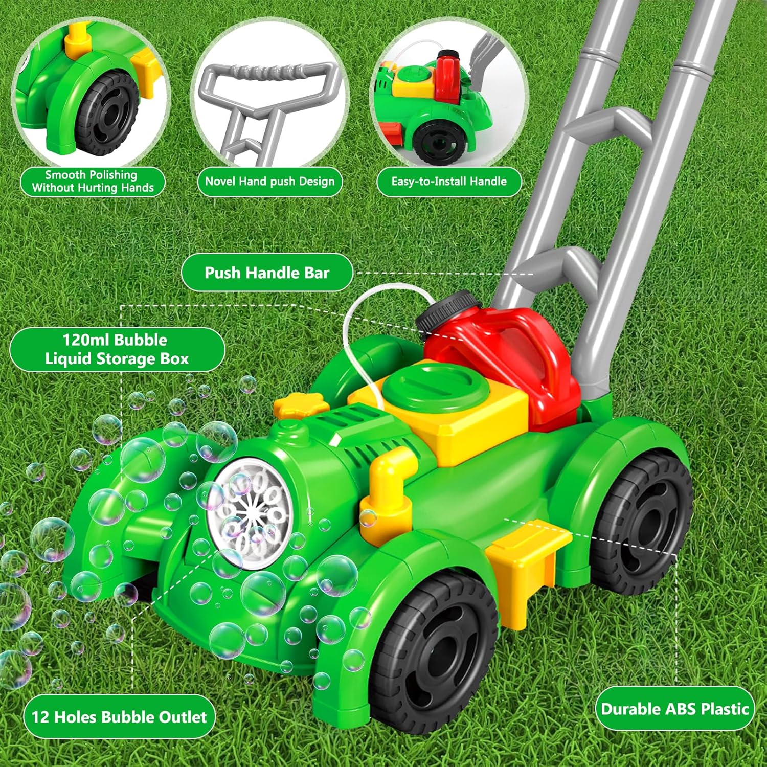 💦TOSAERBA BOLLE: La confezione regalo contiene 1 macchina elettrica per bolle e 4 flaconi di liquido per bolle, 20 concentrati per bolle. Istruzioni per la macchina per le bolle. Richiede l'inserimento di 4 batterie AA (non incluse) 🌟MATERIALI DI ALTA QUALITÀ: macchina per bolle realizzata con materiali di alta qualità, robusta e durevole. Con impugnatura liscia e girevole I bambini possono trascinare il Bubble Mower sul prato grazie alle sue ruote! 🌻APPLICAZIONE MULTI-SCENARIO: La macchina per bolle per bambini può portare molto divertimento alla famiglia e agli amici. La macchina per bolle leggera ma potente può emettere suoni realistici, puoi imitare tuo padre o tua madre mentre falcia il prato e gioca. Trascorrere del tempo in giardino, spingendo il tosaerba e facendo bolle nel vento. ✔️FACILE DA ASSEMBLARE: la macchina per bolle per bambini del tosaerba è semplice con illuminazione a LED, basta collegare la maniglia, riempire le bolle nel contenitore e premere il pulsante per usarle! La maniglia può essere rimossa per spazio, molto facile da montare. 🎁REGALO PERFETTO: il tosaerba per bambini migliora le capacità motorie e la coordinazione occhio-mano, può portare divertimento illimitato a bambini e animali domestici. Perfetto per l'intrattenimento estivo all'aperto, perfetto anche per regali di compleanno, regali per bambini o premi o incentivi