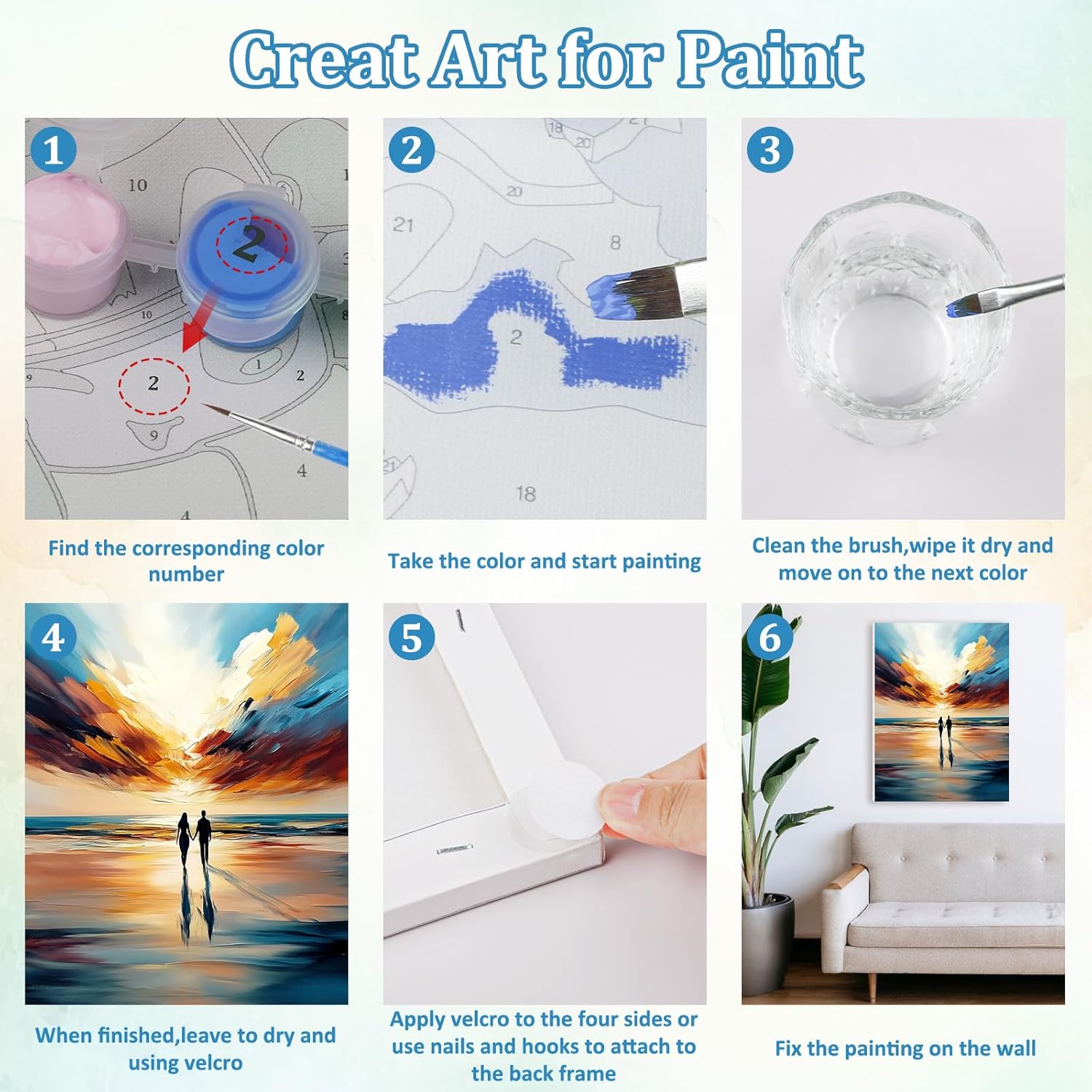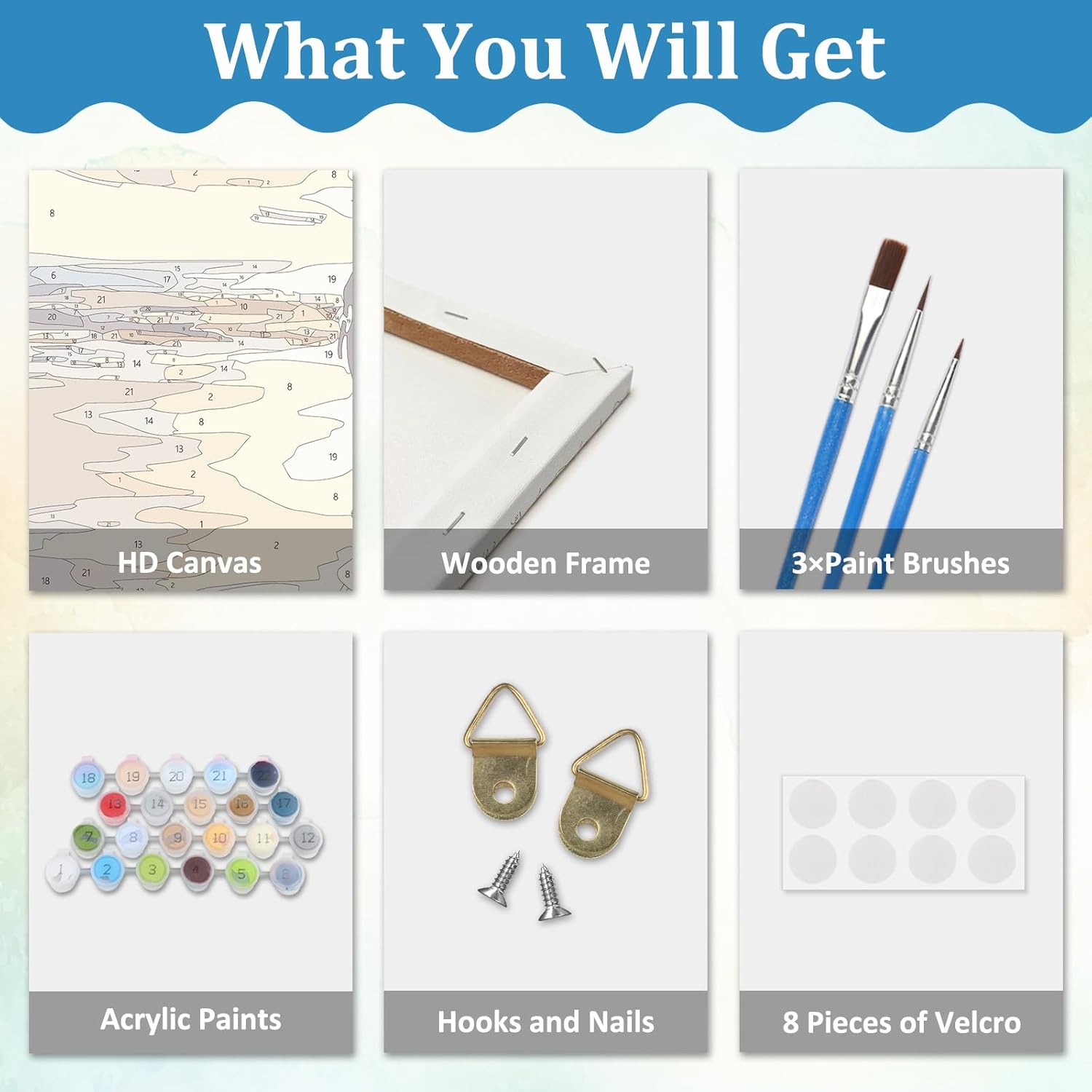 SET DI PITTURA CON I NUMERI: Il nostro set di pittura con i numeri contiene una tela con cornice, 3 pennelli, 1 set di colori acrilici pigmentati, 1 immagine di esempio, 8 chiusure in velcro e 2 ganci. SET DI PITTURA SU TELA CON CORNICE: A differenza di altri normali set di pittura su tela con numeri, la tela del nostro set di pittura su tela con cornice può rimanere piatta e senza pieghe durante il trasporto. E la vernice del nostro set di pittura con i numeri si attacca più facilmente, la tela colorata può prevenire l'affaticamento degli occhi e rendere più facile la pittura. PITTURA FACILE: la pittura digitale fai-da-te è facile e divertente e le istruzioni facili da seguire possono aiutarti a completare bellissime opere d'arte in modo indipendente, il che è molto adatto ai principianti. MATERIALI ECOLOGICI: utilizziamo vernici acriliche sicure. Le vernici acriliche sono facili da colorare e non sbiadiscono. La tela ha un buon assorbimento d'acqua e traspirabilità ed è facile da riporre a lungo. DECORAZIONE E REGALO PERFETTI: il set di dipinti con i numeri è perfetto per decorare uffici, soggiorni, camere da letto, bagni, sale studio, sale da pranzo, corridoi, bar e altro ancora. Abbiamo ideato diverse tipologie di quadri per soddisfare ogni esigenza. Questo è un grande regalo per la famiglia e gli amici