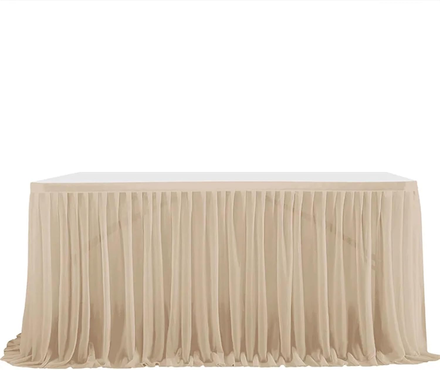 Le gonne da tavolo presentano un design elegante ed estetico, aggiungendo un tocco di stile a qualsiasi tavola. Le gonne da tavolo sono adatte sia per occasioni formali che informali, come matrimoni, feste o cene quotidiane. Le gonne del tavolo proteggono la superficie del tavolo da graffi, fuoriuscite e danni da calore. La tovaglia è lavabile in lavatrice, quindi è comoda da pulire dopo l'uso. Gonna da tavolo realizzata con materiali durevoli, che garantiscono un uso duraturo e resistenza all'usura.