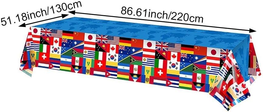 Che tu stia organizzando una festa di compleanno, un evento a tema o un raduno internazionale, le tovaglie sono perfette. Sulle tovaglie sono raffigurate varie bandiere internazionali, che mostrano la diversità e l'unità delle diverse nazioni. Ciò conferisce alla tua festa un'atmosfera vivace e festosa e migliora la decorazione generale. Le tovaglie sono realizzate in materiale plastico di alta qualità, che le rende durevoli e resistenti a schizzi, macchie e strappi. Possono resistere all'uso interno ed esterno senza rompersi o sbiadirsi facilmente. Grandi dimensioni per un uso versatile: ogni tovaglia misura 51,18 x 86,61 pollici, fornendo una copertura sufficiente per la maggior parte dei tavoli di dimensioni standard. Poiché queste tovaglie sono usa e getta, la pulizia è un gioco da ragazzi. Raccoglili e smaltiscili semplicemente dopo l'evento. Ciò ti consente di risparmiare tempo e fatica durante il lavaggio e la conservazione delle tovaglie tradizionali.