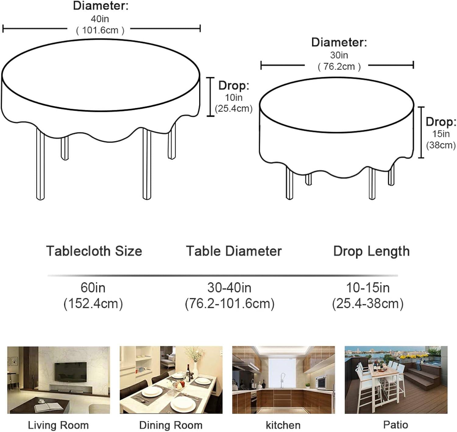 Materiale: realizzato in poliestere ecologico con tessuto spesso. Questi materiali hanno una forte resistenza al calore, una buona resistenza alle rughe e una lunga durata. Dimensioni: il diametro della tovaglia moderna è di 152 cm e il pizzo bianco misura 4 cm. Adatto per tavoli rotondi con un diametro da 30" a 40". MULTIUSO - Previeni le tue tovaglie da graffi, macchie, schizzi, usura e strappi imprevisti. Ideale per feste, buffet, catering, cene, celebrazioni, uso quotidiano in interni, brunch, picnic all'aperto e molto altro ancora. Offri alla tua famiglia e ai tuoi amici una vacanza meravigliosa e lussuosa insieme. Design raffinato: lo squisito processo di stampa è molto adatto per la decorazione moderna delle tovaglie. I bordi del pizzo sono fini e il filo non tende ad allentarsi, aggiungendo un tocco di eleganza alla tua tavola e alla decorazione della casa. Facile da pulire: queste tovaglie possono essere lavate a mano o in lavatrice. Appendere ad asciugare e non sbiadire.