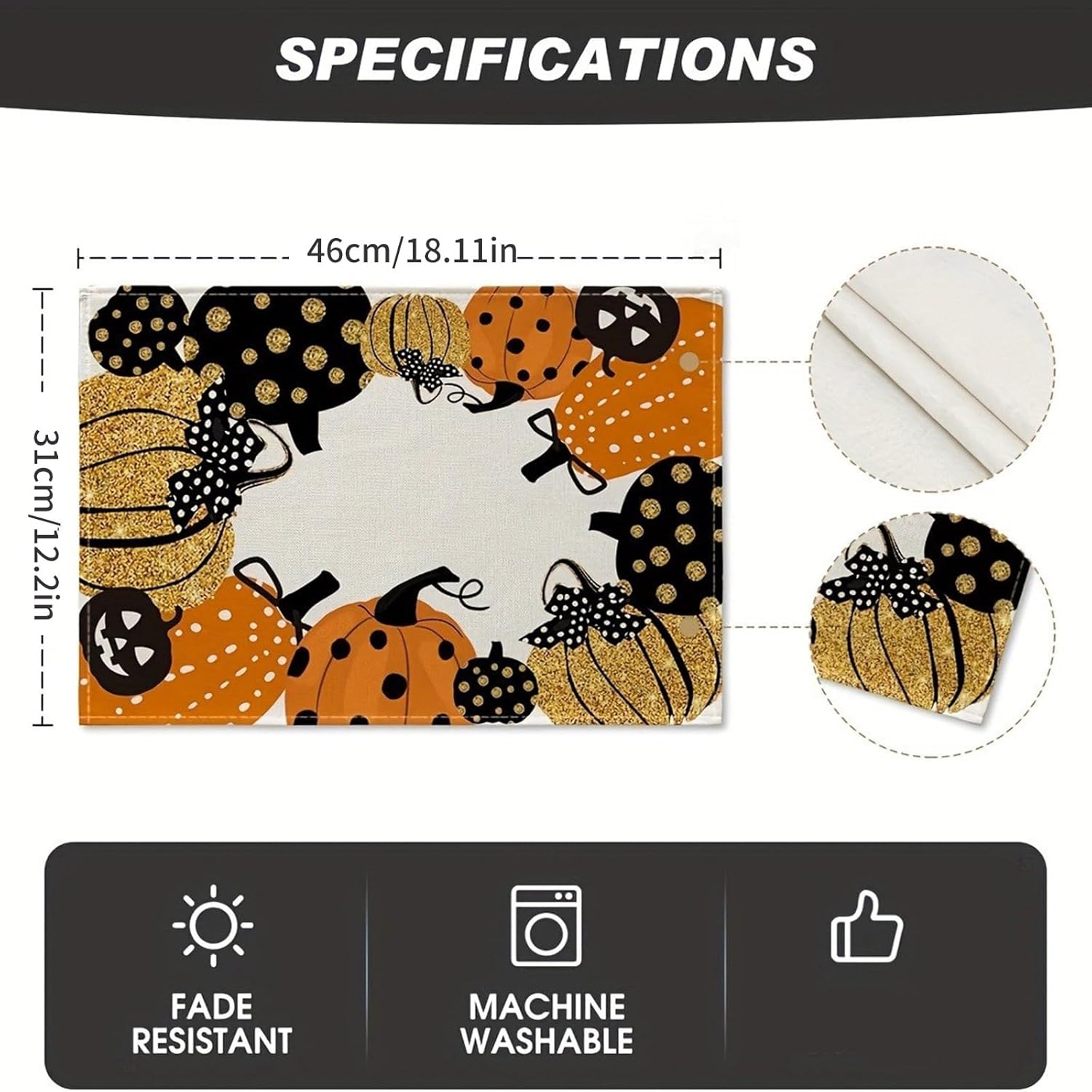 Trasforma il tuo tavolo da pranzo, tavolino o patio esterno in un'ambientazione di Halloween. Questa tovaglia è adatta per cene casalinghe, feste a tema e ogni occasione che richieda una scena coinvolgente. La forma rettangolare e le dimensioni di 45 x 30 cm lo rendono un accento adatto a vari mobili, mentre le istruzioni per la cura assicurano che abbia un aspetto originale dopo ogni evento. Realizzata in tessuto robusto, questa tovaglia non è solo comoda e morbida ma anche pratica per garantire che possa far parte della celebrazione del tuo festival. Adatto per decoratori di casa, organizzatori di feste e chiunque voglia aggiungere un fascino inquietante alla propria esperienza culinaria. Questa tovaglia è adatta ad un vasto pubblico che vuole festeggiare in grande stile la stagione di Halloween. Migliora le tue decorazioni di Halloween con la tovaglia di Halloween e presenta un design a forma di zucca con stampa ad alta precisione che aggiunge un tocco festoso a qualsiasi ambiente.