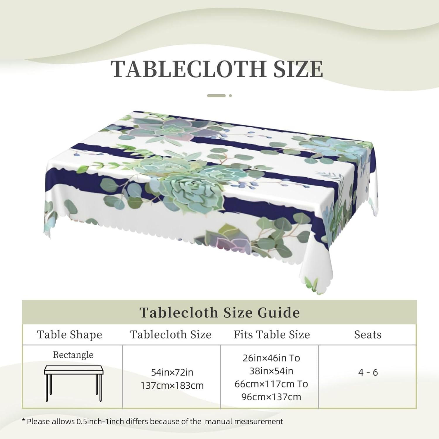 Questa tovaglia rettangolare con stampa succulenta a righe misura 137 x 183 cm (54" x 72"). Tovaglia con stampa succulenta a righe, realizzata in materiale poliestere, calda e morbida, buona resistenza alle pieghe, può essere lavata e riutilizzata, protegge dalla polvere e protegge da ammaccature, scheggiature e graffi. Tovaglia con stampa succulenta a righe, può essere utilizzata sia all'interno che all'esterno, ideale per feste, matrimoni, campeggio, patio, compleanno in famiglia, buffet, barbecue, tavoli da cucina, ecc. Tovaglia con stampa succulenta a righe quadrate, bordo in pizzo semirotondo, Attenzione: non candeggiare, non esporre alla luce solare, sono accettabili sia il lavaggio a mano che in lavatrice a temperatura ambiente e la stiratura a bassa temperatura. In caso di problemi o domande, non esitate a contattarci, vi risponderemo entro 24 ore