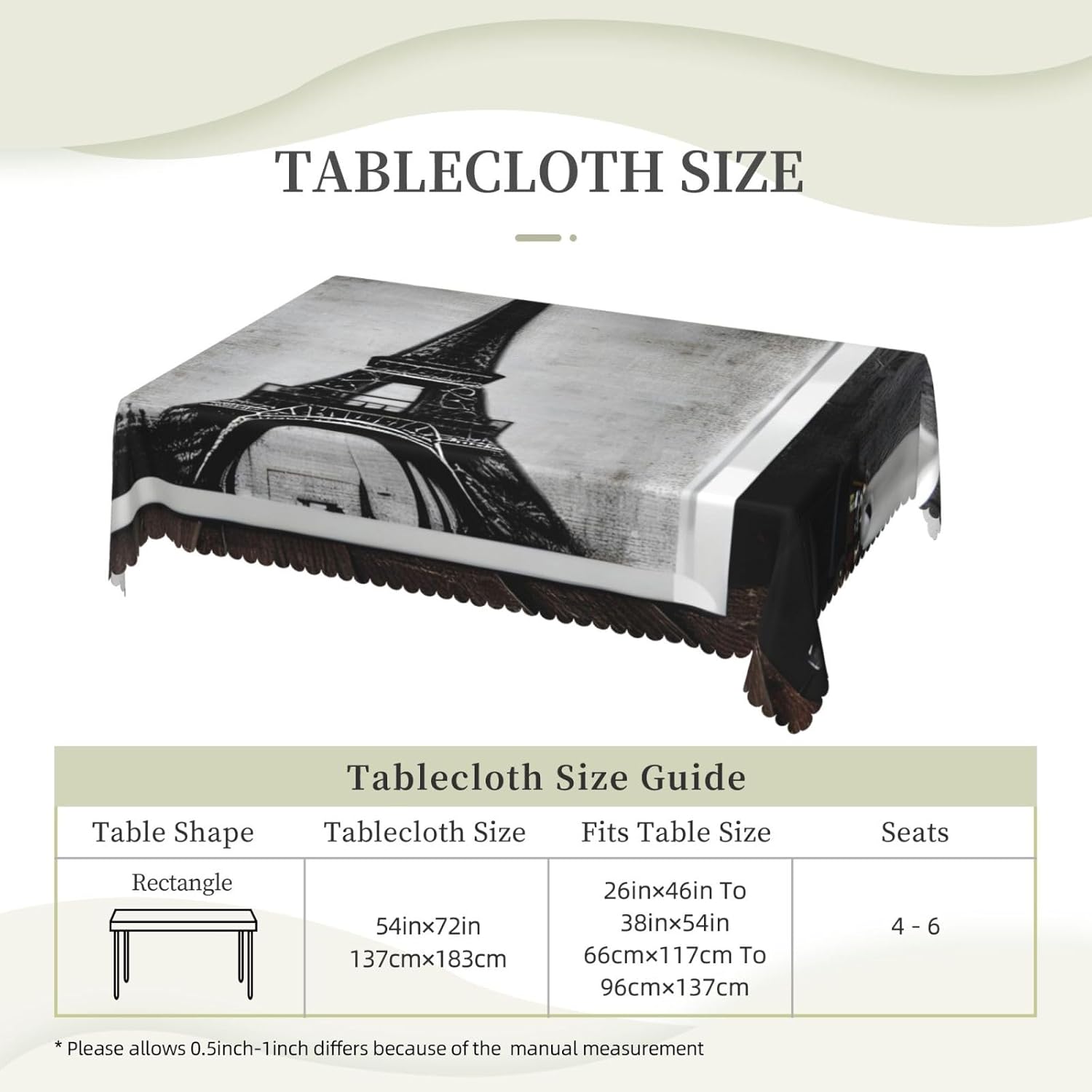 Questa tovaglia rettangolare con stampa della Torre Eiffel di Parigi è 54 "x 72" Tovaglia con stampa della Torre Eiffel del caffè di Parigi, realizzata in materiale poliestere, calda e morbida, buona resistenza alle pieghe, può essere lavata e riutilizzata, protegge dalla polvere e protegge da ammaccature, scheggiature e graffi. Tovaglia da caffè con stampa Torre Eiffel di Parigi, può essere utilizzata sia all'interno che all'esterno, ideale per feste, matrimoni, campeggio, patio, compleanno di famiglia, buffet, barbecue, tavoli da cucina, ecc. Tovaglia quadrata con stampa Torre Eiffel di Parigi, bordo in pizzo semicircolare, Attenzione: non candeggiare, non esporre alla luce solare, sono accettabili sia il lavaggio a mano che in lavatrice a temperatura ambiente e la stiratura a bassa temperatura. In caso di problemi o domande, contattaci, ti risponderemo entro 24 ore