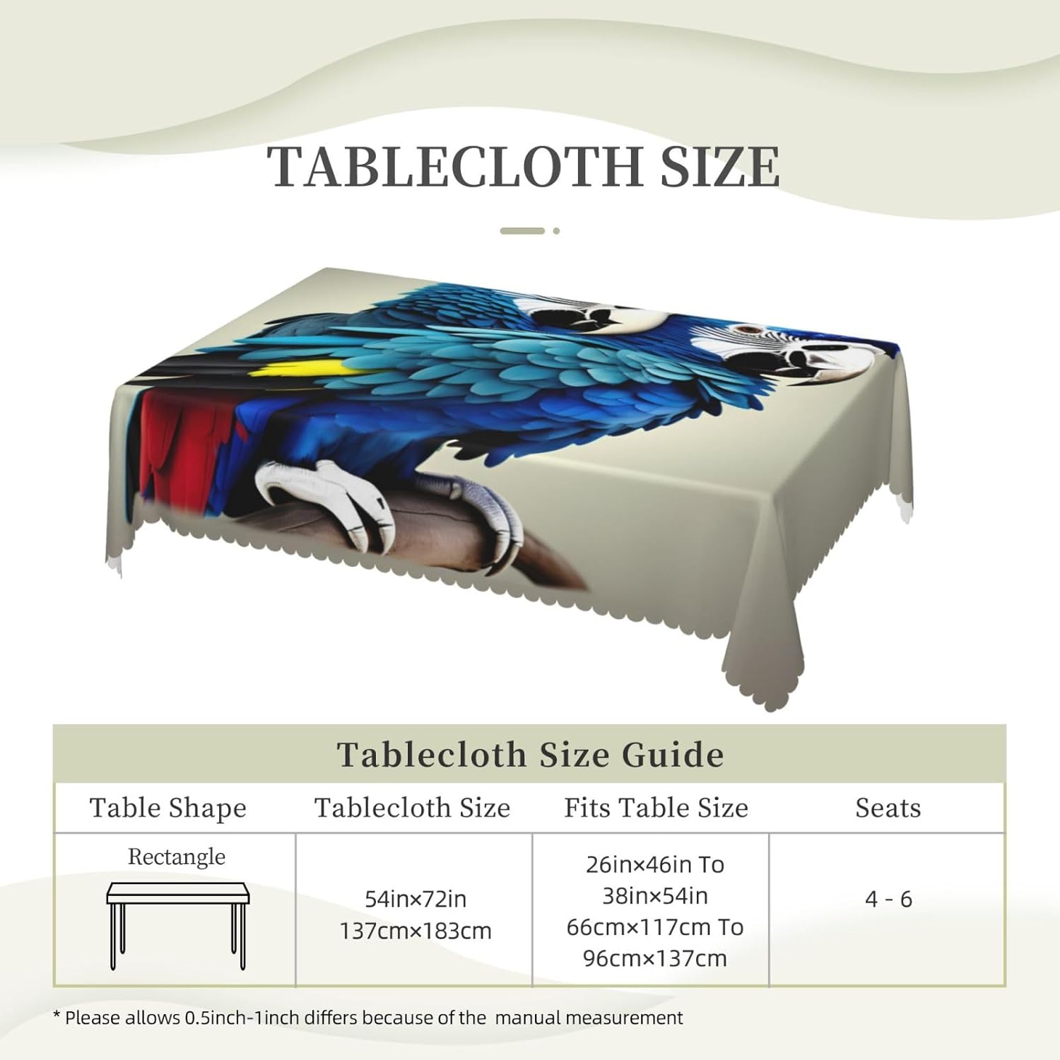 Questa tovaglia decorativa rettangolare con pappagallo è una tovaglia blu con motivo pappagallo da 54 "x 72" realizzata in materiale poliestere, calda e morbida, buona resistenza alle pieghe, può essere lavata e riutilizzata, protegge dalla polvere e protegge da ammaccature, scheggiature e graffi. Tovaglia con motivo pappagalli, utilizzabile sia all'interno che all'esterno, ideale per feste, matrimoni, campeggio, patio, compleanno in famiglia, buffet, barbecue, tavoli da cucina, ecc. Tovaglia quadrata con stampa pappagalli blu, bordo con pizzo semicircolare, Attenzione: non candeggiare, non esporre alla luce del sole, è accettabile sia il lavaggio a mano che in lavatrice a temperatura ambiente e stirare a bassa temperatura. Se avete problemi o domande non esitate a contattarci, vi aiuteremo entro 24 ore dalla risposta.