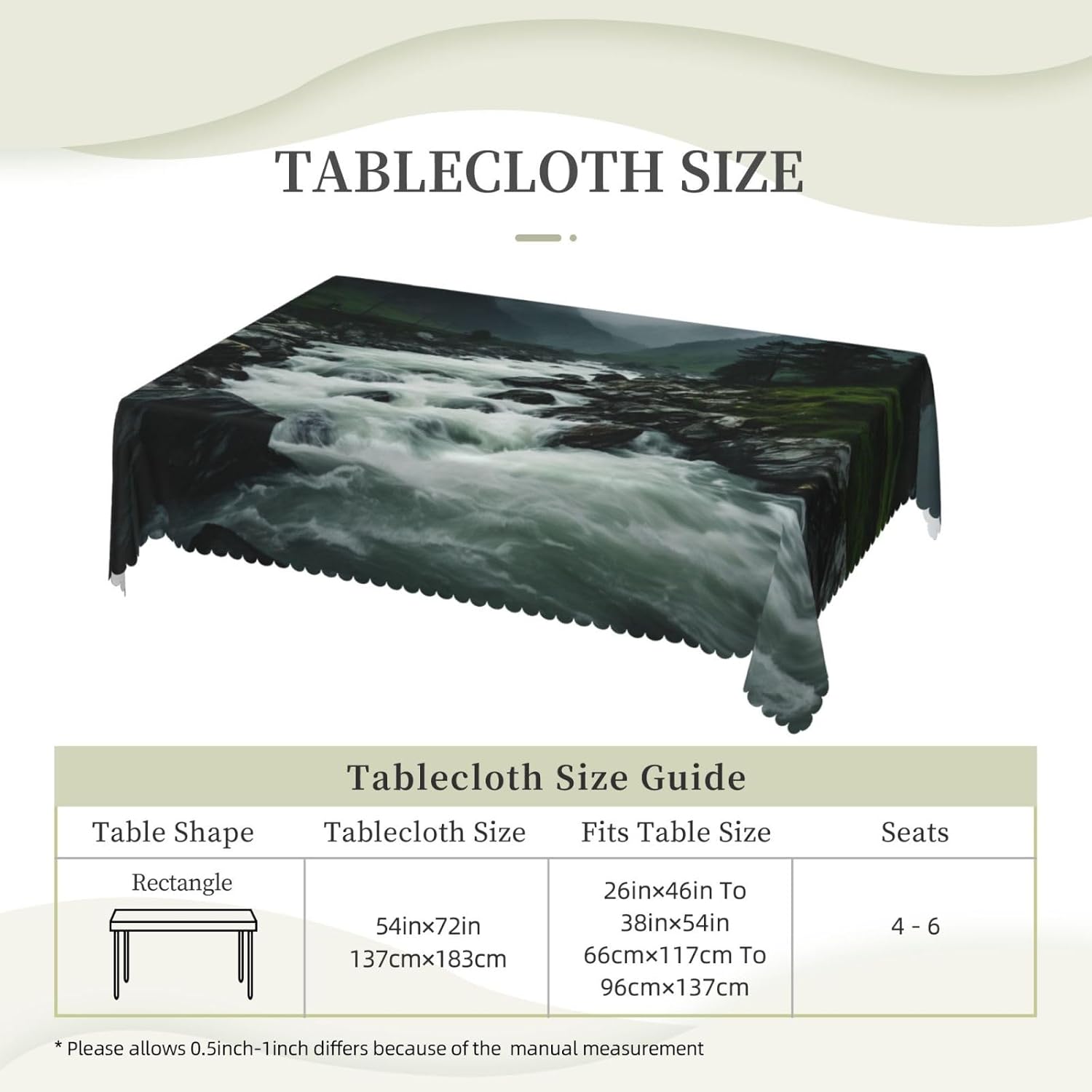 Questa tovaglia rettangolare con stampa Natural Wonder è 54 "x 72" tovaglia con stampa Natural Wonder, realizzata in materiale poliestere, calda e morbida, buona resistenza alle pieghe, può essere lavata e riutilizzata, protegge dalla polvere e protegge da ammaccature, scheggiature e graffi. Tovaglia con stampa Natural Wonder, può essere utilizzata sia all'interno che all'esterno, ideale per feste, matrimoni, campeggio, patio, compleanno in famiglia, buffet, barbecue, tavolo da cucina, ecc. Tovaglia quadrata con stampa Natural Wonder, bordo in pizzo semirotondo, Attenzione: non candeggiare, non esporre alla luce solare, è accettabile sia il lavaggio a mano che in lavatrice a temperatura ambiente e la stiratura a bassa temperatura. Se hai problemi o domande, ti preghiamo di contattarci, ti risponderemo entro 24 ore