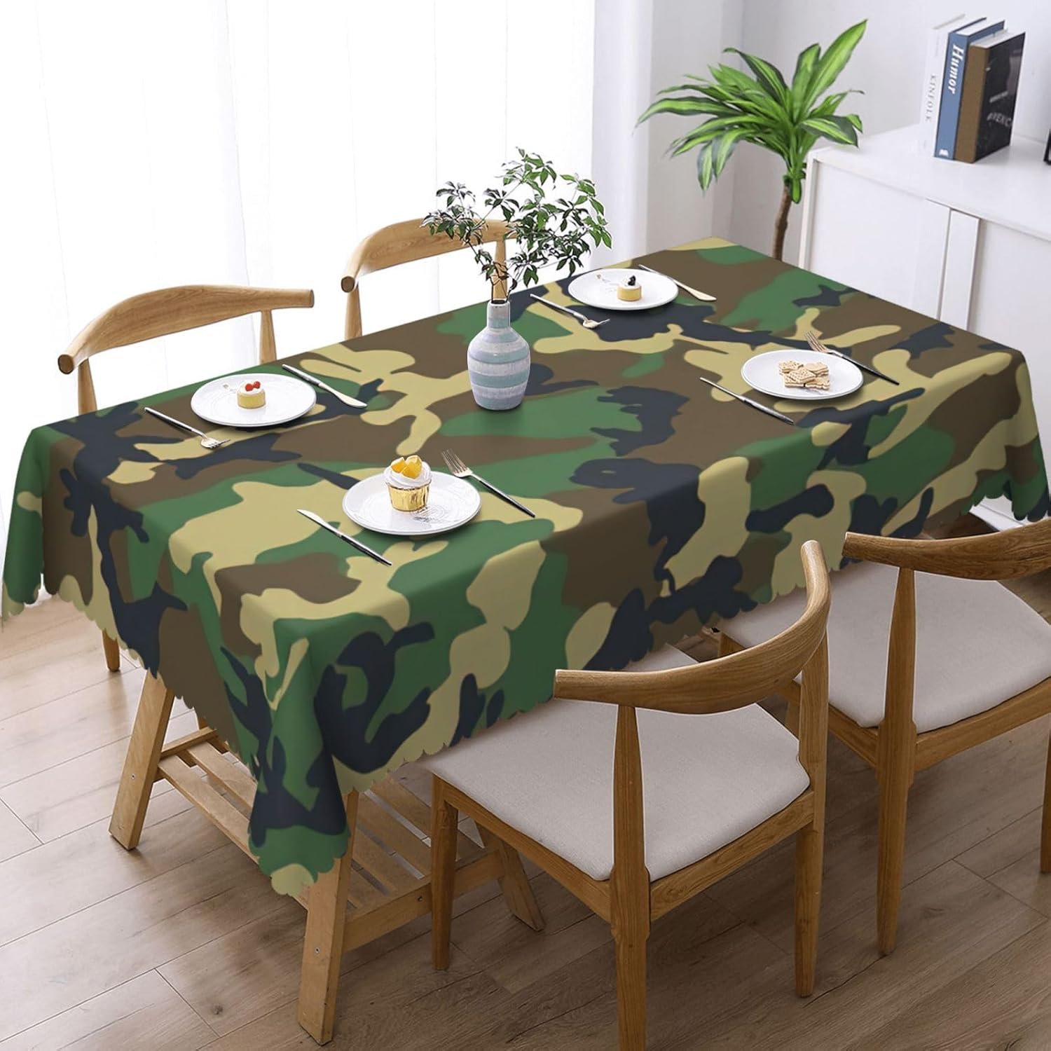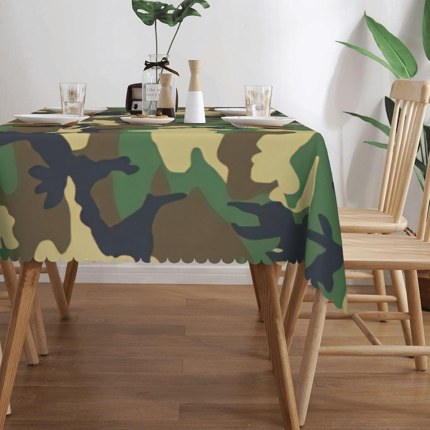 Questa tovaglia decorativa rettangolare mimetica militare misura 54 "x 72" Tovaglia verde con motivo mimetico realizzata in materiale poliestere, calda e morbida, buona resistenza alle pieghe, può essere lavata e riutilizzata, protegge dalla polvere e protegge da ammaccature, scheggiature e graffi. Tovaglia verde con motivo mimetico, utilizzabile sia all'interno che all'esterno, ideale per feste, matrimoni, campeggio, patio, compleanno in famiglia, buffet, barbecue, tavoli da cucina, ecc. Tovaglia militare quadrata verde con stampa mimetica, bordo semicircolare in pizzo, Attenzione: non candeggiare, non esporre alla luce del sole, è accettabile sia il lavaggio a mano che in lavatrice a temperatura ambiente e la stiratura a bassa temperatura. Se avete problemi o domande non esitate a contattarci, vi risponderemo entro 24 ore