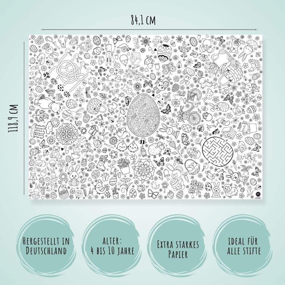 DIVERTIMENTO DA COLORARE GARANTITO: La nostra speciale tovaglia da colorare in carta offre tante bellissime immagini da colorare, piccoli puzzle e giochi da colorare. Ci sono tanti divertenti giochi da colorare, regali e palloncini da scoprire sulla coperta da colorare extra large "Happy Birthday". OTTIMA ATTIVITÀ PER BAMBINI: la nostra tovaglia per bambini è perfetta per le feste di compleanno dei bambini all'asilo, a scuola o a casa. Per un massimo di 6 bambini contemporaneamente. COLORARE XXL CON EFFETTO DI APPRENDIMENTO: colorare non solo promuove la creatività, la coordinazione delle mani e degli occhi, ma anche la concentrazione dei tuoi bambini. QUALITÀ SUPERIORE: Made in Germany I Carta da 100 g/mq
