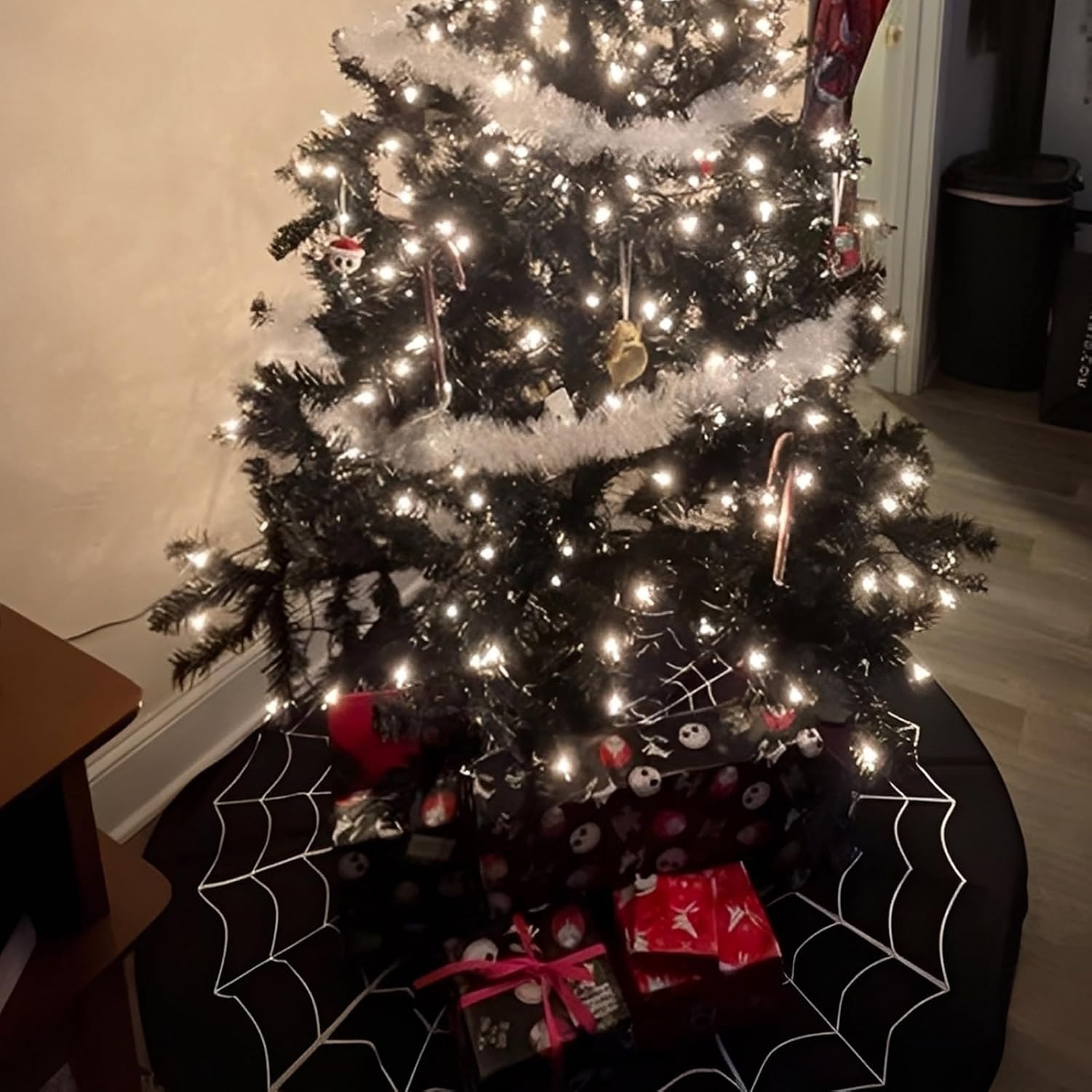 Materiale durevole: la tecnologia avanzata garantisce bellezza a questa gonna per albero resistendo ai danni e mantenendo la sua forma nonostante la manipolazione regolare. Si adatta perfettamente agli spazi festivi come il soggiorno alle feste, funzionalità ed estetica con una durata eccezionale. Elegante arredamento misterioso: questa gonna per albero realizzata con una trama dettagliata di ragnatela aggiungerà un tocco misterioso alla tua decorazione di Halloween, aumenterà l'atmosfera festosa e diventerà il centro di qualsiasi festa stilizzata e spettrale. Installazione semplice: grazie al design senza attrezzi e al rapido arrotolamento, questa gonna gotica per albero di Natale può essere installata in pochi secondi, eliminando complessi processi di assemblaggio per concentrarsi sulle tradizioni familiari e creare ricordi indimenticabili durante le vacanze. Regalo decorativo festivo: progettata per ravvivare le celebrazioni di Halloween, la gonna per albero horror fornisce un elemento decorativo che funge anche da regalo preferito, incoraggiando la condivisione tra famiglie e amici durante i vivaci eventi delle festività natalizie. MULTIUSO - La gonna nera per albero si armonizza con case e giardini infestati, è compatibile con mostre a tema e migliora l'estetica di vari ambienti festivi grazie al suo design universale