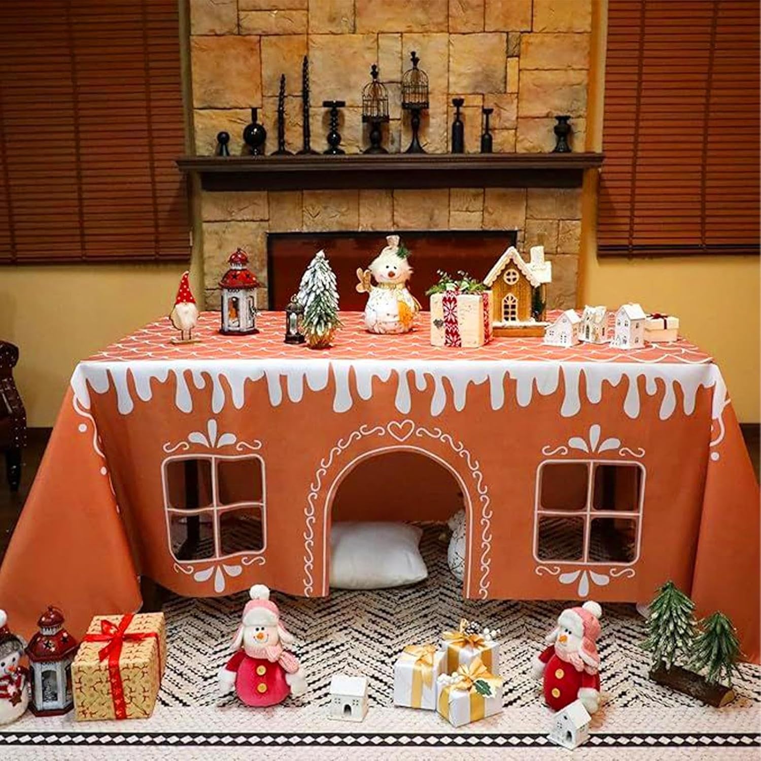 Atmosfera Migliorata: Questa tovaglia natalizia presenta un delizioso motivo di case di pan di 3D con colori festivi tradizionali, portando gioia ai pasti in famiglia e alle celebrazioni stabilendo un'atmosfera vivace e accogliente perfetta per lo spirito natalizio, e migliorando l'esperienza di ogni evento con un design vibrante e allegro. Scena Multiuso : Realizzata con una forma rettangolare, questa tovaglia natalizia si adatta facilmente a tavoli da pranzo e tavolini da caffè, migliorando l'estetica di pasti formali o festività rilassate mentre si trasforma in una ambientazione deliziosa per le attività dei bambini in ambienti festivi allegri, perfetta per aggiungere un tocco di gioia e vivacità alle vostre occasioni speciali con questo prodotto versatile. Durabilità Elevata e Pratica: Costruita con materiali solidi e durevoli, questa tovaglia natalizia è ideale per un uso festivo prolungato, resistendo all'acqua e alle macchie mentre conserva il suo aspetto originale, arricchendo la tua tavola con una manutenzione minima richiesta e un look elegante che dura nel , perfetta per occasioni speciali e facile da pulire. Hub Esplorazione Coinvolgente: Questo tovagliolo natalizio rettangolare integra porte ritagliate interattive e aperture che invitano i bambini a giocare e scoprire in ambienti domestici. Promuove le connessioni familiari attraverso l'esplorazione condivisa e aggiunge godimento pet-friendly alle celebrazioni delle feste, come Natale e riunioni. Il design incoraggia il movimento e la curiosità, offrendo un'attività pre-cena dinamica che unisce genitori, figli e animali in momenti di gioia e divert Regolazione Flessibile della Misura: La tovaglia si senza sforzo per qualsiasi riunione con il suo design pieghevole, adattandosi a diverse dimensioni del tavolo e garantendo una vestibilità perfetta per coprire pasti intimi da 4 persone o feste grandi da 10 persone durante occasioni festive, migliorando funzionalità e estetica per celebrazioni varie. Questo prodotto è ottimo per tavoli di misure multiple, offrendo un aspetto coordinato e accogliente che si integra con le decorazio