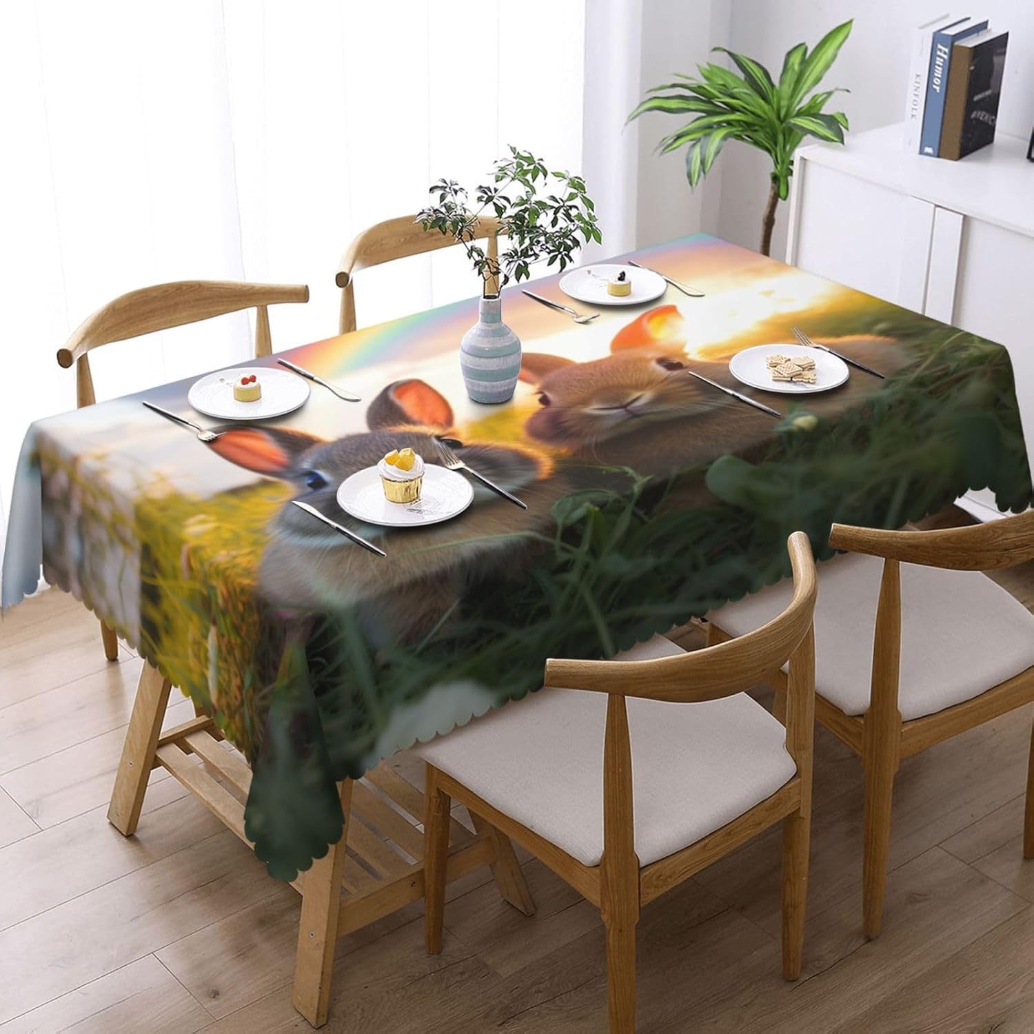 Questa tovaglia rettangolare Rainbow Rabbit è 54 "x 72" Tovaglia Rainbow Rabbit, realizzata in materiale poliestere, calda e morbida, buona resistenza alle pieghe, può essere lavata e riutilizzata, protegge dalla polvere e protegge da ammaccature, scheggiature e graffi. Tovaglia con stampa coniglio arcobaleno, può essere utilizzata sia all'interno che all'esterno, ideale per feste, matrimoni, campeggio, patio, compleanno in famiglia, buffet, barbecue, tavolo da cucina, ecc. Tovaglia quadrata con stampa coniglio arcobaleno, bordo con pizzo semicircolare, Attenzione: non candeggiare, non esporre alla luce solare, sono accettabili sia il lavaggio a mano che in lavatrice a temperatura ambiente e la stiratura a bassa temperatura. Se avete problemi o domande, contattateci, vi risponderemo entro 24 ore