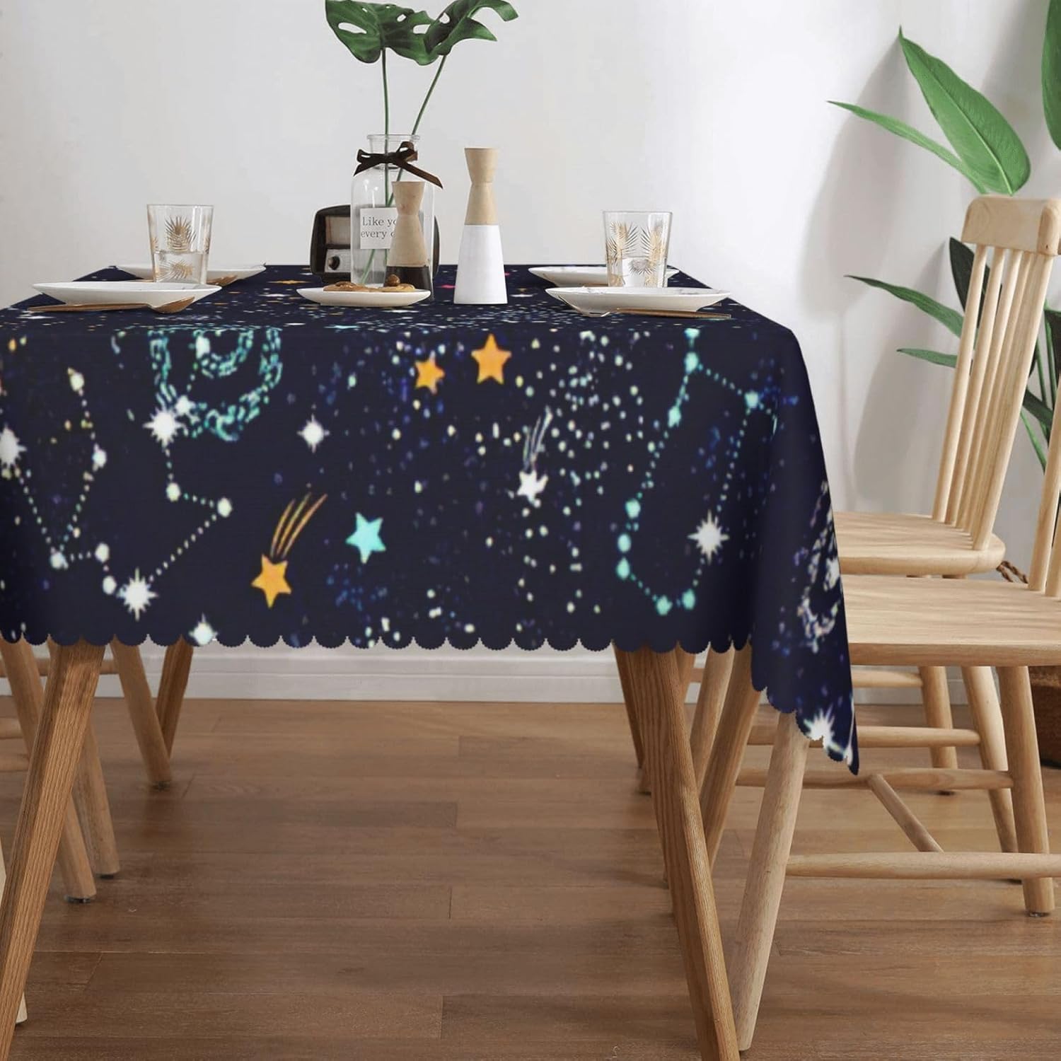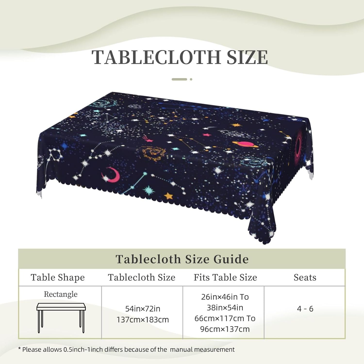 Questa tovaglia rettangolare con mappa delle costellazioni è una tovaglia con stampa di costellazioni di 137x183 cm realizzata in materiale poliestere, calda e morbida, buona resistenza alle pieghe, può essere lavata e riutilizzata, protegge dalla polvere e protegge da ammaccature, scheggiature e graffi. Tovaglia Constellation, utilizzabile sia all'interno che all'esterno, ideale per feste, matrimoni, campeggio, patio, compleanno in famiglia, buffet, barbecue, tavoli da cucina, ecc. Tovaglia Constellation quadrata, bordo con pizzo semicircolare, Attenzione: non candeggiare, non esporre alla luce del sole, è accettabile sia il lavaggio a mano che in lavatrice a temperatura ambiente e stirare a bassa temperatura. Se hai problemi o domande, contattaci, ti risponderemo entro 24 ore