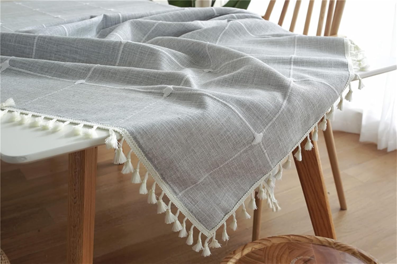 Tovaglia rettangolare da tavolo, grigio, 140 x 180 cm, con nappa, in poliestere, per matrimonio, antimacchia, per cucina, tavolo da pranzo, tavolino da caffè, feste