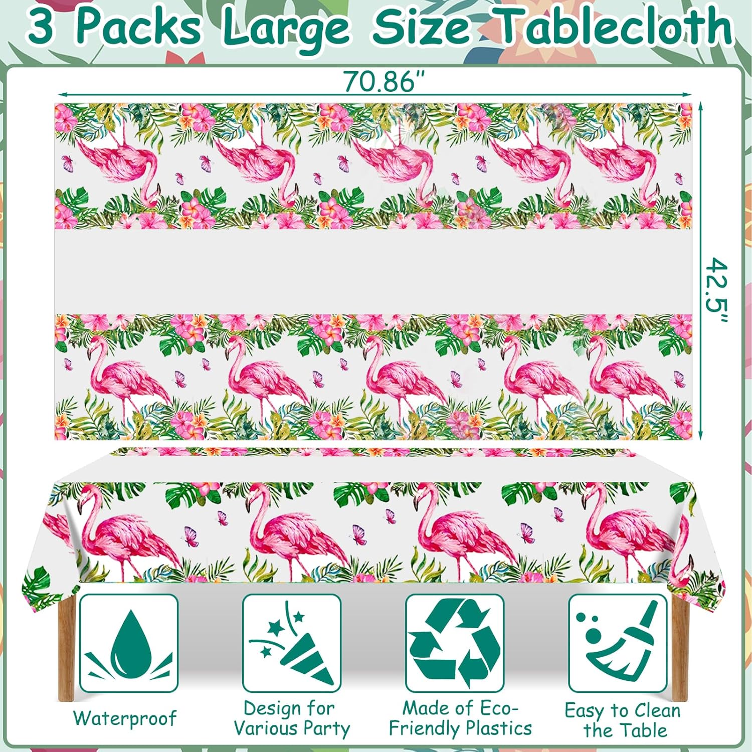 Tovaglie hawaiane: riceverai 3 pezzi di tovaglie tropicali, ogni confezione misura 108 x 180 cm, adatte per la maggior parte dei tavoli rettangolari e rotondi, inclusi tavoli da buffet, tavoli da picnic e tavoli da pranzo. Le nostre tovaglie per feste hawaiane presentano fenicotteri, foglie di palma tropicali e fiori colorati per rinfrescare lo spazio della tua festa. Perfetto per feste luau, feste in spiaggia, barbecue estivi o eventi tropicali. Questa tovaglia ambienta scene indimenticabili. DESIGN UNICO: la tovaglia per feste Luau è basata sul bianco e aggiunge elementi classici hawaiani come foglie della giungla tropicale, fenicotteri, fiori colorati e foglie di monstera, farfalle. Queste vivaci tovaglie tropicali sono piene di atmosfera hawaiana e si abbinano bene alle decorazioni della tua festa hawaiana Aloha. Aggiungono colori vivaci alla decorazione della tua prossima festa o evento, stupiscono i tuoi ospiti e amici. MULTIUSO - Queste tovaglie per feste estive sono adatte per molte occasioni ed eventi, come feste hawaiane, feste a tema aloha, feste tropicali, feste luau, feste in spiaggia, feste in piscina, feste a tema sportivo, feste nella giungla, baby shower, feste di compleanno estive, ma possono anche essere usate come decorazioni per decorare il tuo tavolo da pranzo, dando ai tuoi ospiti una sensazione divertente e felice. Che si tratti di una riunione di famiglia o di un incontro con gli amici, questa tovaglia hawaiana è la scelta migliore per l'estate. Materiali di alta qualità: la nostra tovaglia tropicale è realizzata in PE ecologico e stampata con inchiostro alimentare per garantire la sicurezza durante l'utilizzo. Leggero, inodore, impermeabile, non facile da sbiadire o stropicciarsi, resistente agli strappi, durevole, pieghevole e riutilizzabile. Prevengono graffi e macchie sui tavoli delle feste e garantiscono che possano essere riutilizzati in più eventi, risparmiando denaro pur rimanendo eleganti. Facile da usare: il set di tovaglie rettangolari con fenicotteri hawaiani è super pratico, basta disimballare e posizionare. Pulibile e resistente agli spruzzi, rende la pulizia un gioco da ragazzi così puoi concentrarti maggiormente sulla celebrazione senza preoccuparti di schizzi e disordine. Che si tratti di una festa in piscina o di un barbecue in giardino, questa tovaglia è l'ideale.