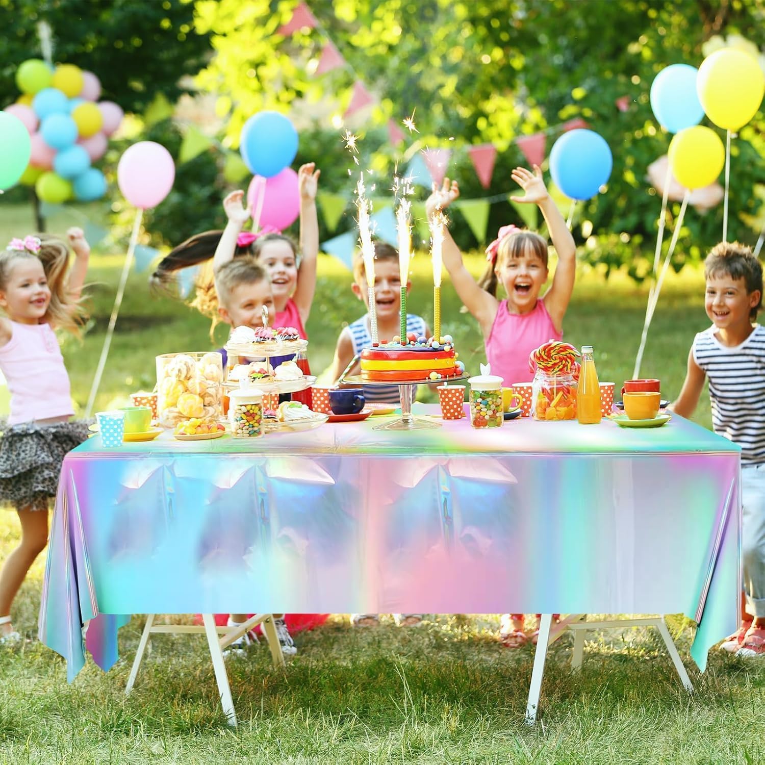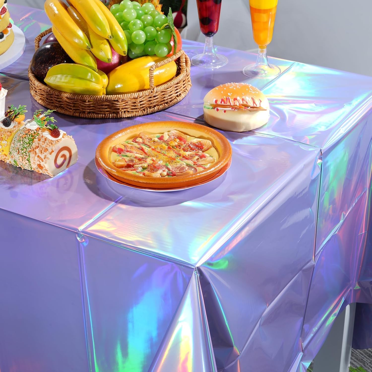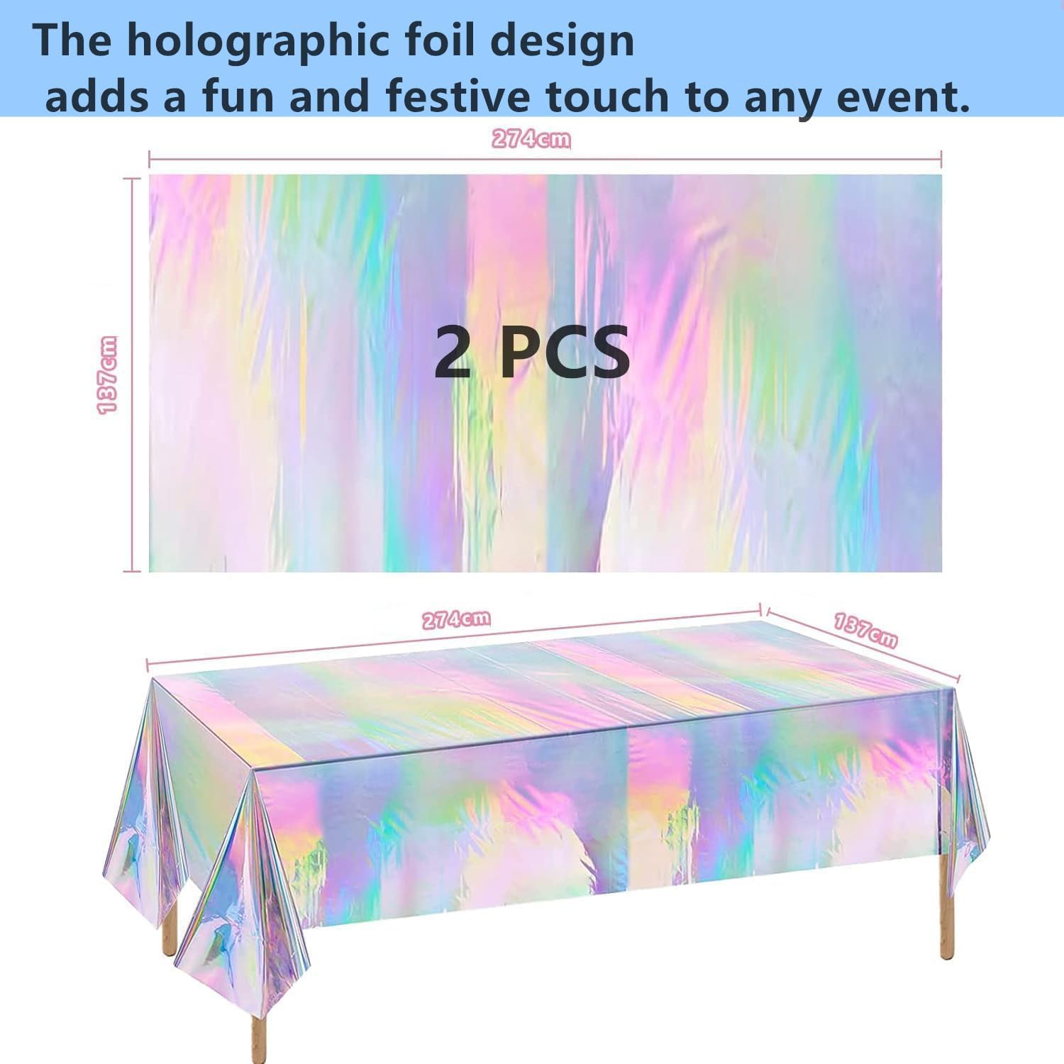 Materiale: la tovaglia in plastica laser è realizzata in polietilene, molto resistente e durevole, non sbiadisce facilmente, con una superficie liscia e facile da tagliare. Contenuto della confezione: riceverete 2 tovaglie in plastica iridescente lucida. Ogni tovaglia olografica misura circa 137 x 274 cm, si adatta a qualsiasi tavolo rettangolare fino a 2,4 metri di lunghezza, adatta per decorazioni per feste. Tovaglia laser scintillante: la tovaglia usa e getta da discoteca per feste presenta un design olografico lucido e mostra diversi effetti di colore sotto diverse luci, tutti molto belli e brillanti, che saranno il punto forte della vostra festa e renderanno l'atmosfera più gioiosa. Godetevi la festa e risparmiate tempo: la decorazione della tovaglia argentata iridescente è facile da pulire, basta strofinarla per pulirla, oppure potete buttarla via subito dopo la festa. La tovaglia usa e getta ti farà risparmiare tempo nella pulizia, potrai trascorrere più tempo con la famiglia o gli amici e meno tempo a pulire. Ampia applicazione: la tovaglia arcobaleno è adatta per compleanni, baby shower, discoteche, matrimoni, addii al nubilato, lauree, feste a tema scintillanti, ricevimenti e festival. Queste tovaglie faranno sicuramente colpo e lasceranno un'impressione duratura sui tuoi ospiti.