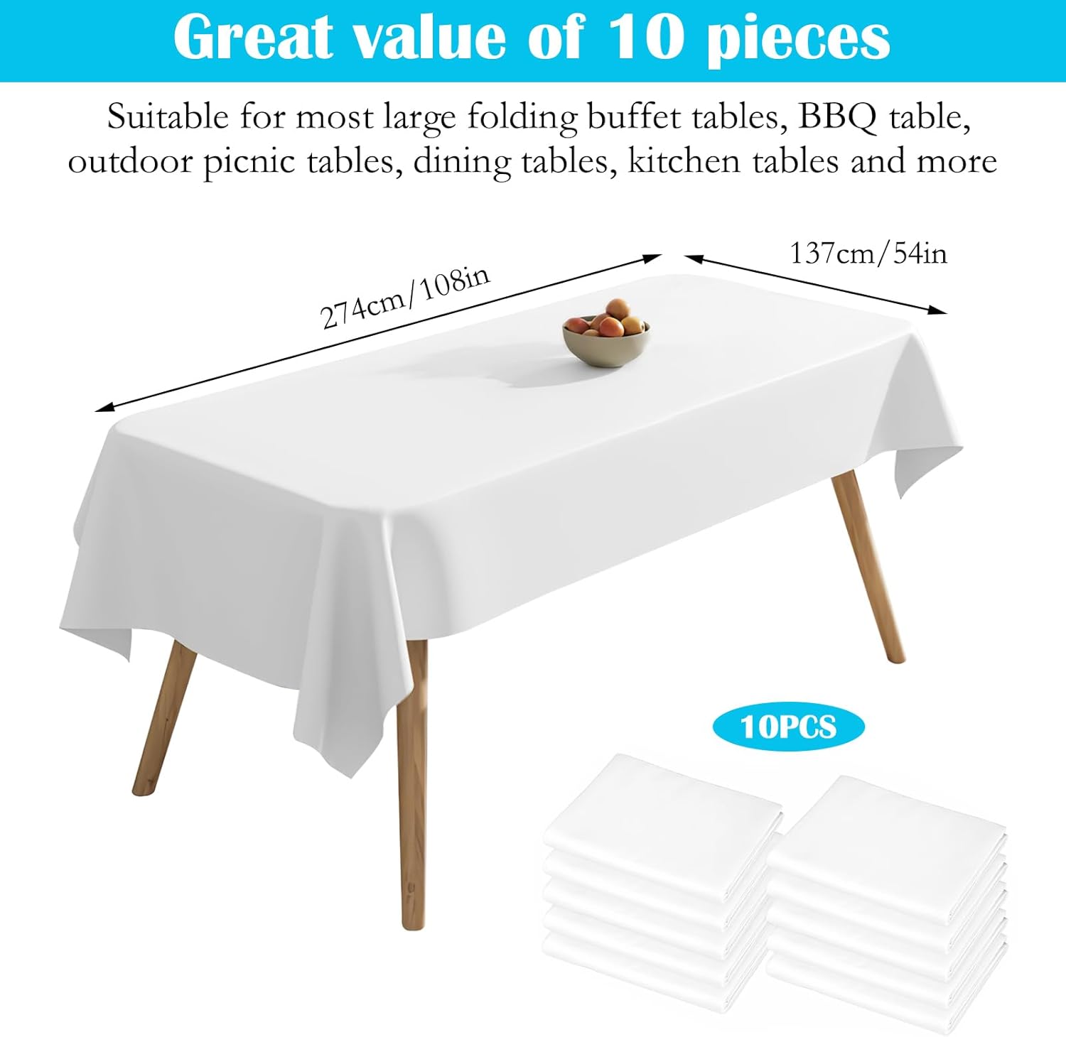 Tovaglie da festa: la nostra confezione da 10 tovaglie bianche usa e getta è realizzata in plastica resistente e resistente, a differenza delle tipiche tovaglie di carta. Ciò significa che la nostra tovaglia di plastica fornisce una protezione completa dalle fuoriuscite e non verrà danneggiata durante la festa. [La nostra tovaglia di plastica bianca misura 137 x 274 cm e può coprire qualsiasi tavolo di dimensioni normali]. 【Alta qualità】: confezione da 10 tovaglie rettangolari usa e getta per feste realizzate in materiale PEVA di alta qualità, leggero e sottile, impermeabile e resistente all'olio, facile da pulire. È sicuro, ecologico, biodegradabile e impermeabile. Usa qualsiasi tavolo che ti piace o crea facilmente un grande tavolo da buffet improvvisato. 【Riutilizzabile e usa e getta】 Puoi trascorrere più tempo a goderti la festa utilizzando la tovaglia usa e getta bianca per le feste. Se necessario, posizionate la tovaglia bianca usa e getta da festa sul piano del tavolo rettangolare. Dopo la festa, basta arrotolare la tovaglia e gettarla oppure pulirla e conservarla per il prossimo utilizzo. 【Ottimo rapporto qualità/prezzo】 La nostra confezione da 10 tovaglie bianche per feste si monta in pochi secondi, protegge da schizzi e può essere utilizzata più e più volte o semplicemente scartata, rendendole la perfetta tovaglia bianca per feste. Aggiungi un tocco di colore alla tua festa coprendo fino a 10 tavoli di dimensioni normali oppure prepara un grande tavolo da buffet per gli ospiti della festa. 【Goditi la festa e risparmia tempo】 Le nostre tovaglie bianche per feste in plastica sono adatte per varie occasioni, tra cui compleanni, feste, compleanni di bambini, anniversari, matrimoni, feste di Natale, lauree, balli, cene del Ringraziamento, catering, tovaglie natalizie bianche riutilizzabili e altre attività a tema.