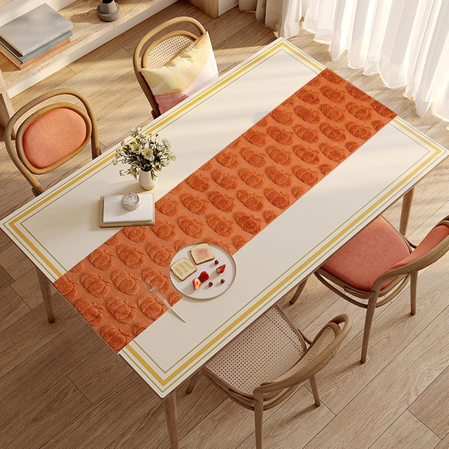 Tovagliolo Stagionale: Celebra la stagione con una calda palette di colori del raccolto, per cene di Halloween e decorazioni festive sulla tavola grazie al dettagliato trapunto 3D di zucche e alla sua versatilità d'uso Atmosfera Halloween: Trasforma i tuoi raduni con un runner da tavola ideale per eventi a tema autunnale, garantisce integrazione senza intoppi in scenografie diverse mentre potenzia l'atmosfera di Halloween con un fascino misterioso e raccolto Qualità drappeggiante: Arricchisci la decorazione del tavolo con un tessuto dalla texture levigata che si drappeggia con grazia, resistendo alle pieghe per un'atmosfera raffinata nelle occasioni festive Posizionamento Versatile Stagionale: Diffondi calore nella tua casa integrando questo tovagliolo da tavola in composizioni decorative autunnali, con opzioni di posizionamento flessibili su mobili di diverse dimensioni. Supporta display singoli o raggruppati per creare un'atmosfera stagionale coerente, ideale per lo spirito di Halloween Cura senza sforzo: Dotato di proprietà anti-macchia e anti-scolorimento, questo runner assicura una pulizia effortless e un riutilizzo a lungo termine durante le feste, mantenendo il suo aspetto con minime per durabilità