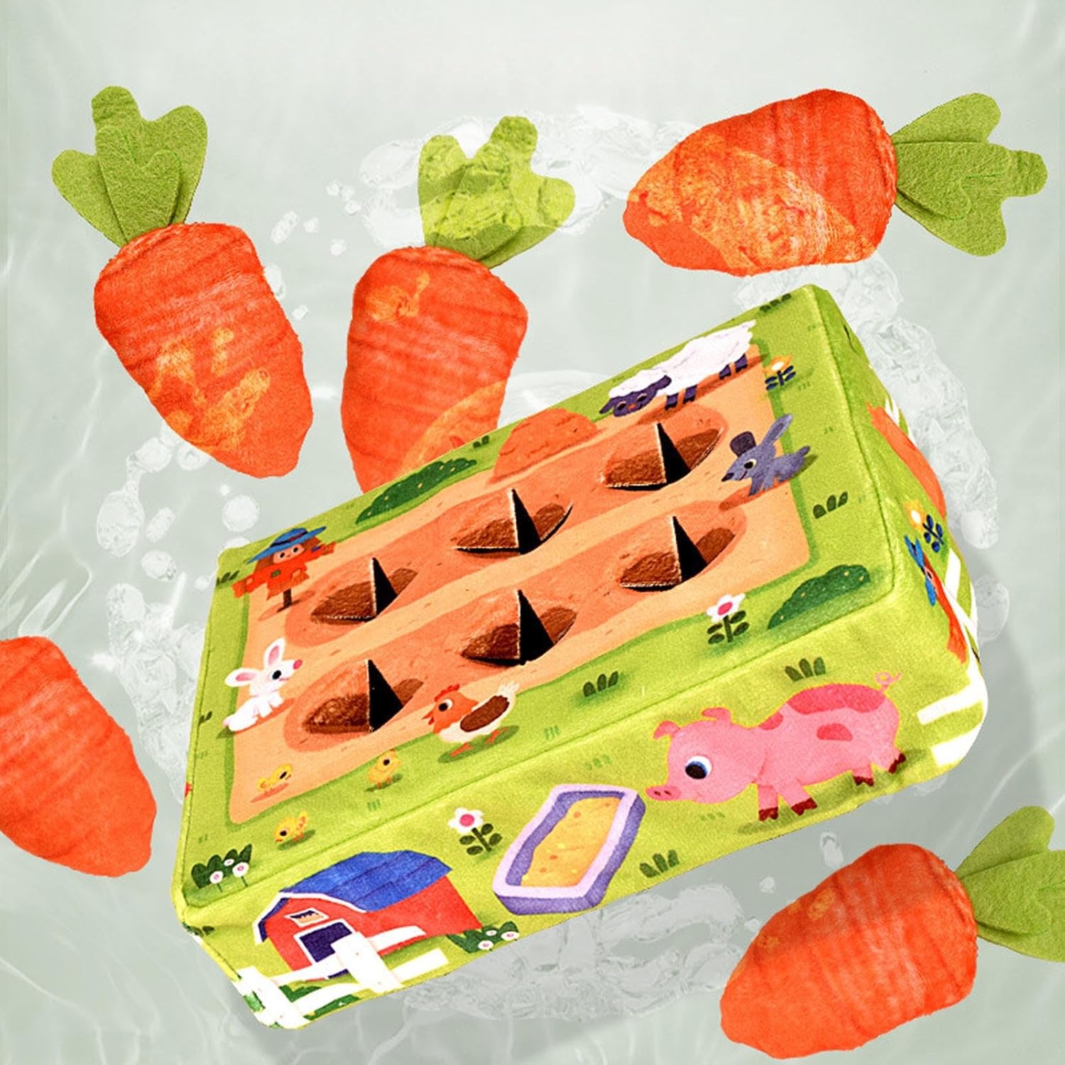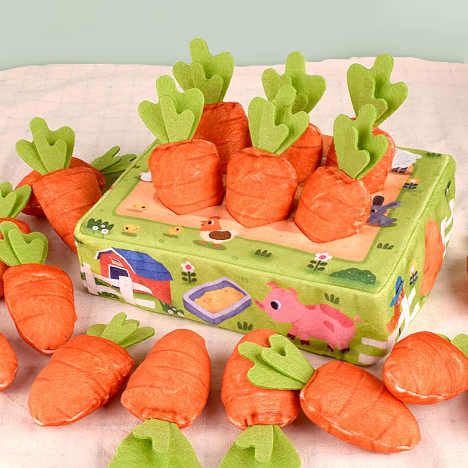 Semplice ma molto educativo. Molto adatto per coltivare le capacità motorie dei bambini, le abilità motorie e la destrezza e iniziare a cogliere il concetto di dimensione kit giocattolo educativo Estrarre tutte le carote e rimetterle nella posizione corretta Peluche morbido e di alta qualità Pratica la coordinazione occhio-mano dei bambini