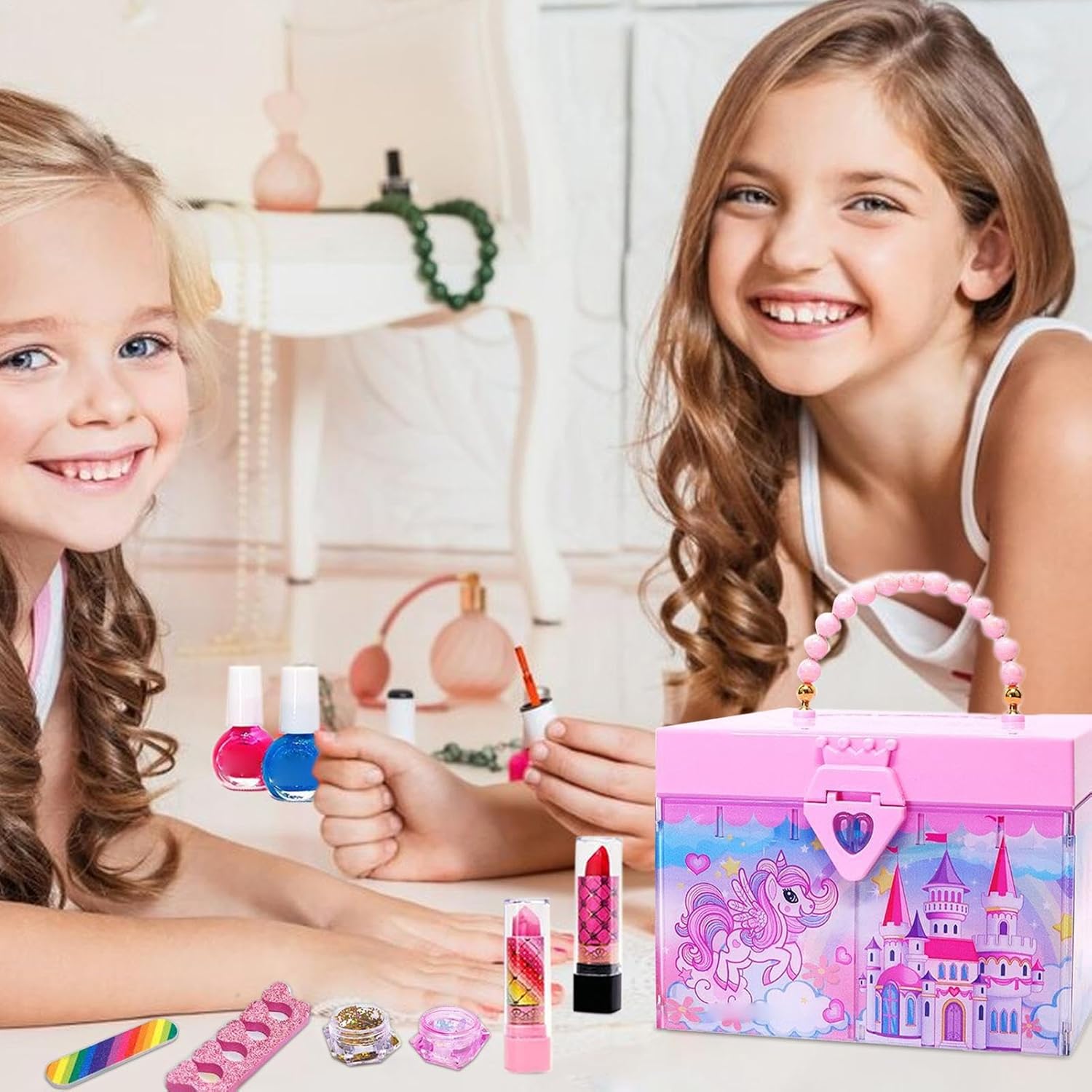 Set di giochi di simulazione per: include un tavolo e un set di strumenti per il trucco, un set di accessori e un gioco di simulazione per il quale può creare ore di gioco divertente Sicuro per il bambino: progettato per i , questo kit di trucco pretende è composto da materiali innocui e solubili in acqua che non irriteranno una pelle delicata. È perfetto per il gioco fantasioso e si lava facilmente con acqua e sapone per la tranquillità di Indossato comodamente: Lascia che la tua bambina organizzi facilmente i suoi accessori per il trucco con una moltitudine di scomparti in questo kit per il trucco di affermano per il bambino. È progettato con una maniglia ed è compatto, pulito e portatile, che facilita le vacanze o in auto Istruzione e intellettuale: ogni sfumatura di trucco e smalto per unghie in questo kit apre più possibilità. Creatività, questo set permette a sperimentare diversi look ed esprimersi attraverso il trucco, raddoppiando l'arte divertente e l'attività artigianale Presente per gli amici: stupisci i tuoi cari con questo regalo creativo, con un design unico e affascinante per esprimere il tuo amore e la tua cura