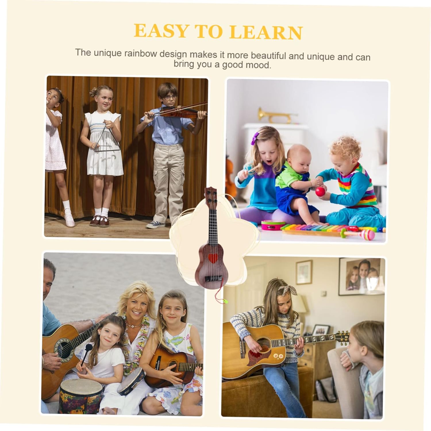 Giocattolo per strumenti musicali: i colori vivaci aiutano lo sviluppo del cervello del , l'ukulele per Simulazione ukulele: un giocattolo educativo musicale utile e interessante per i per sviluppare la loro cognizione musicale, un giocattolo educativo Giocattolo con ukulele: i genitori divertiranno a insegnare ai propri figli il ritmo, la composizione, la strimpellatura e altre tecniche musicali, giocattoli musicali Mini strumento: adotta materiale leggero e simula un giocattolo per ukulele Giocattolo per strumenti: liscio senza sbavature, non devi preoccuparti che possa ferire tuo figlio, giocattolo per l'educazione musicale