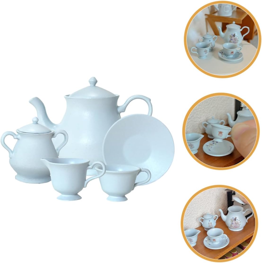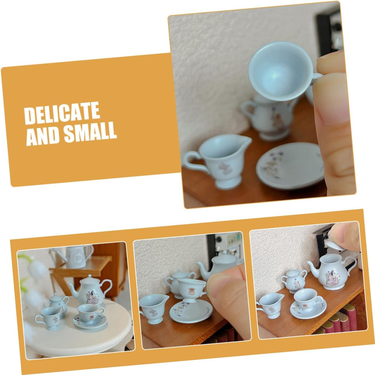 Design in miniatura: questo set da tè presenta un design in miniatura, per gli appassionati di case delle bambole e collezionisti di piccoli accessori per la casa, mini accessori per la casa mini, tazza di caffè in miniatura Materiali in lega: realizzati con materiali, questo set di teiere e tazze in miniatura garantisce un uso duraturo e un aspetto realistico, fingi giocattoli, mini tazza da tè domestica Per il gioco: questo set è per i tea party, incoraggia il gioco fantasioso e l'interazione sociale tra i bambini, piccoli animali, mini teiera Sicuro per: realizzato con materiali in lega, questo set da tè è sicuro per far giocare i bambini, garantendo tranquillità ai genitori, mini figure sfuse, teiera in miniatura Valore educativo: questo set da tè aiuta i bambini a sviluppare capacità motorie e a conoscere l'etichetta sociale attraverso giochi di finzione, tazze in miniatura, mini tazze da tè